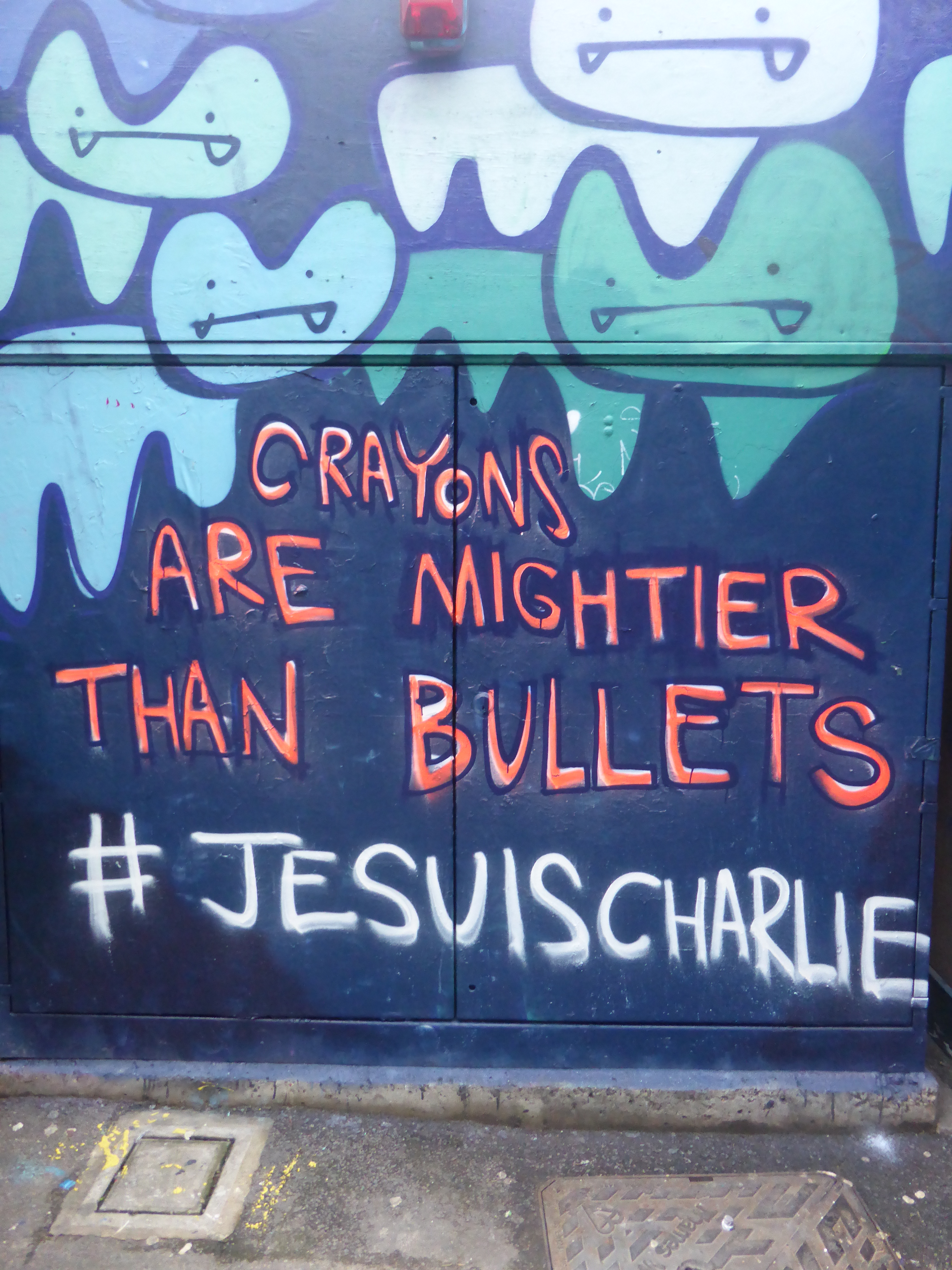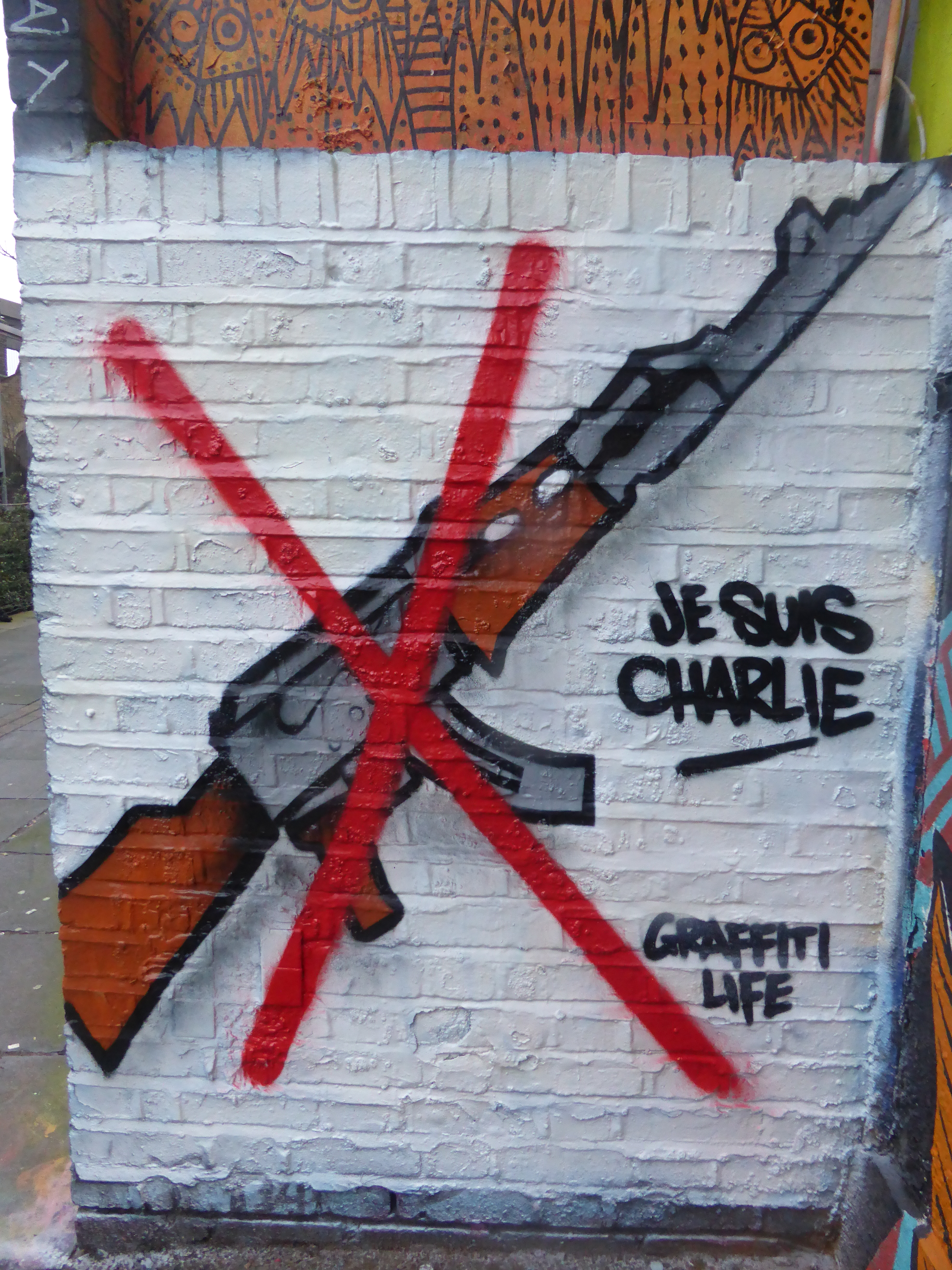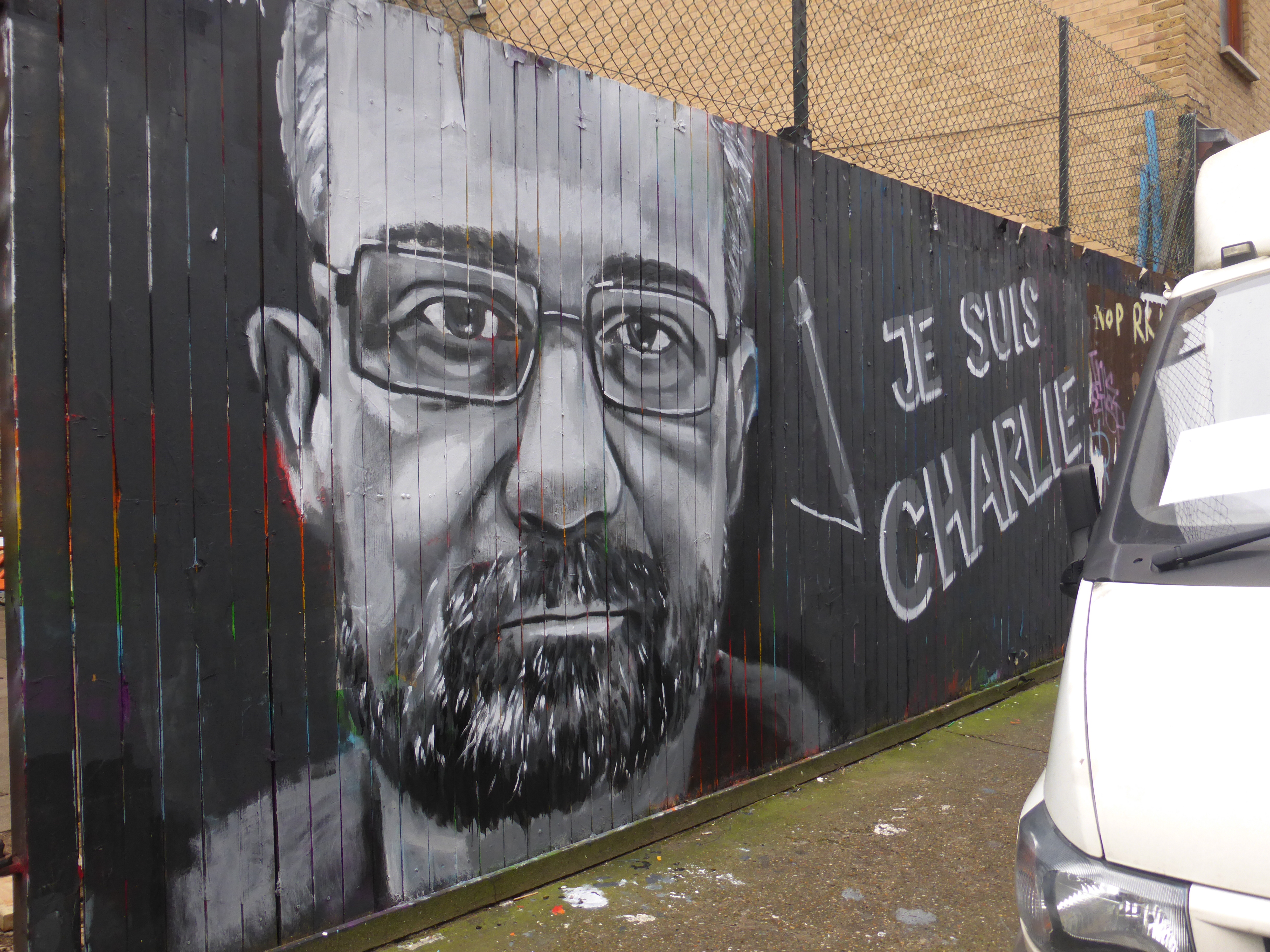 In the East End of London a number of artistic tributes have appeared over the last week. Here are London’s street art tribute to the victims of the Charlie Hebdo attacks. Showing artistic expression and freedom of speech will live on.