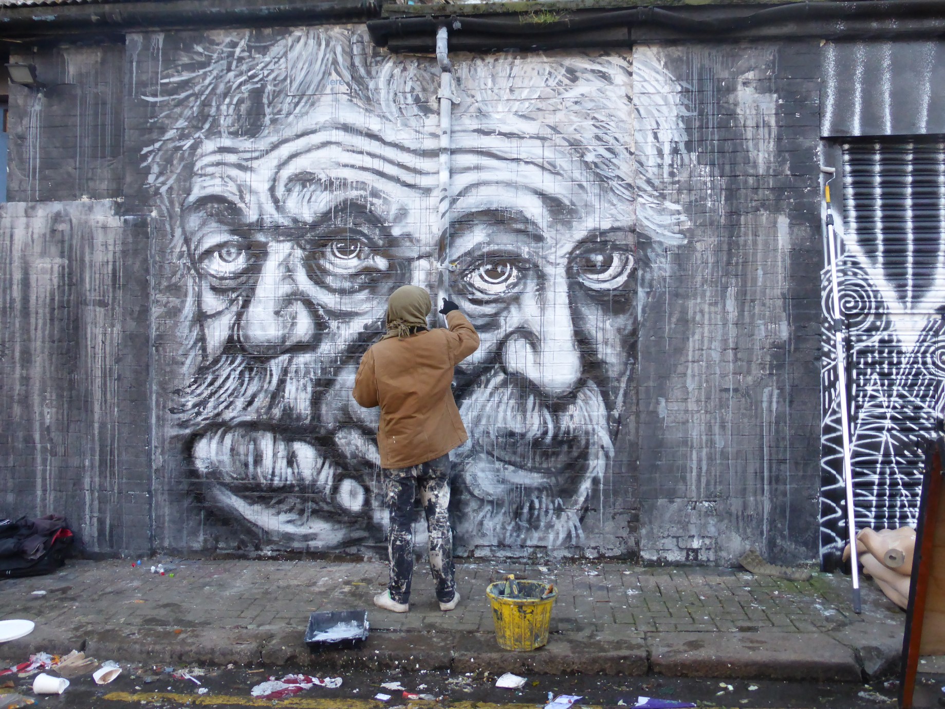New York based American street artist Pyramid Oracle arrived in England this week and has already painted 3 of his trademark black and white portraits in Camden Town. Apparently he will be in London until March and has plans to paint some more pieces. I Look forward to seeing them.