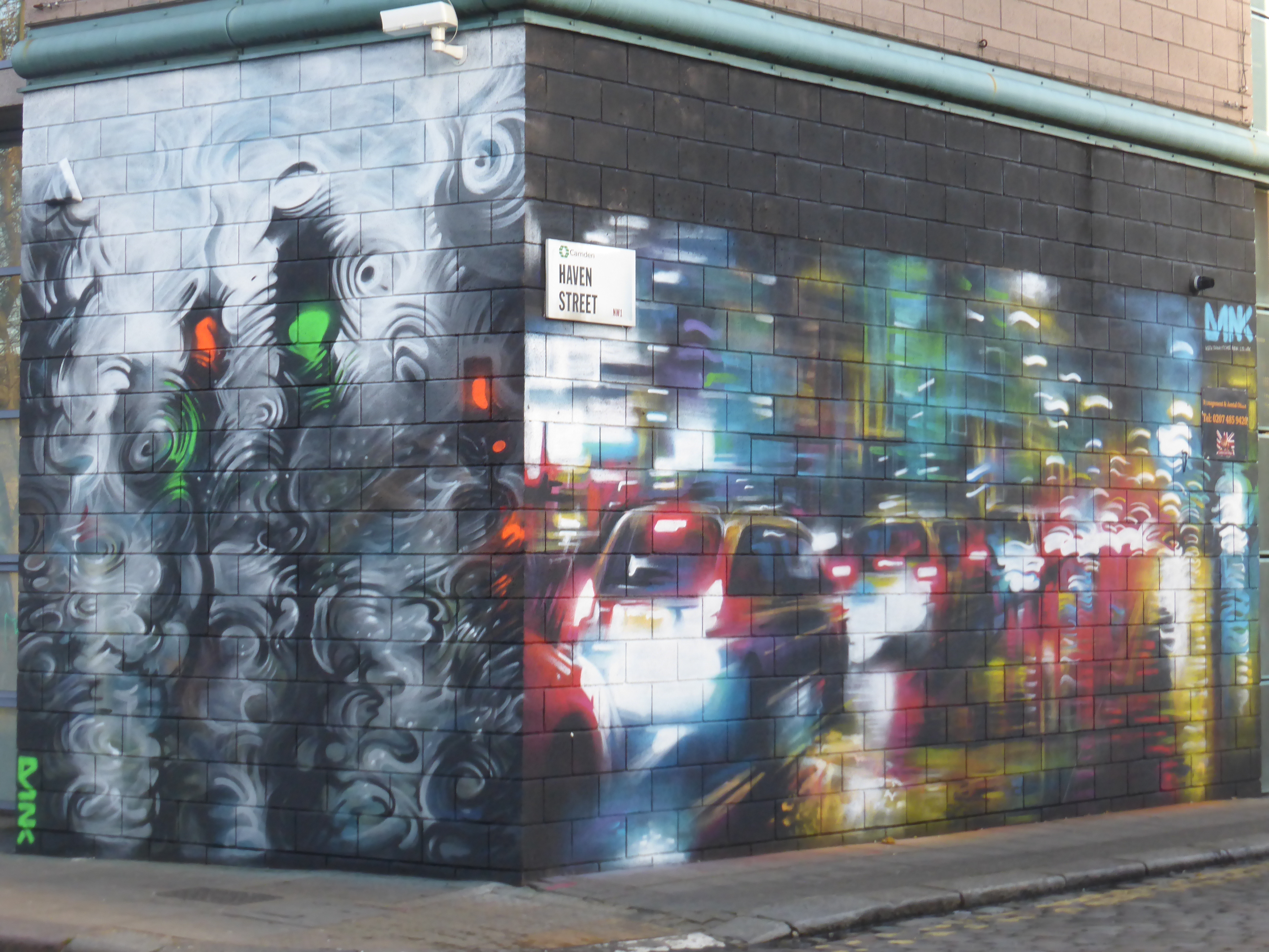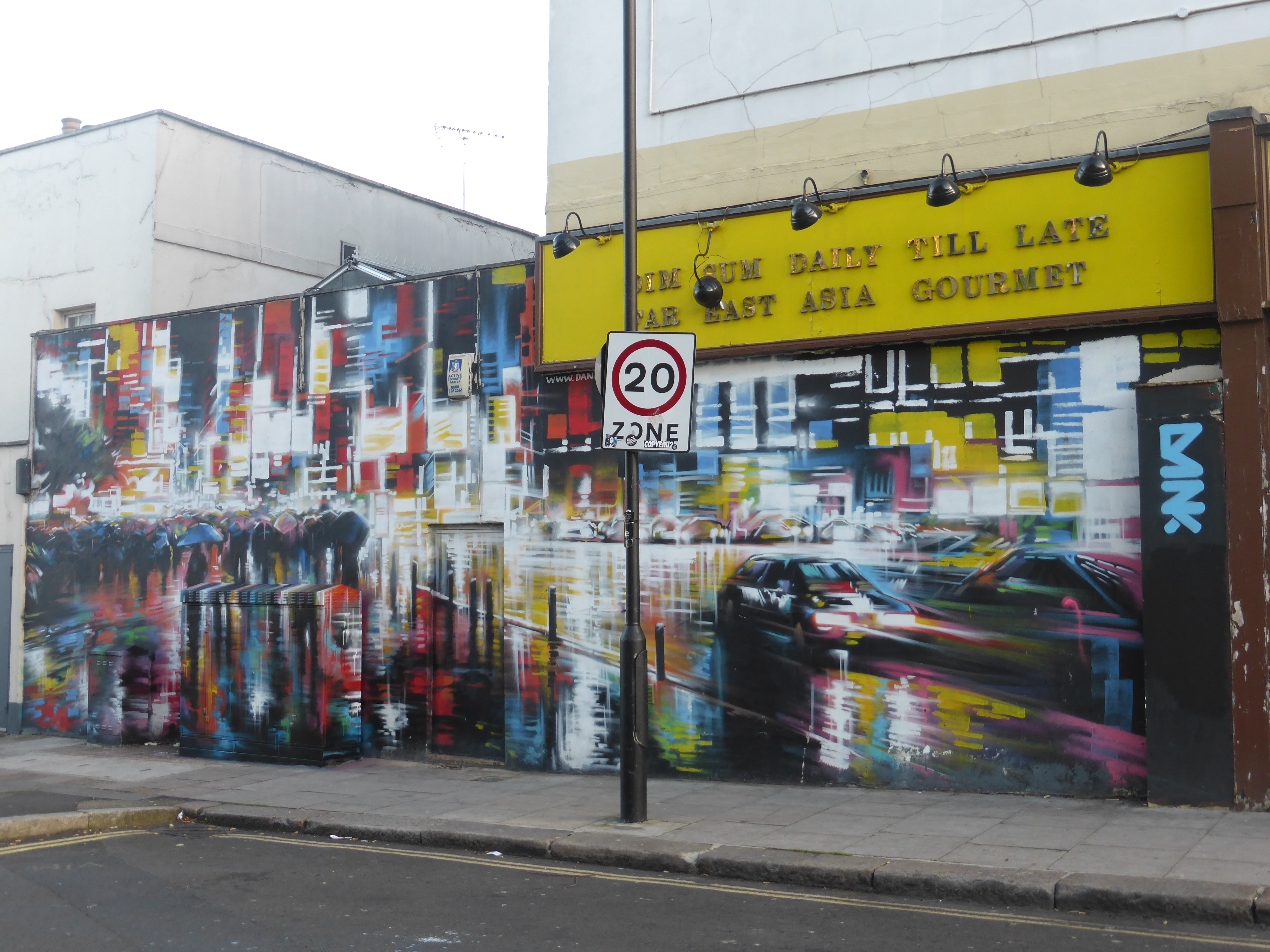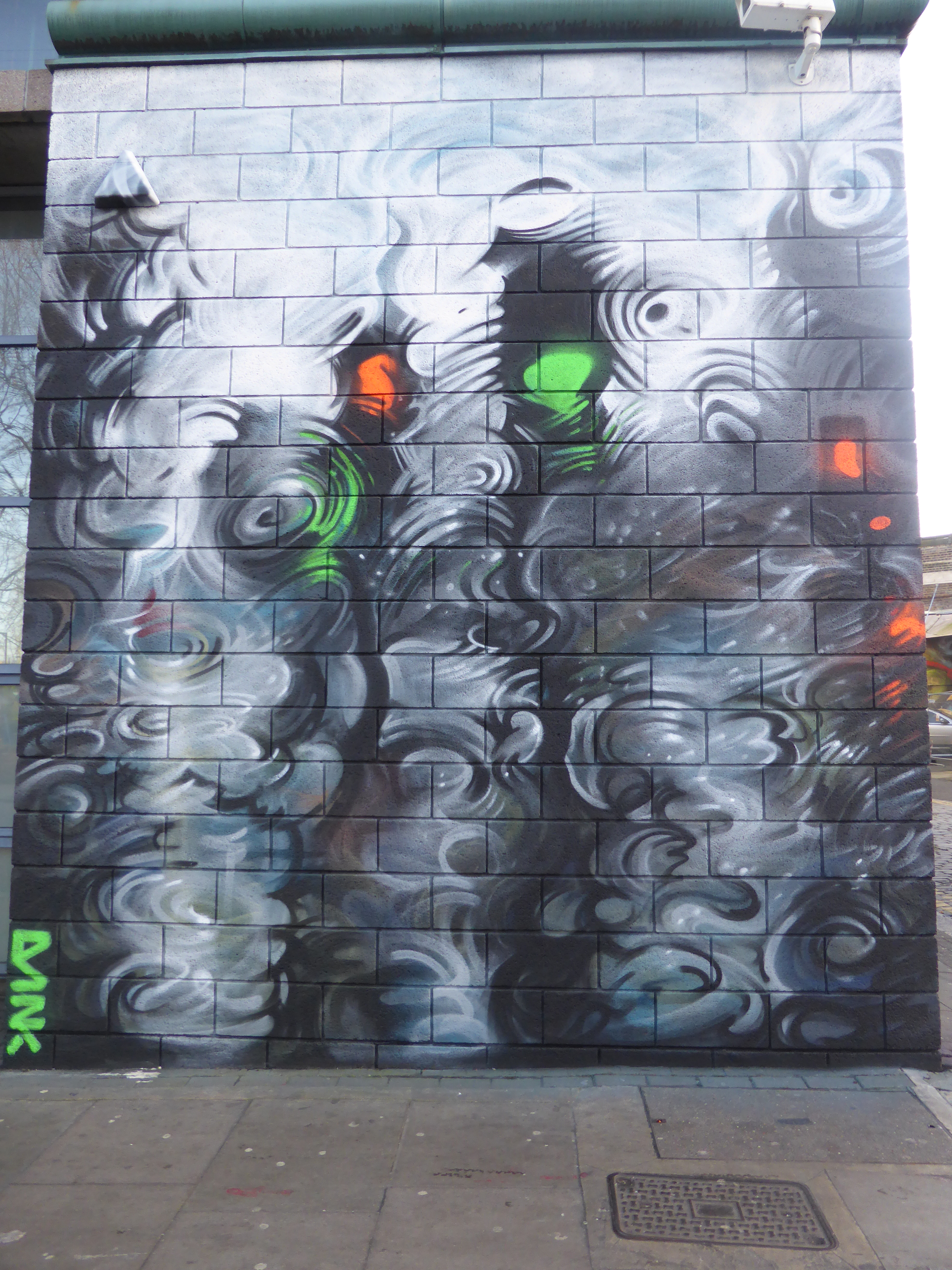 One of the main reasons I went via Camden on Saturday was to see the new Dan Kitchener pieces. He painted 4 brand new walls in Camden Town throughout December and also completed the finishing touches to a piece he started in 2013. Dan Kitchener describes his work has having a “gritty urban theme, taken from everyday life and the surroundings and environment I experience daily. I love to find beauty in the most mundane of scenes and particularly love the relationship with light, shadow and composition. I try to fill my work with a tangible mood, a sense of being there“..