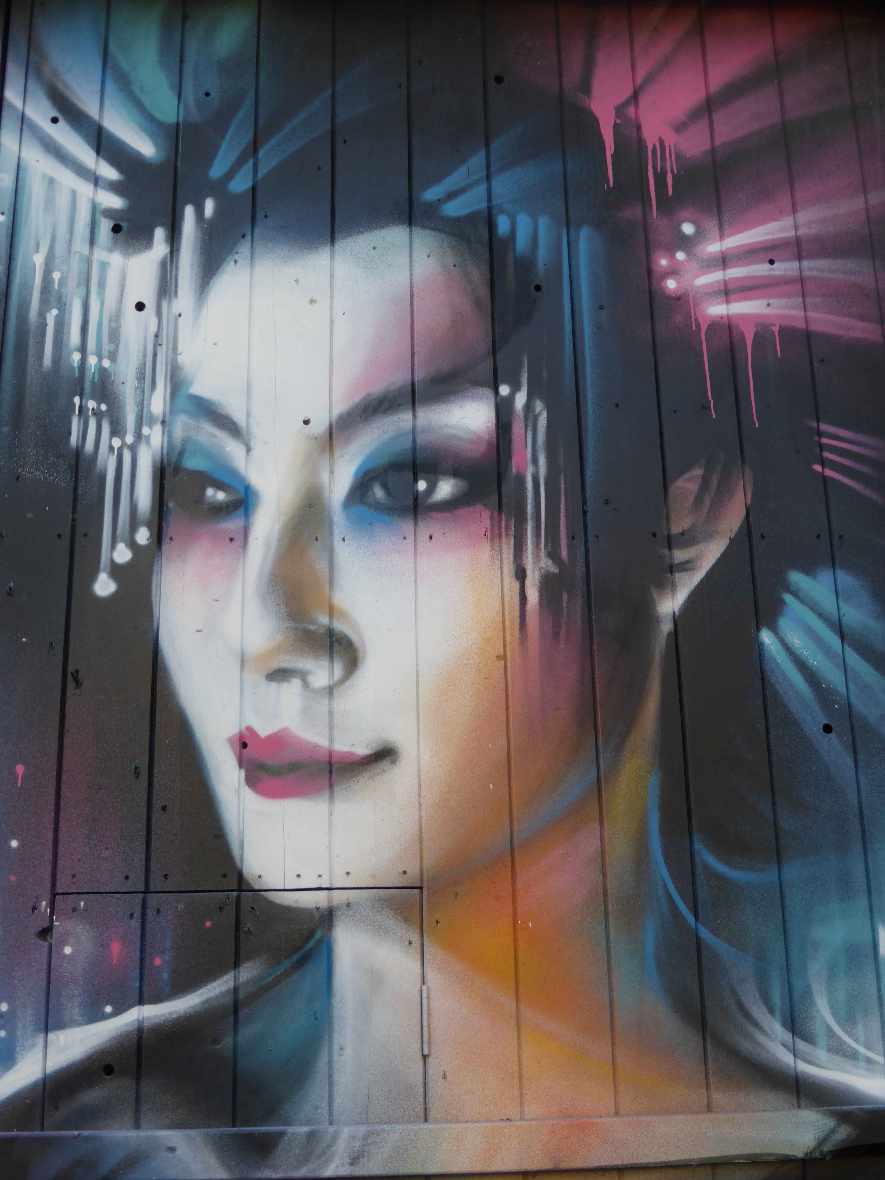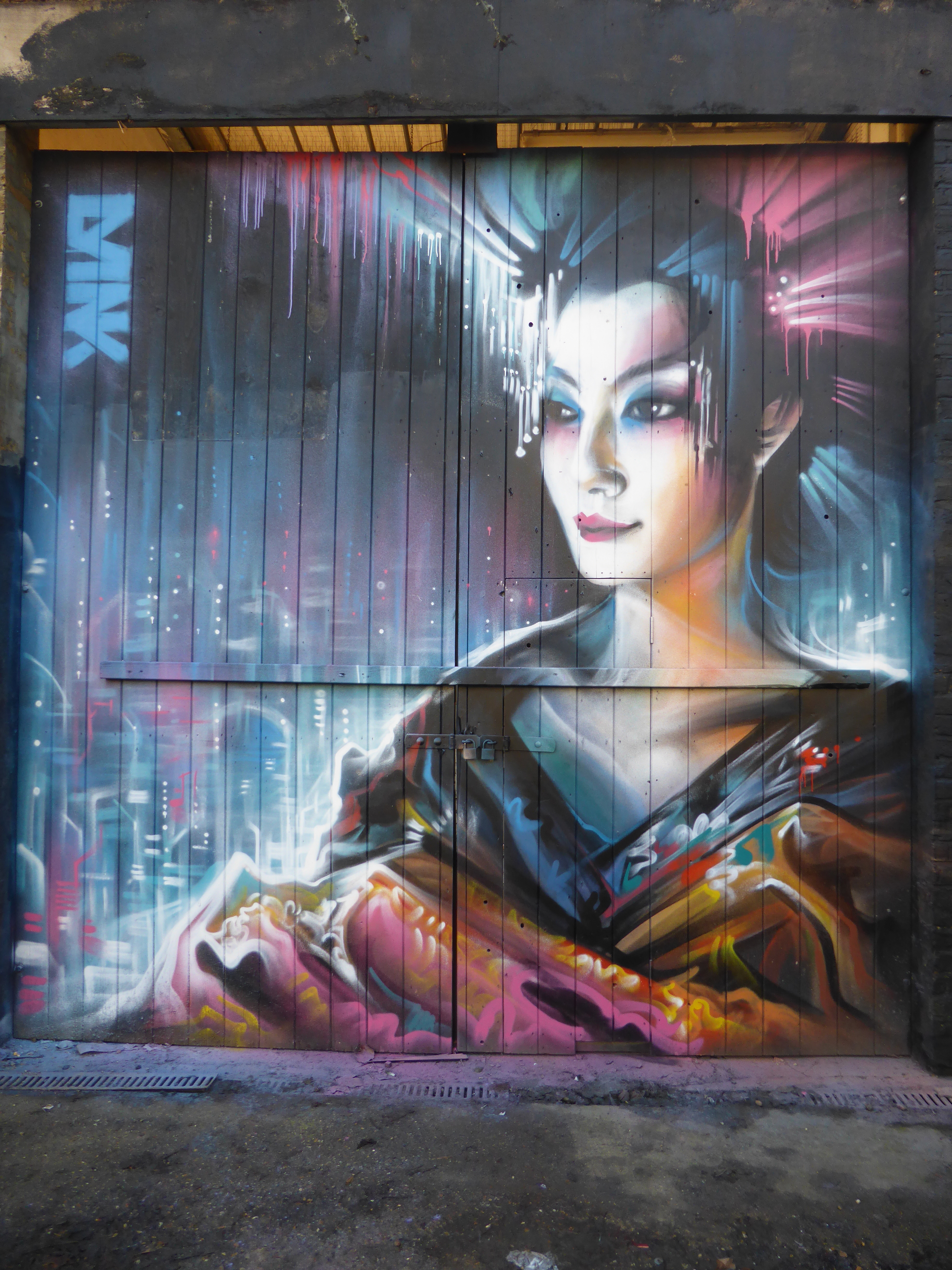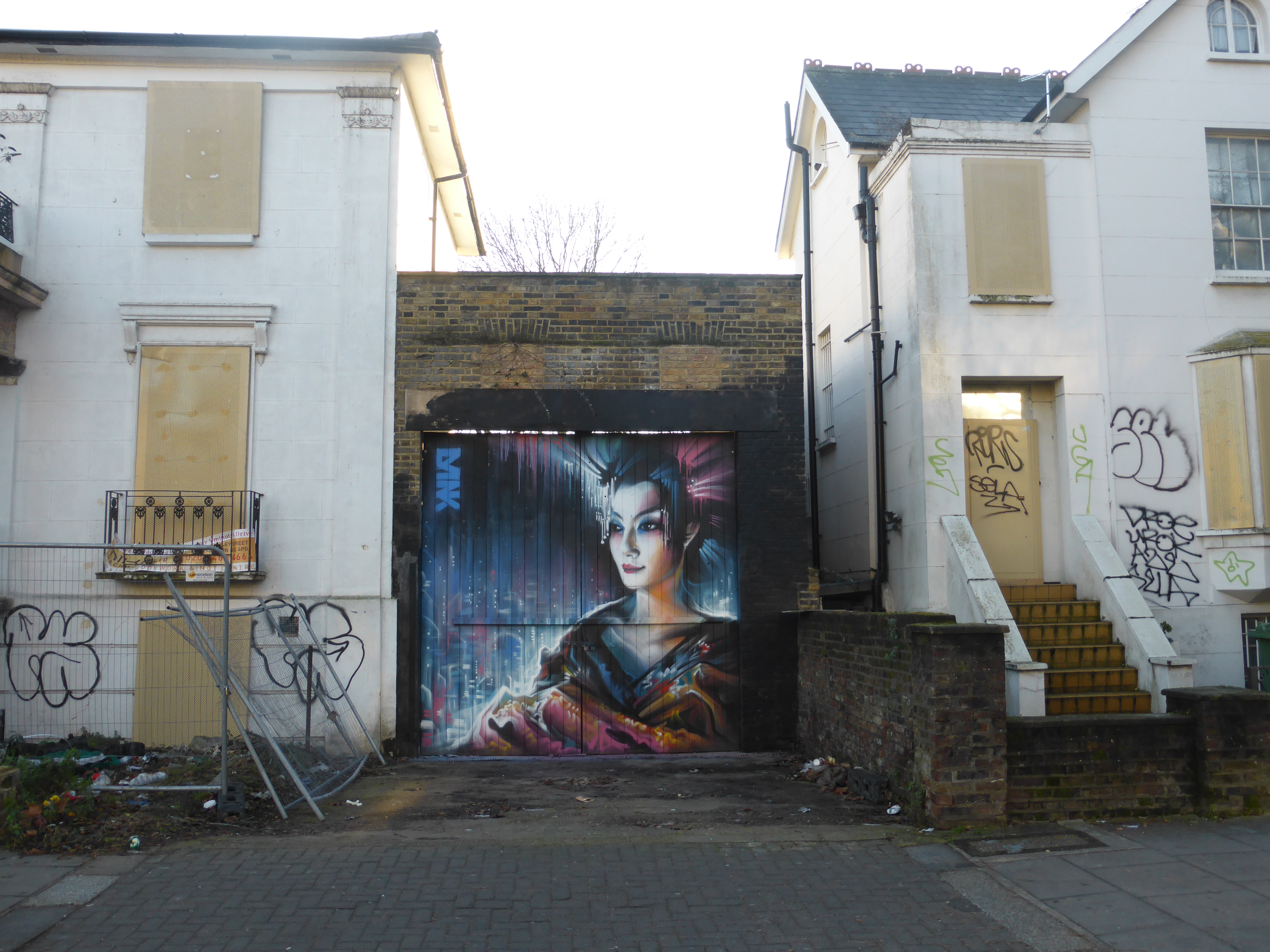 Go see his works while you can, he has certainly left his mark on the Camden street art scene, lets hope its not long before he adds some more. But for now Camden has 2 of his ‘Liquid Lights’ series, a superb Puddle along with 2 of his ‘Future Geisha’ pieces.