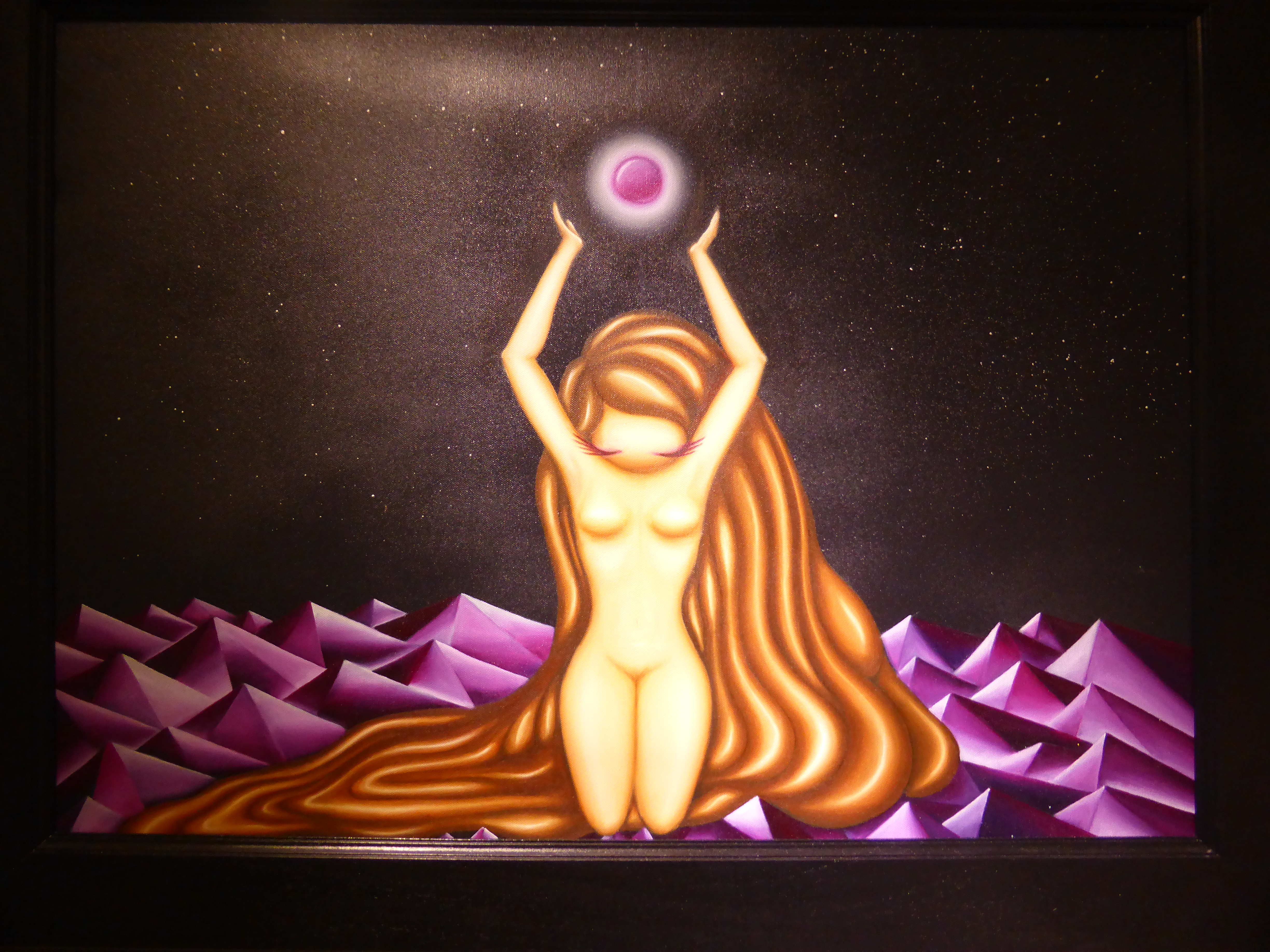 ‘Money Girl’ – Spray Paint & Markers on Wood Board by Victoriano.