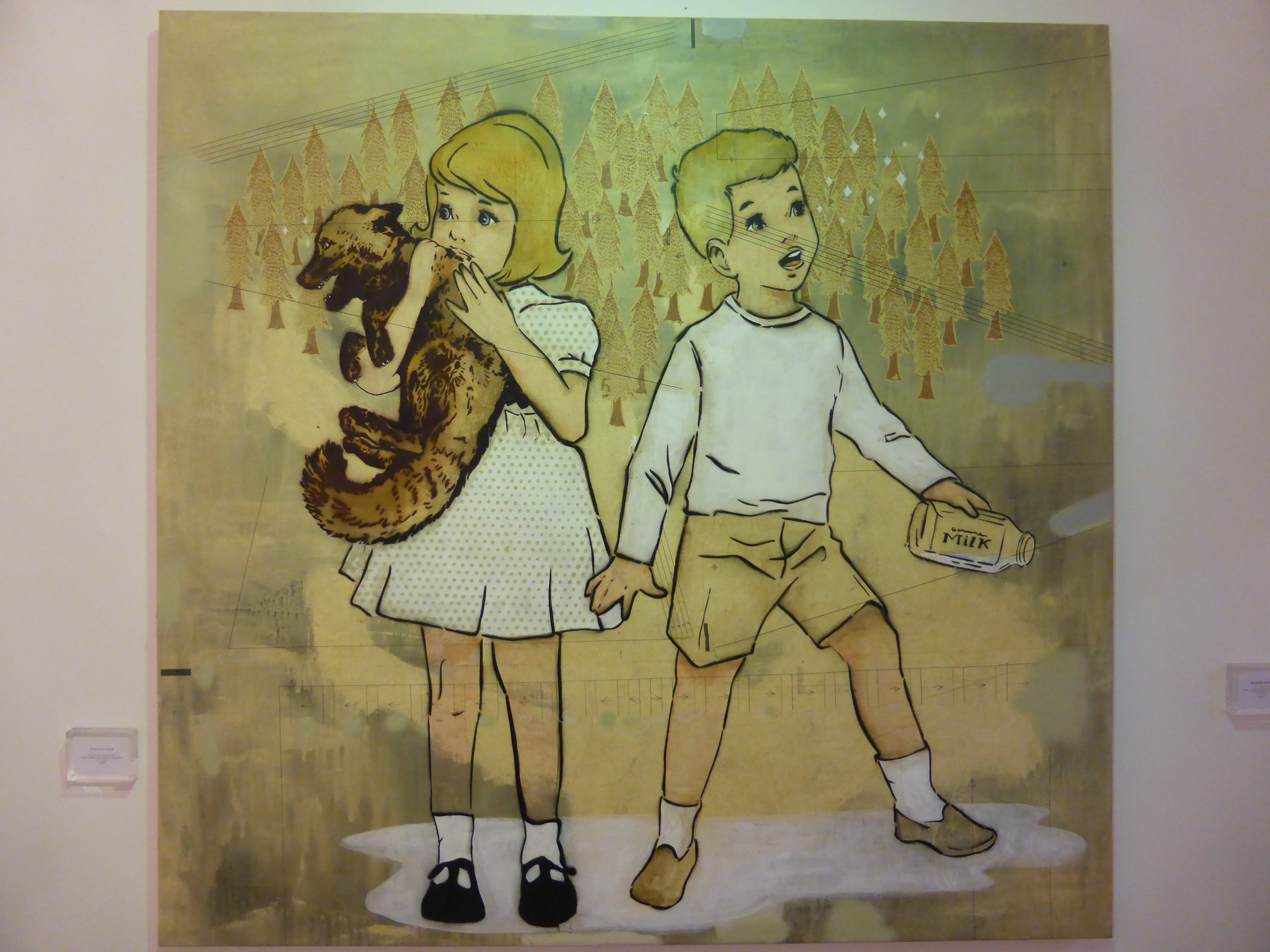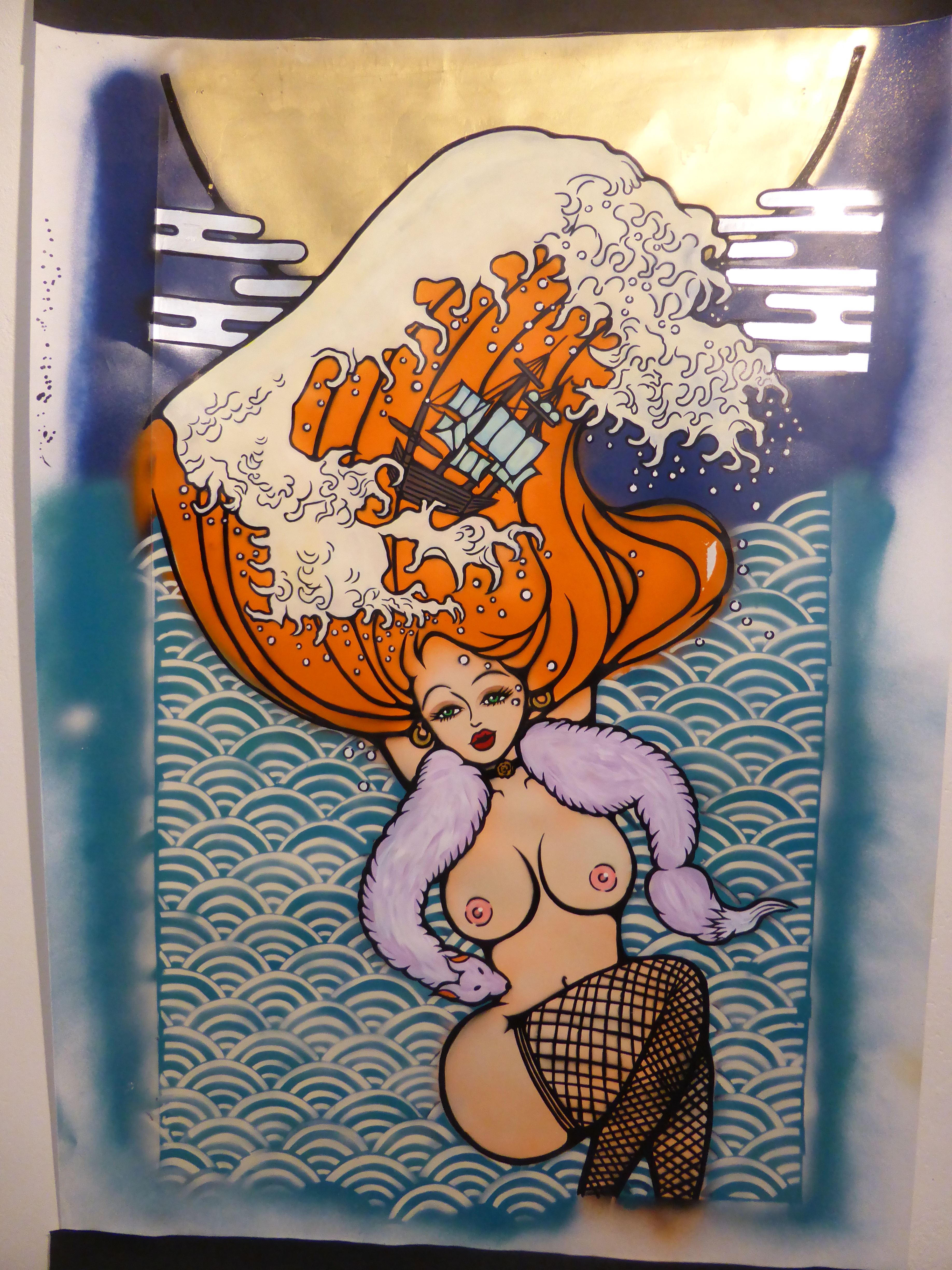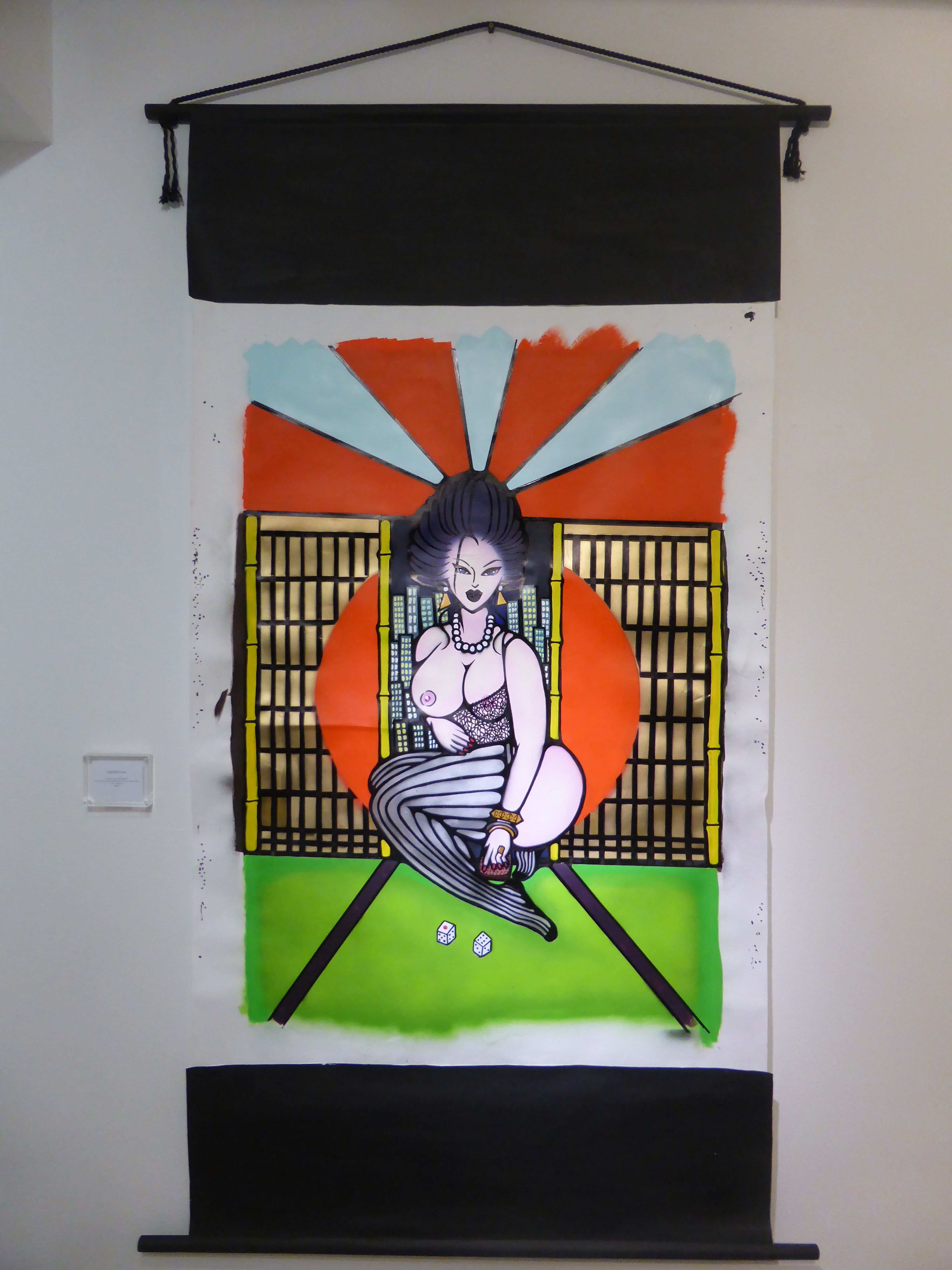 I really liked how Saki & Bitches presented 3 pieces like this in the style of traditional Japanese hanging scrolls. It was also interesting to see how this street artist was less restricted in subject matter when not presenting her work in public.