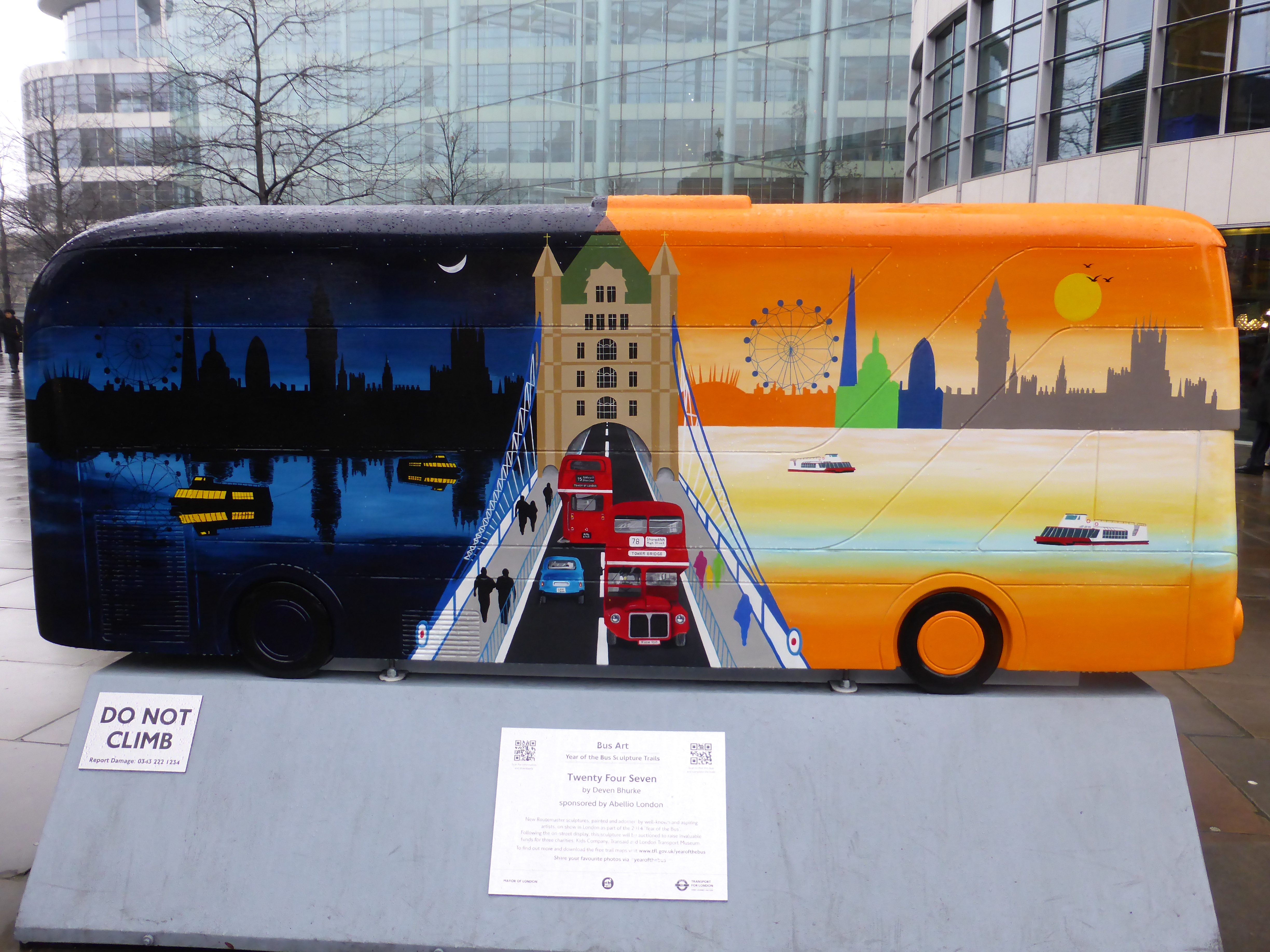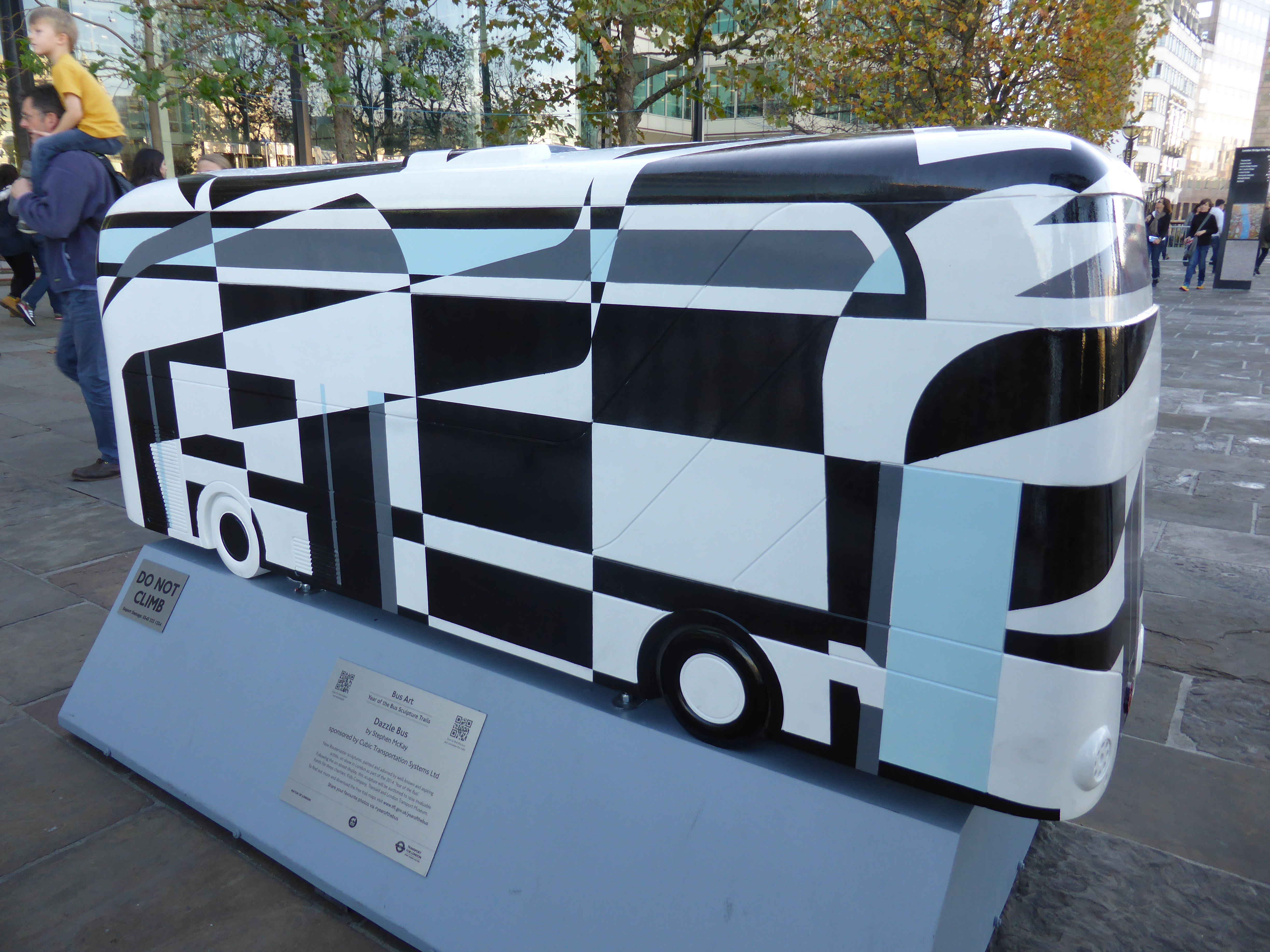 From the River trail, placed alongside HMS Belfast on the Southbank. paying homage to the camouflage techniques used by such vessels in the World Wars, ‘Dazzle Bus’ by Stephen Mackay.
