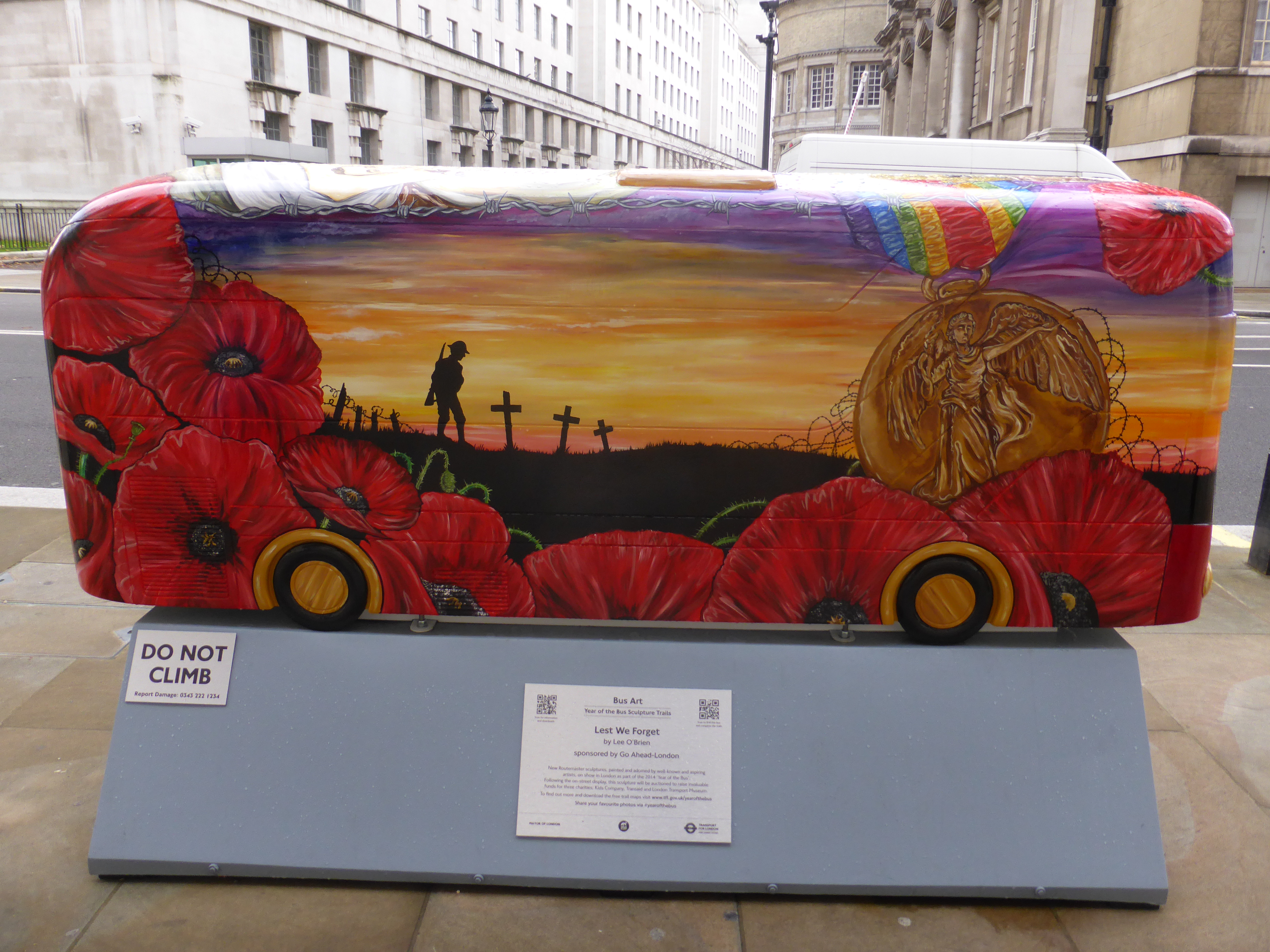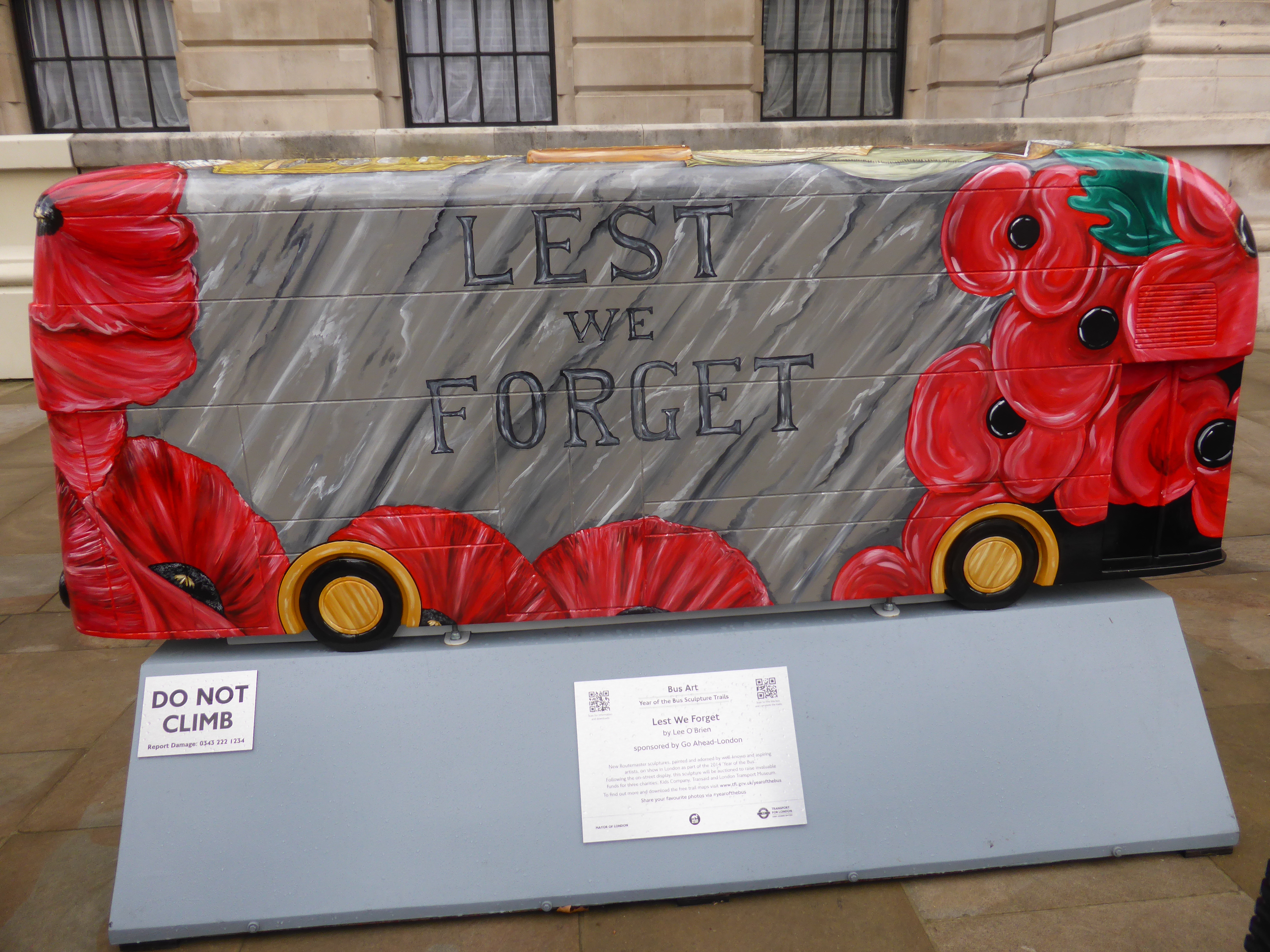 From the Westminster trail, placed n Whitehall between the 2 Ministry Of Defense buildings and just a minutes walk from the Cenotaph, ‘Lest We Forget’ by Lee O’Brien.