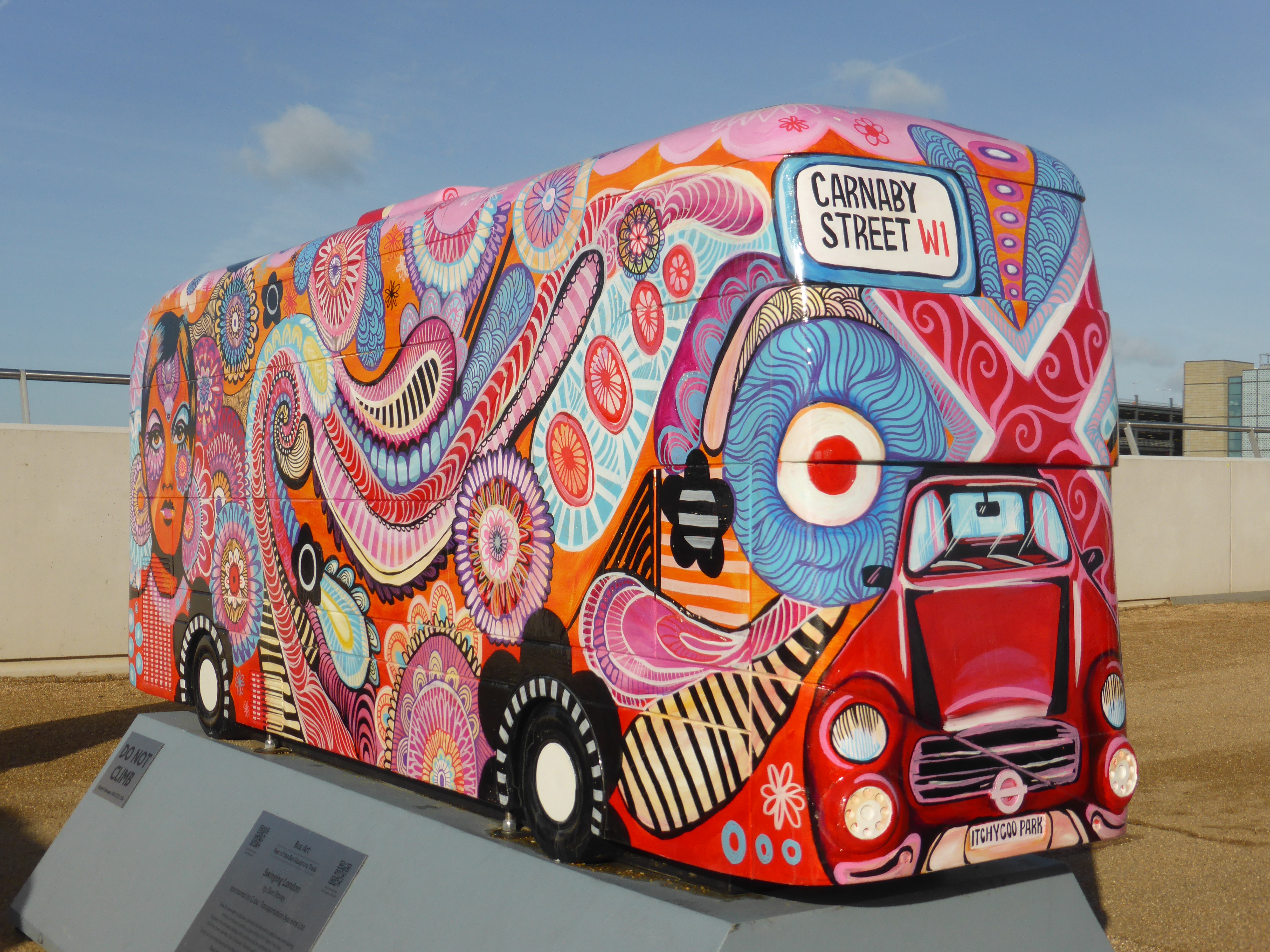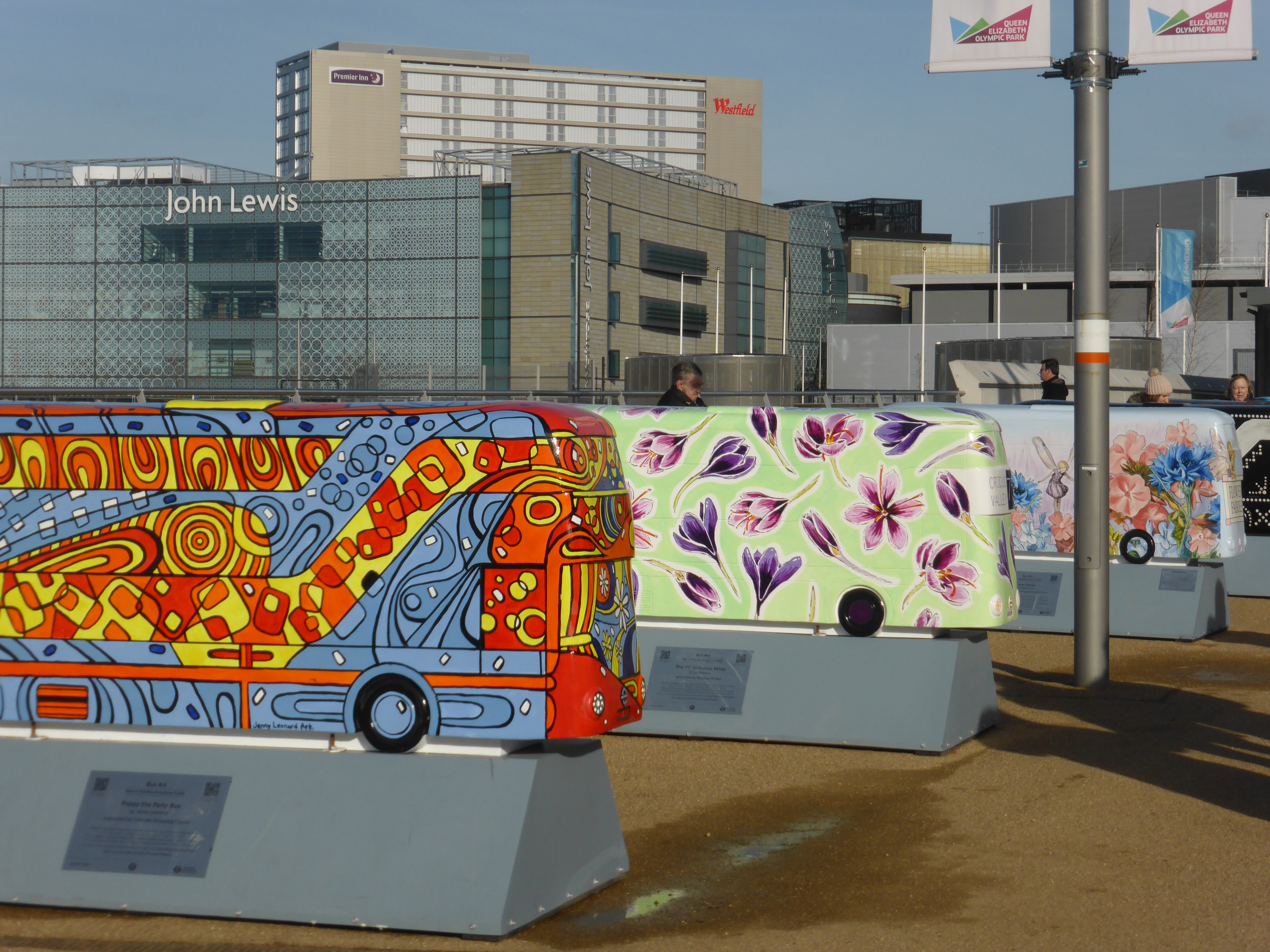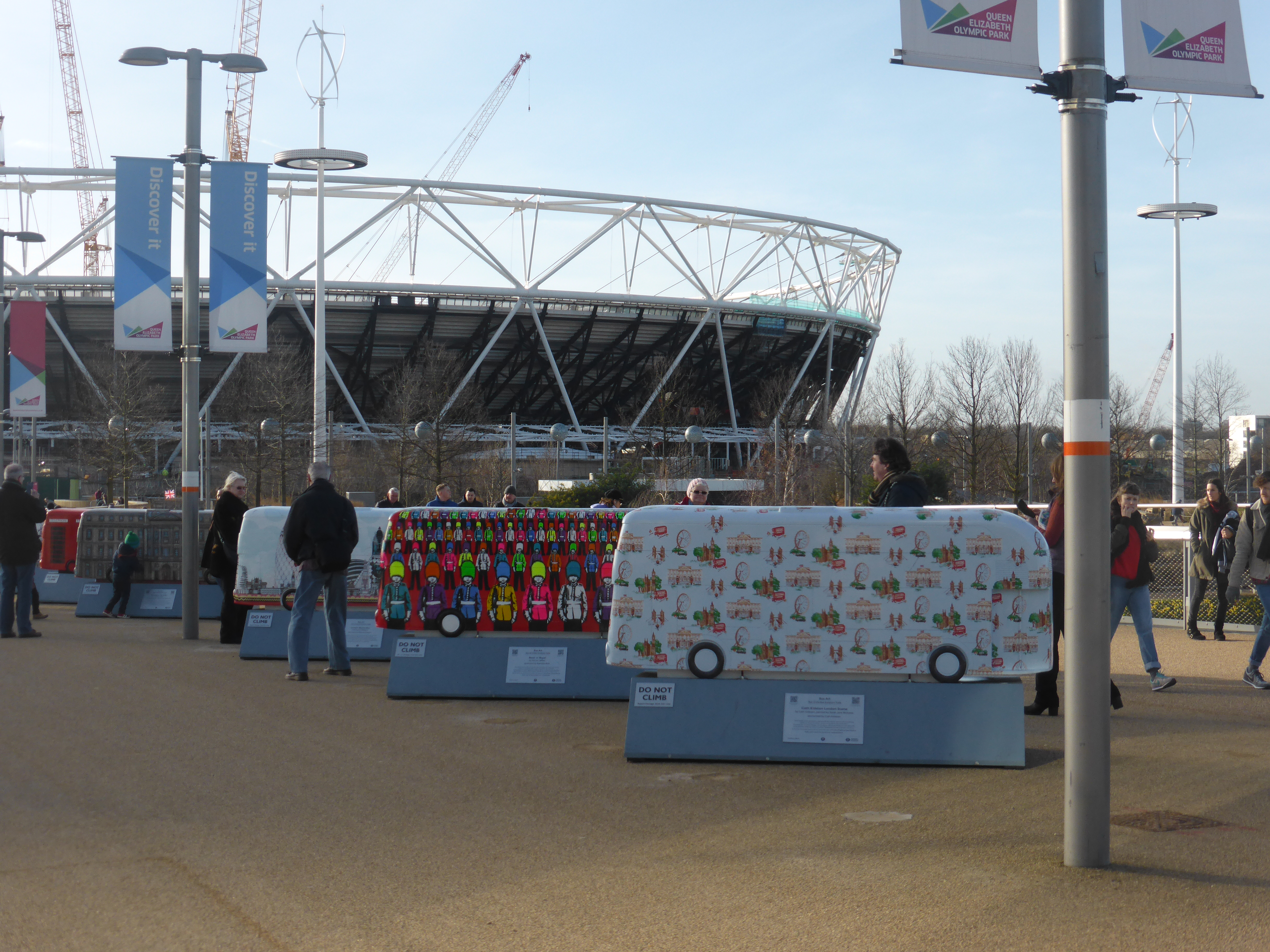 Over the last weekend the finale of the public art trails that comprised ‘The Year Of The Bus’ took place at the Queen Elizabeth Olympic Park, concluding the campaign to celebrate 100 years of the modern bus. From the bus that ferried troops to and from the front line in Europe to the iconic Routemaster the London bus saw its place in the centennial events remembering the First World War. For this 4 walks around London were made up, in Westminster, around the Thames River, in Croydon and at the Olympic Park, with the idea being that you walked around these areas taking in the iconic landmarks along the way finding these quite exquisitely decorated buses. The campaign started in October 2014 and for its finale all the buses were brought together this weekend at the Olympic Park before being auctioned off for charity.