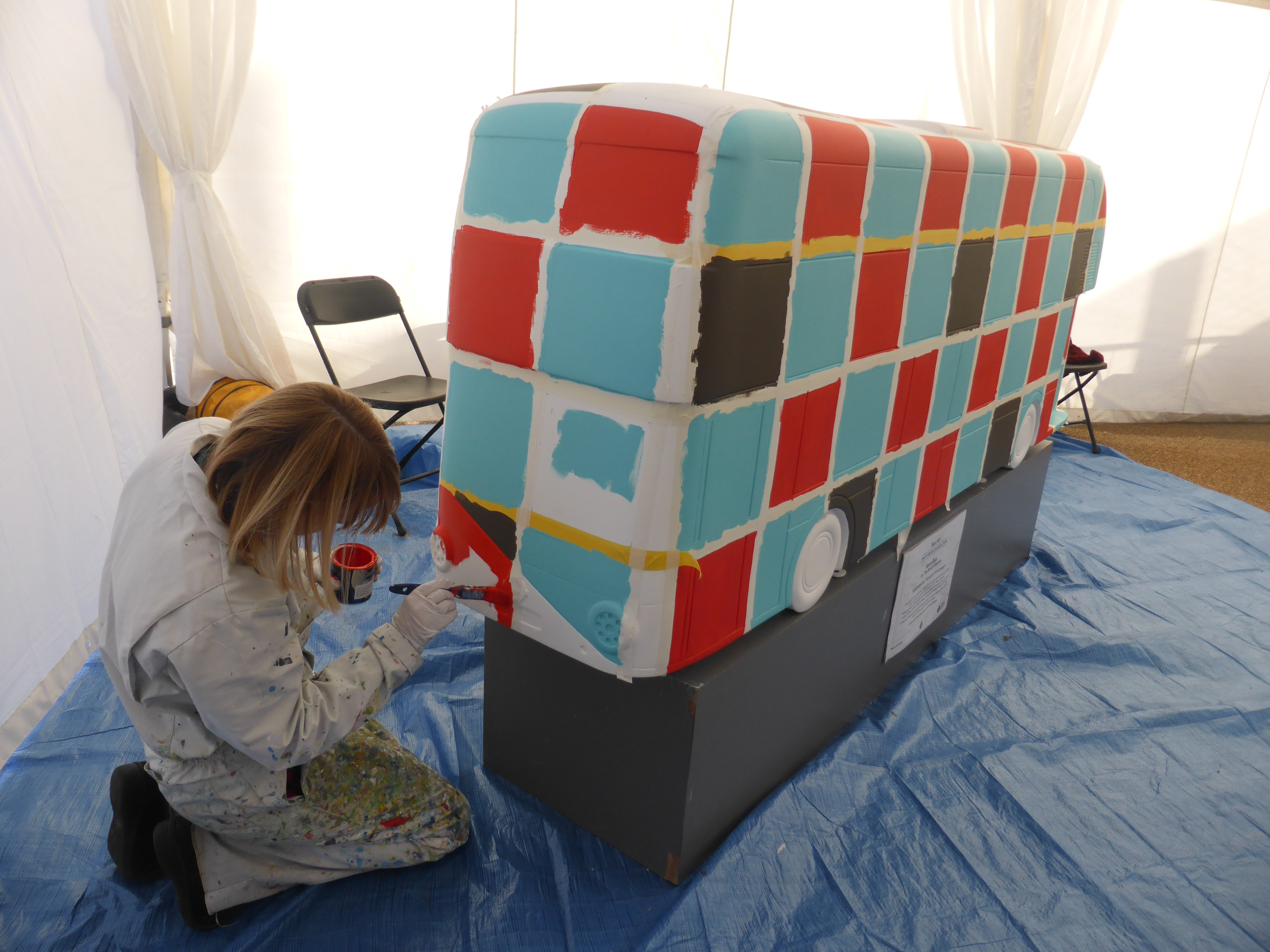 The last bus of the collection, ‘Icon Bus’ by The Route Masters, being painted over the weekend.