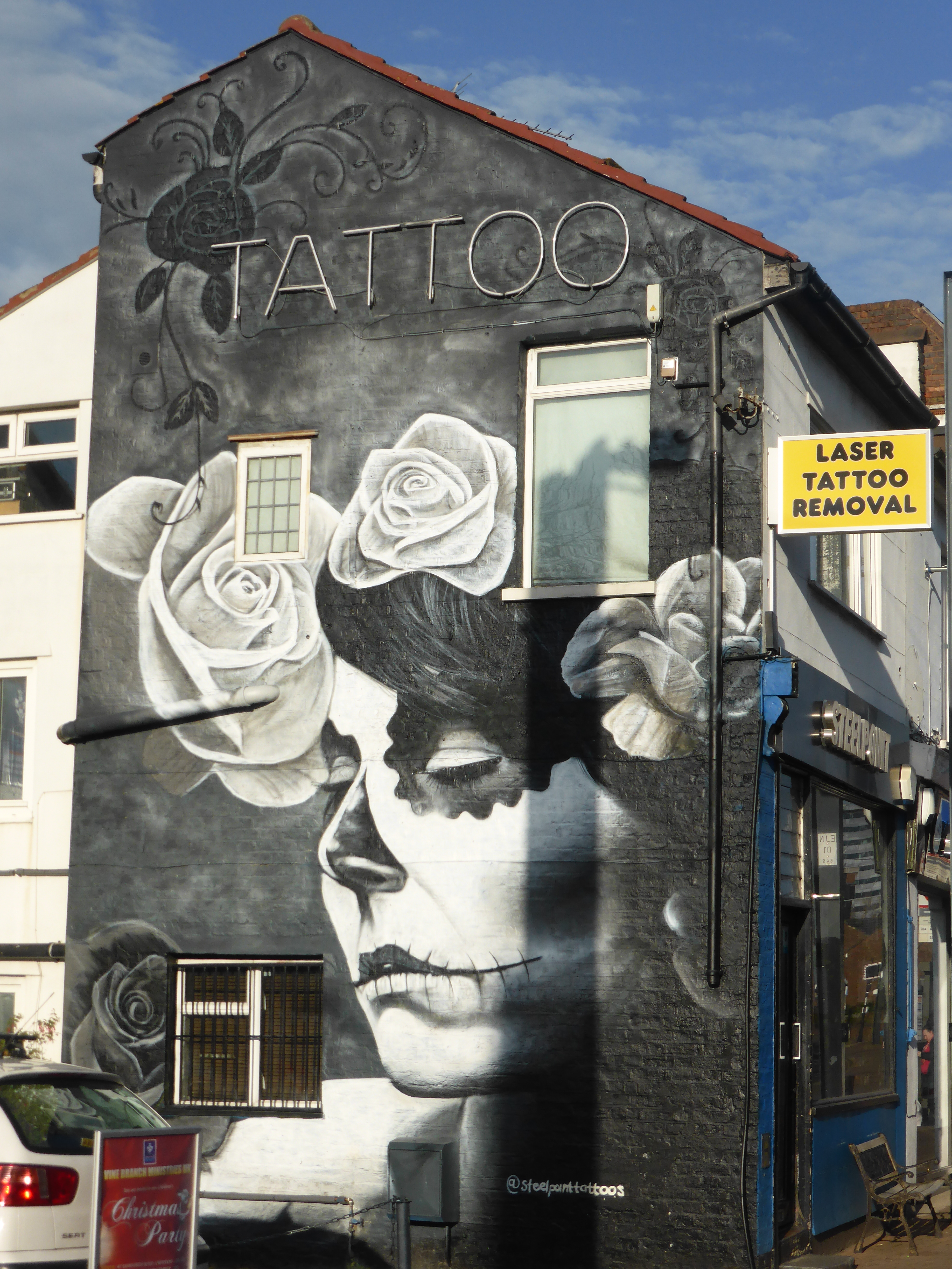 On Tamworth Road at the Steel Point Tattoo shop can be seen this beautiful piece, again from Gnasher, and is well worth the 10 minute detour from the Arts Quarter to see.