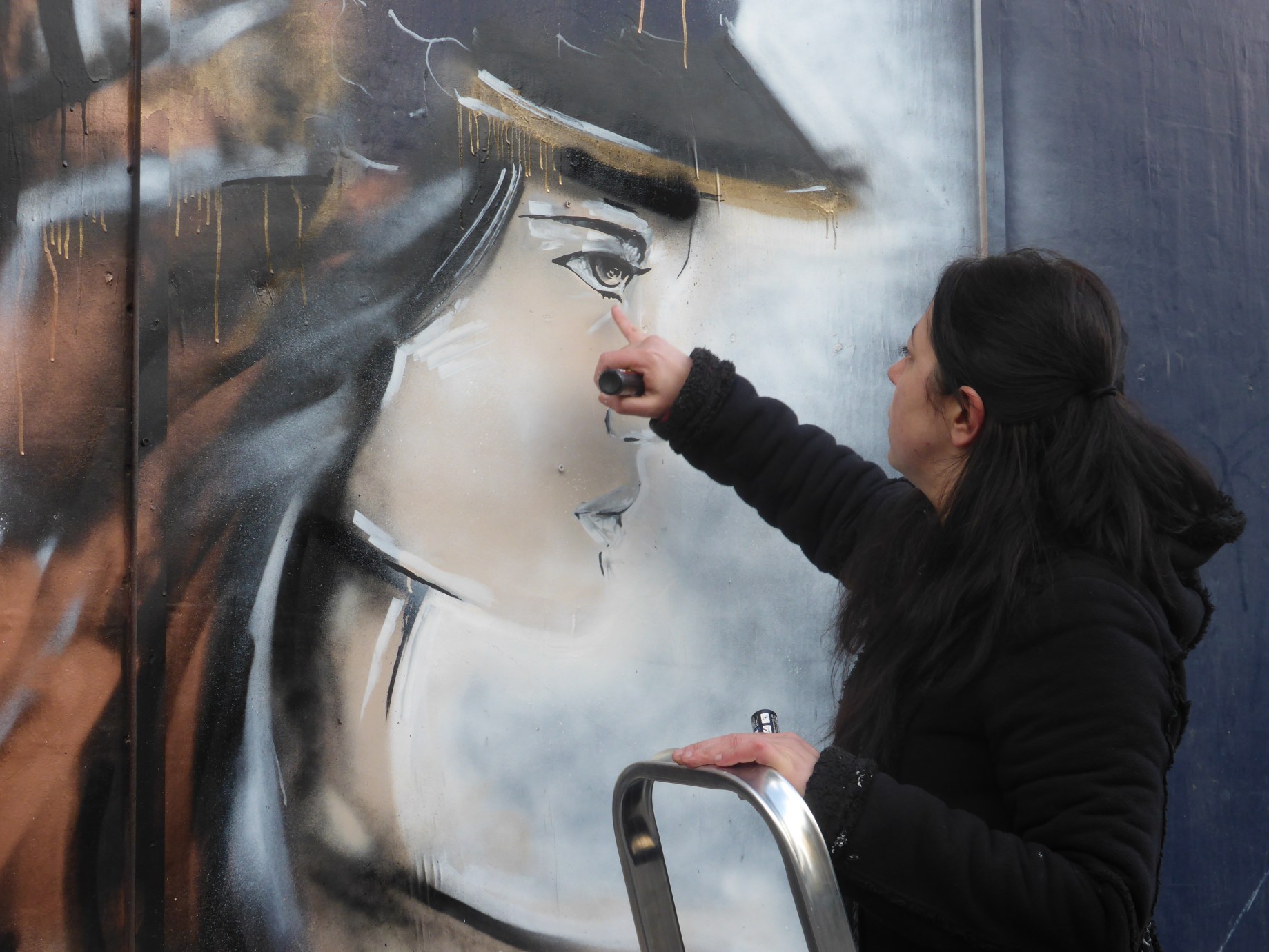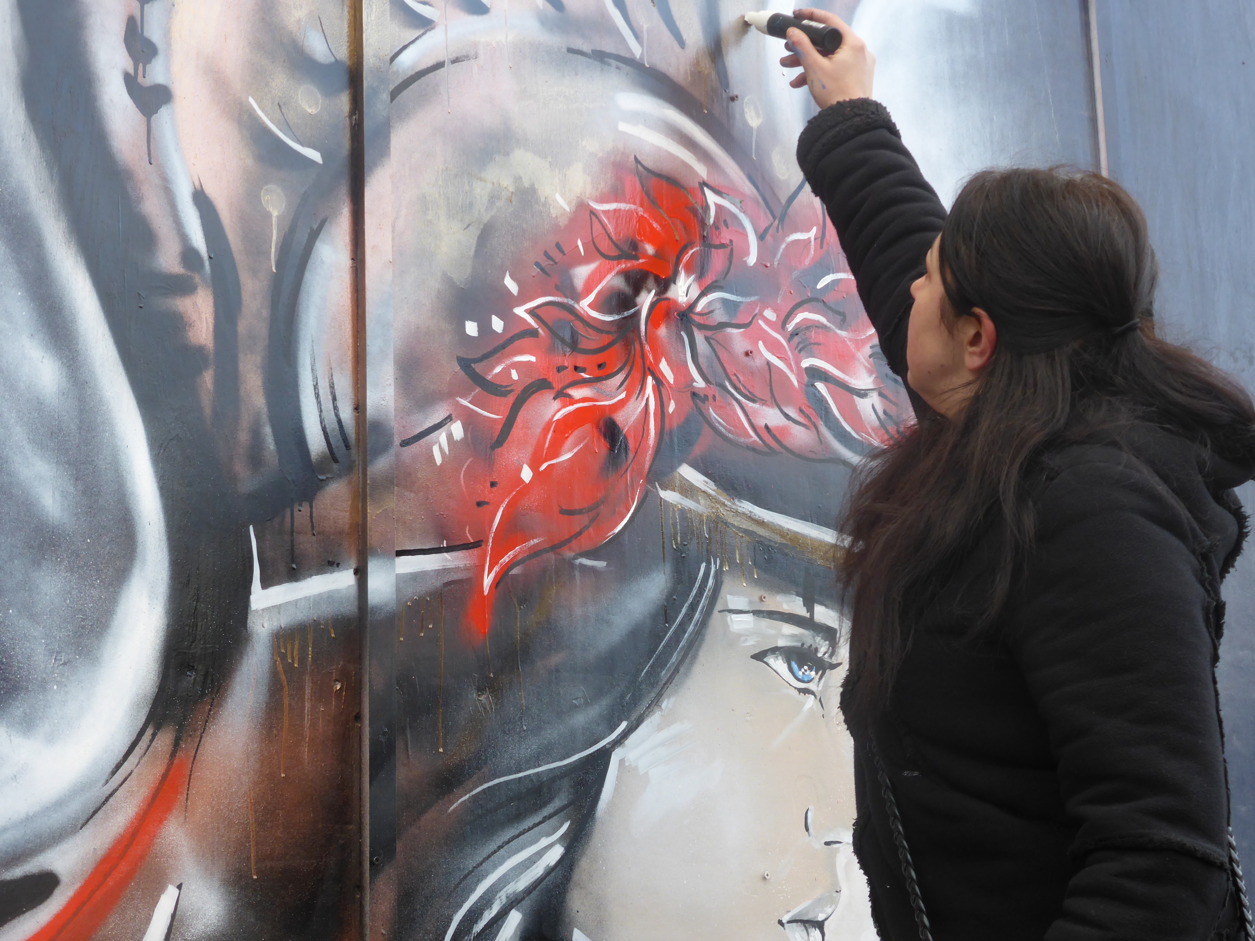 In our second feature piece from Femme Fierce Croydon we have London based Italian artist Giusi Tomasello. She was painting on Park Street next to the bus stop with plenty of people passing by. You would think this would of been daunting considering this was only the third wall Giusi has painted, and none on this scale before, however she pulled off a great piece that was a highlight of the festival. She couldn’t of been nicer, working away with the public passing along and allowing us at London Calling to take plenty of pictures of this lovely piece throughout the process. Incredible that this was only her third piece in public. Great work.