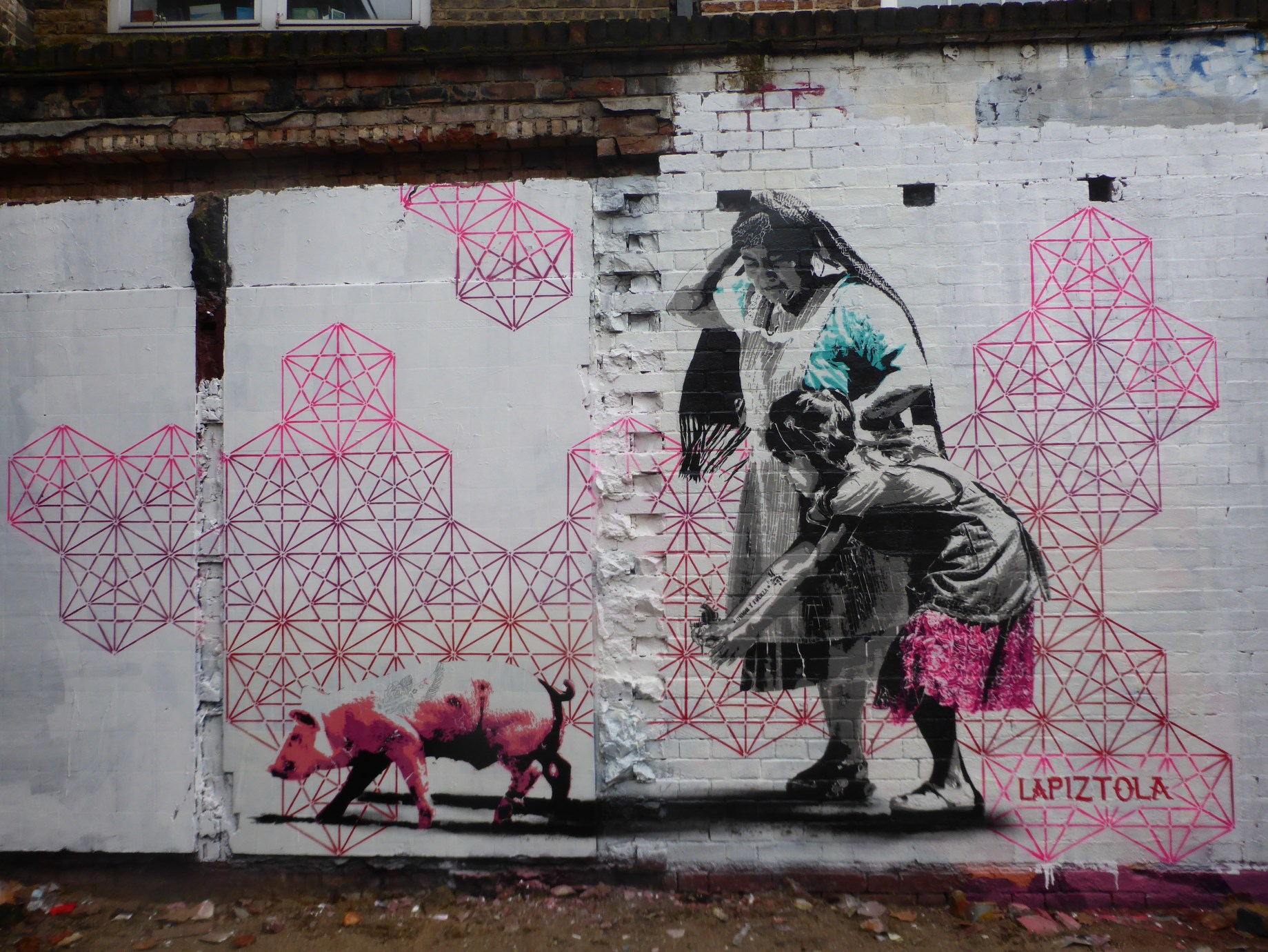 This particular piece caught my eye. LaPiztola’s background is largely represented by symbolism based on Mexico’s problems including political, social, and environmental issues.
