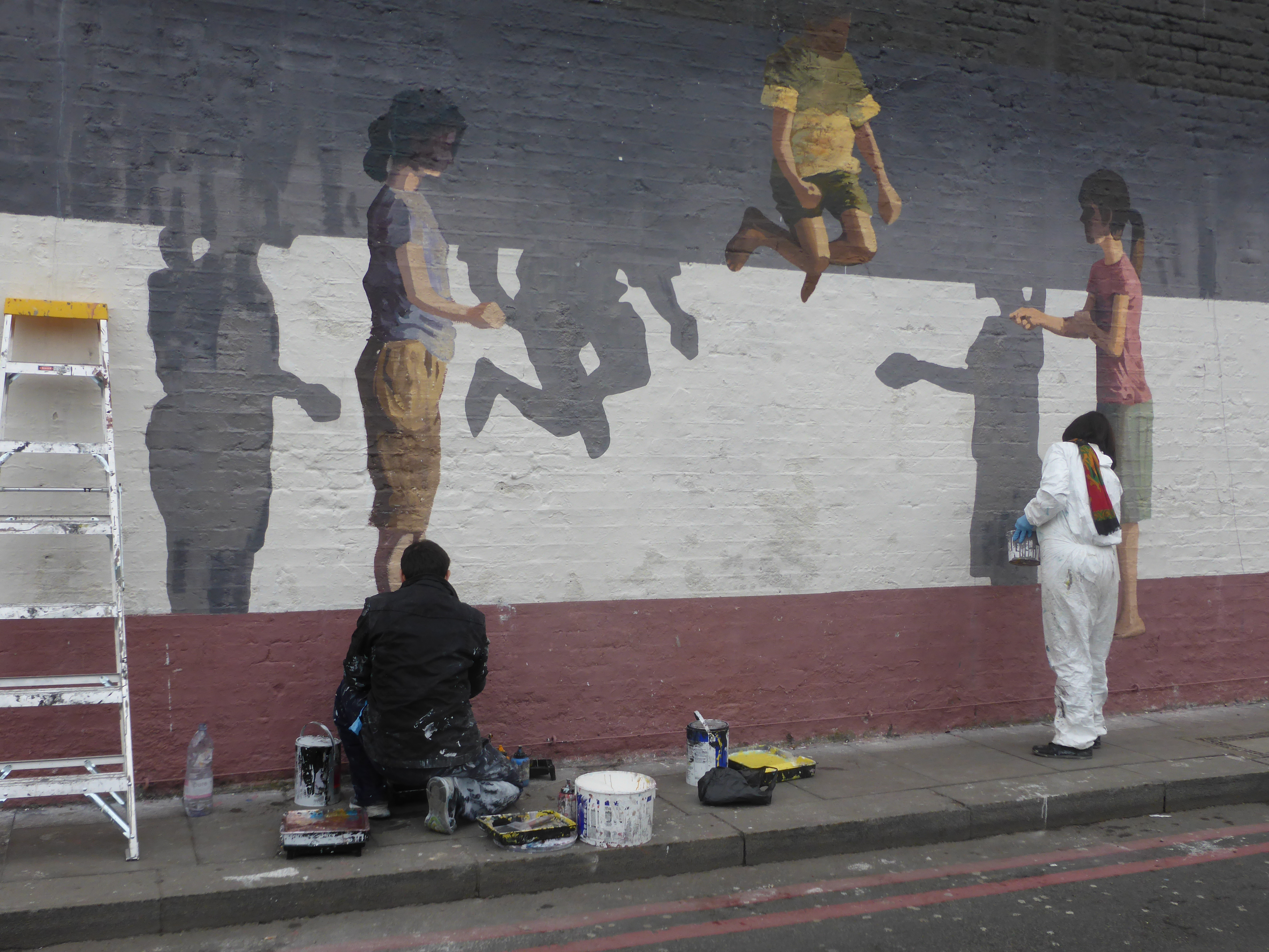 Working away on the finishing touches Sunday lunch time with the help of his wife who was seen to be helping fill in the gaps and touch up the work as well as offering advice throughout the whole process.