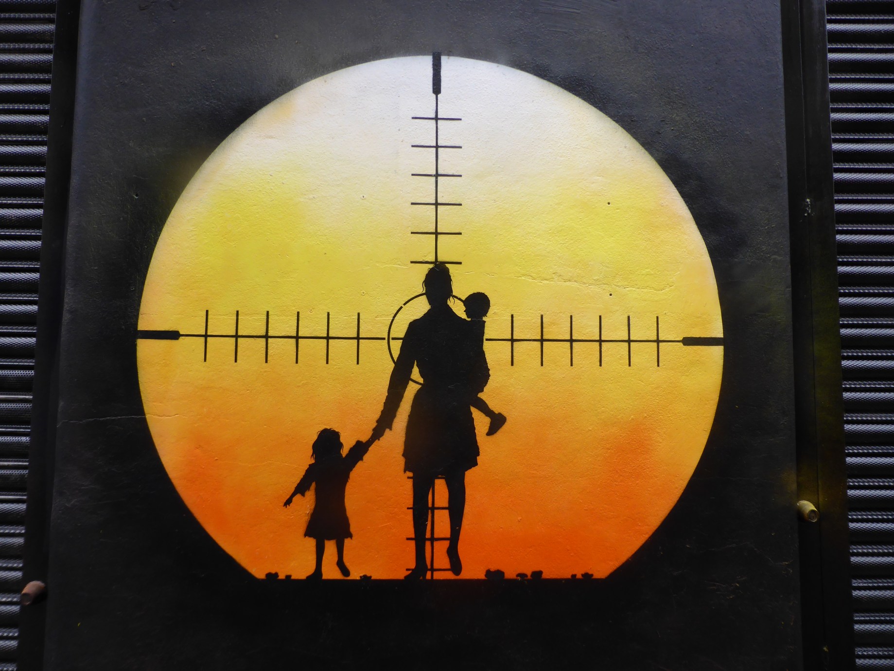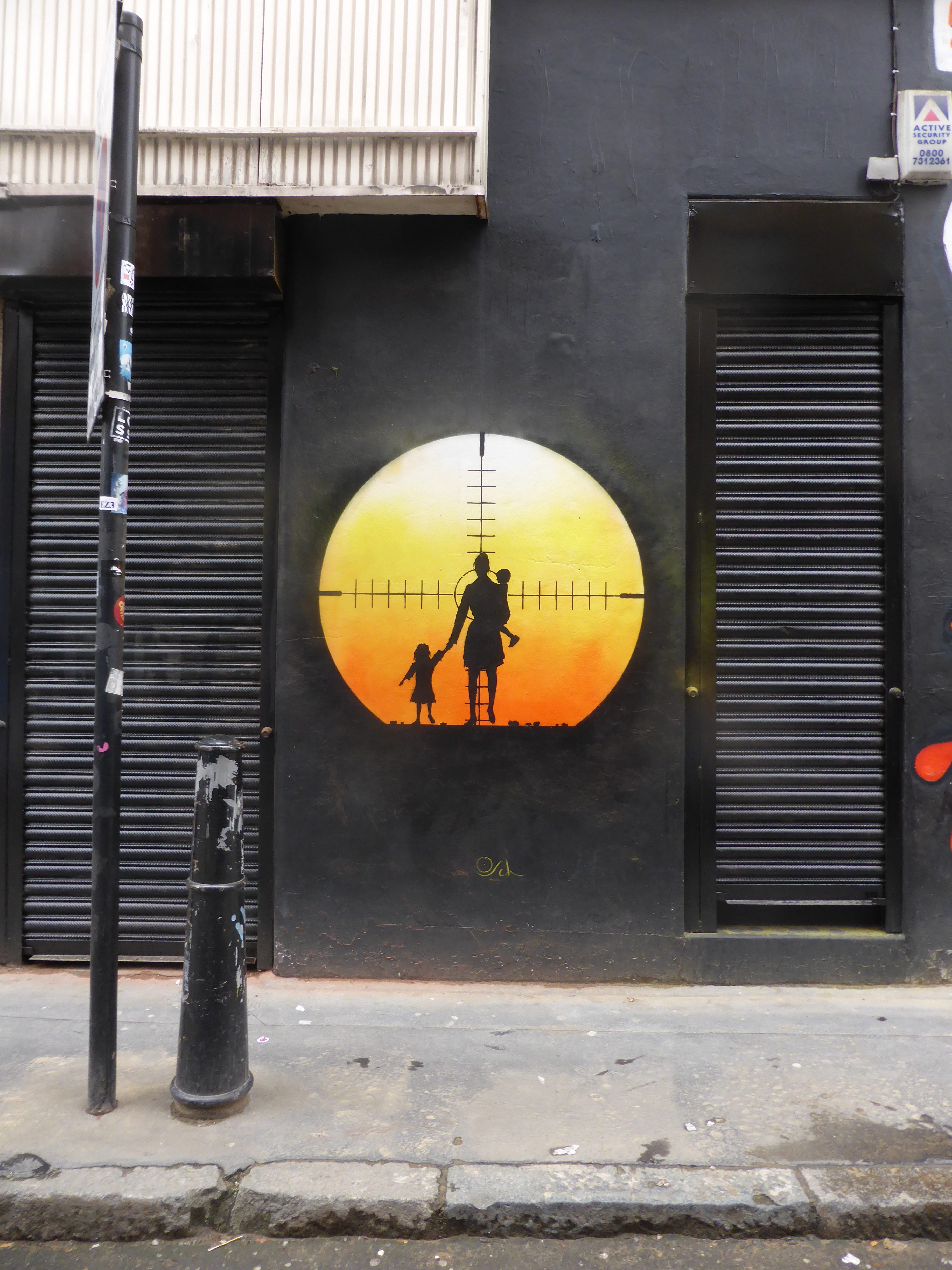 Otto’s painting styles range from the abstract and surreal. Working predominantly with oil paint, and incorporating practices such as collage, illustration and stencil. The themes behind his compositions read in a personal, metaphorical sense with a sharp, ironic touch. Otto has long been a major star on the London street art scene and I for one consider him to be one of the best artists around and find his two main street styles (both demonstrated below) to offer a combination of the creative and fun with his tape effect style creations which offer so much depth to look at, and offer a glimpse at his former career as an architect, countered by his stark and incredibly powerful silhouette pieces, which really do just stop me in my tracks.