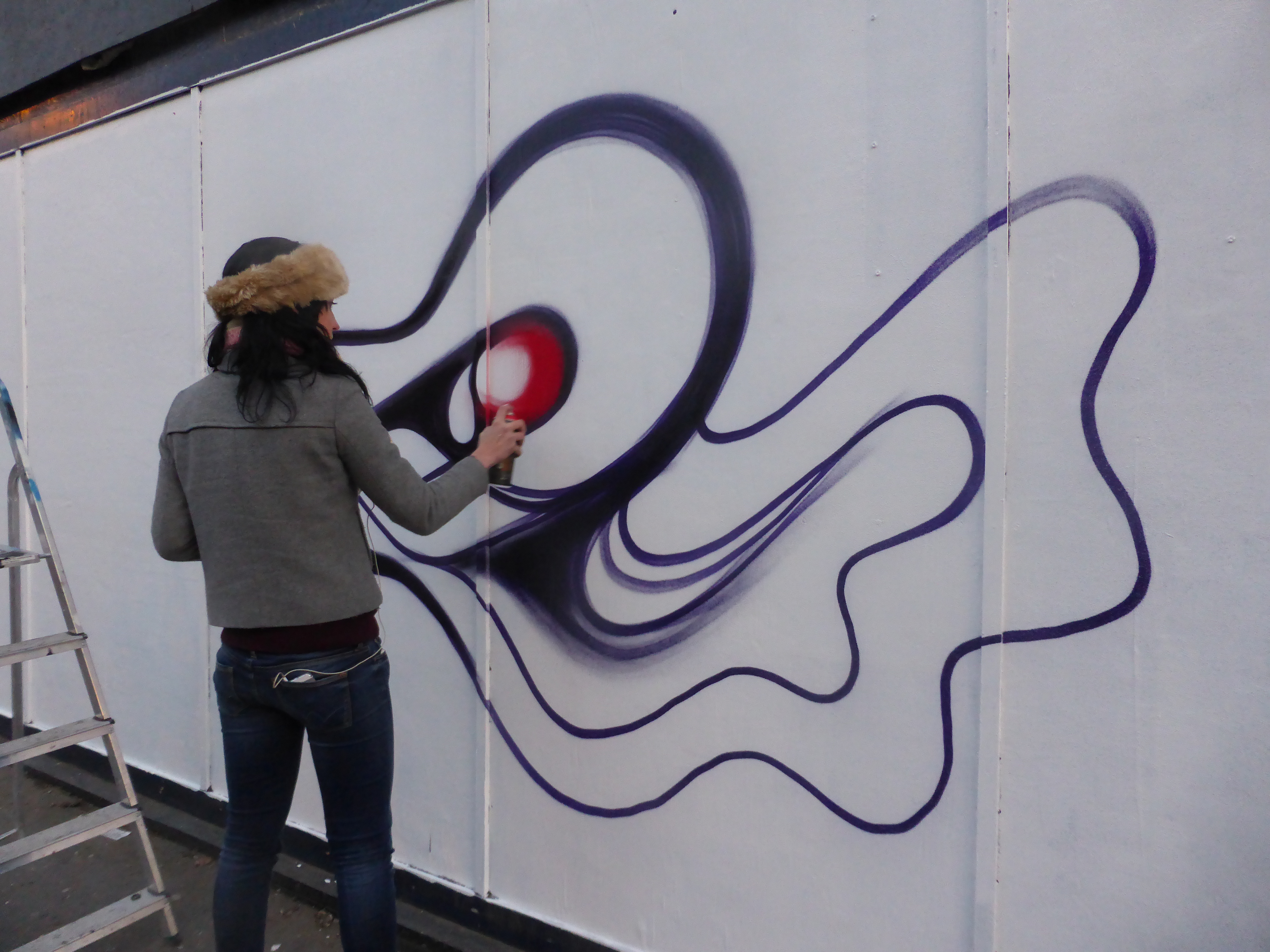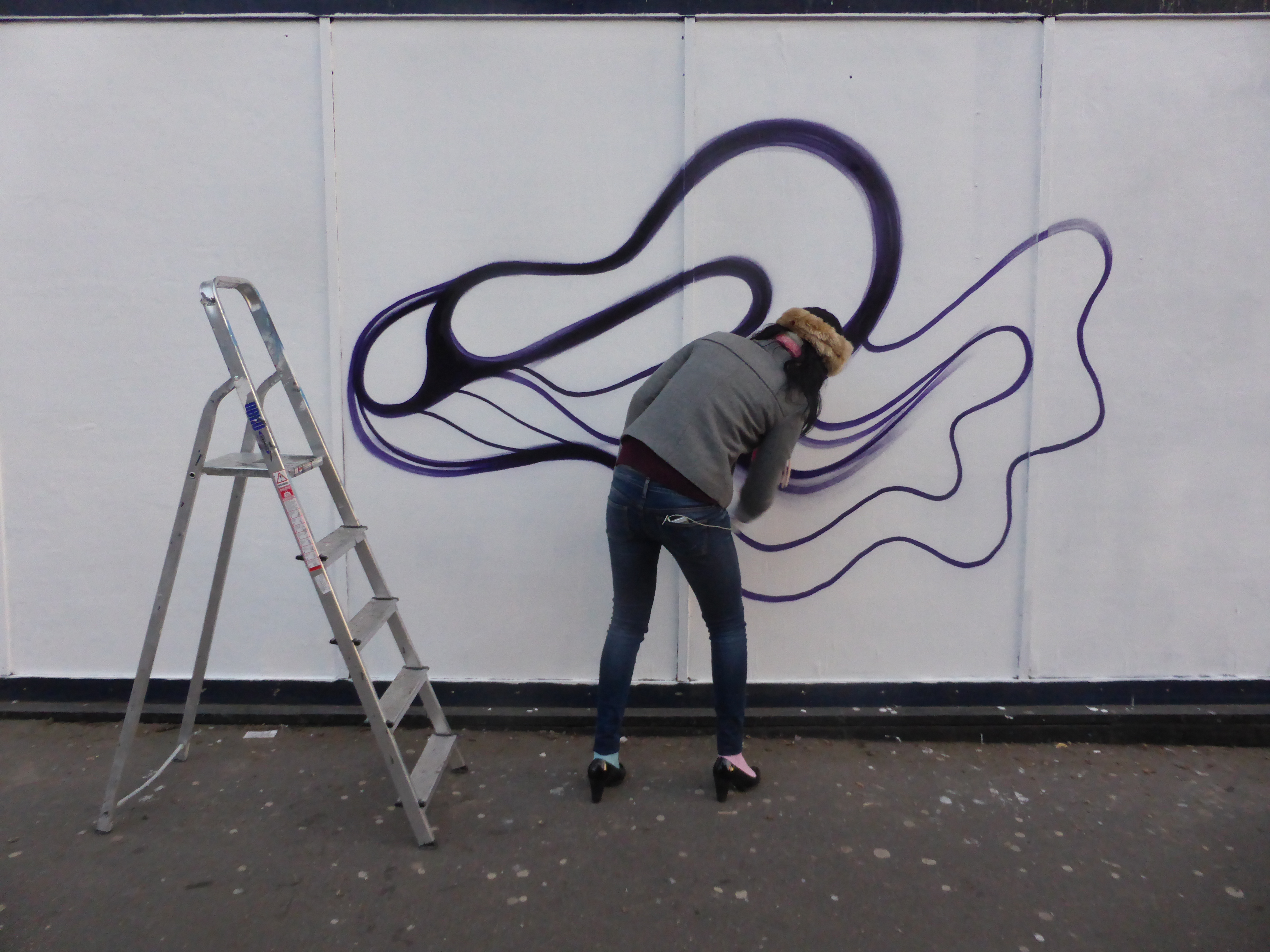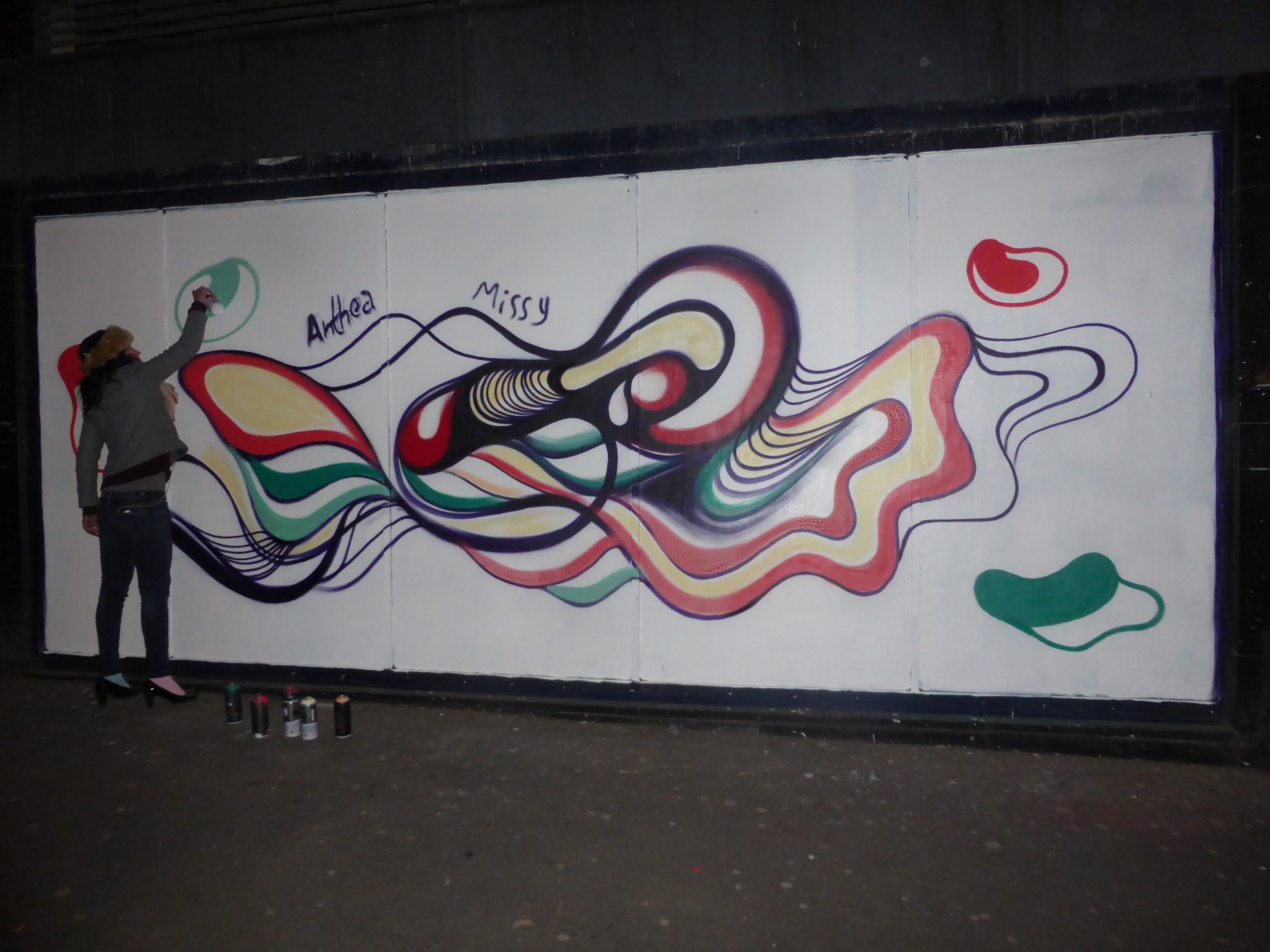 Last night Anthea Missy returned to Croydon’s Arts Quarter to replace a piece of hers that was lost earlier in the week to vandalism. Anthea was kind enough to invite us along to see her paint on Park Street and it made for a superb Friday night, being able to watch an artist work their magic through the whole process.