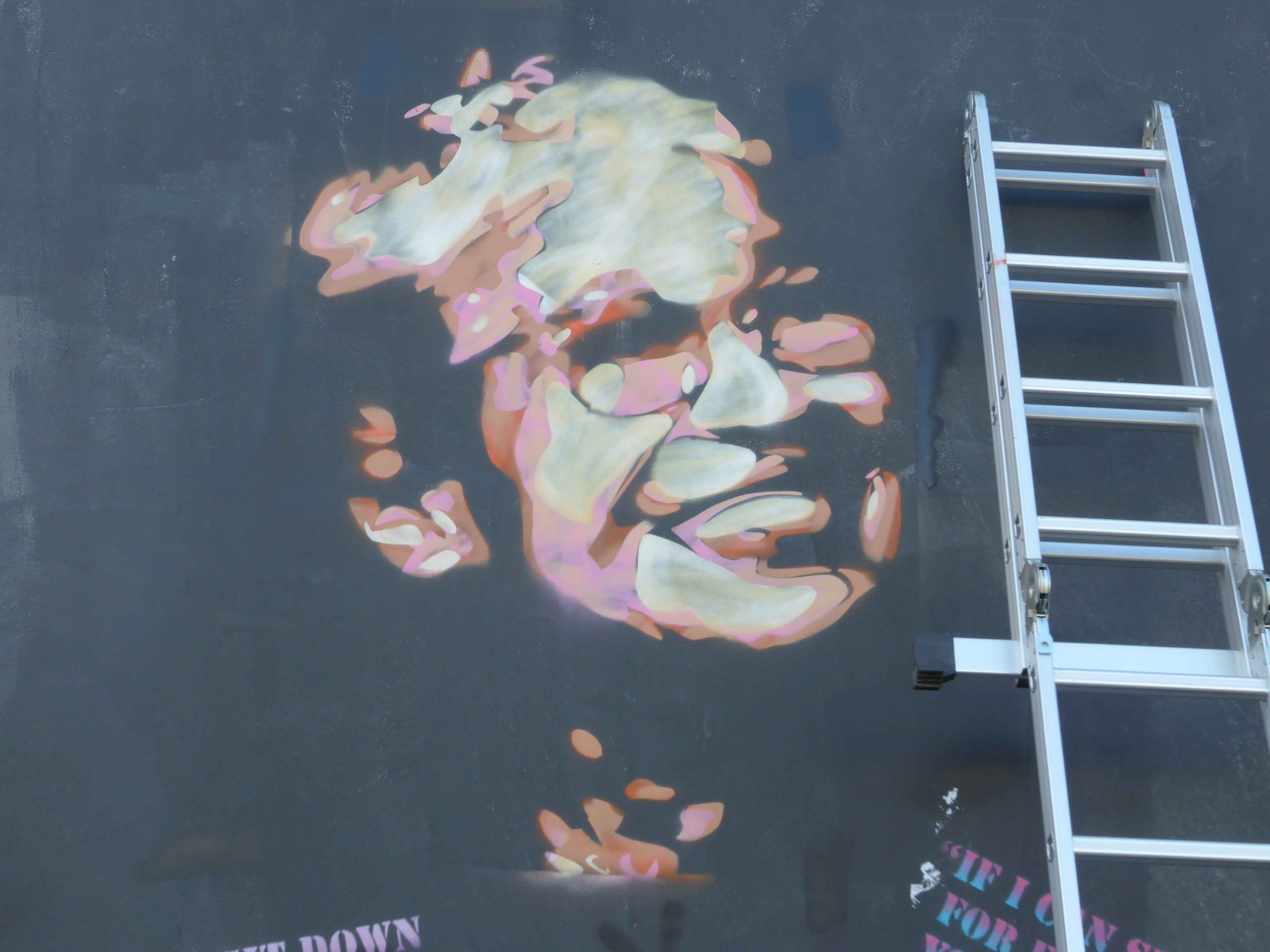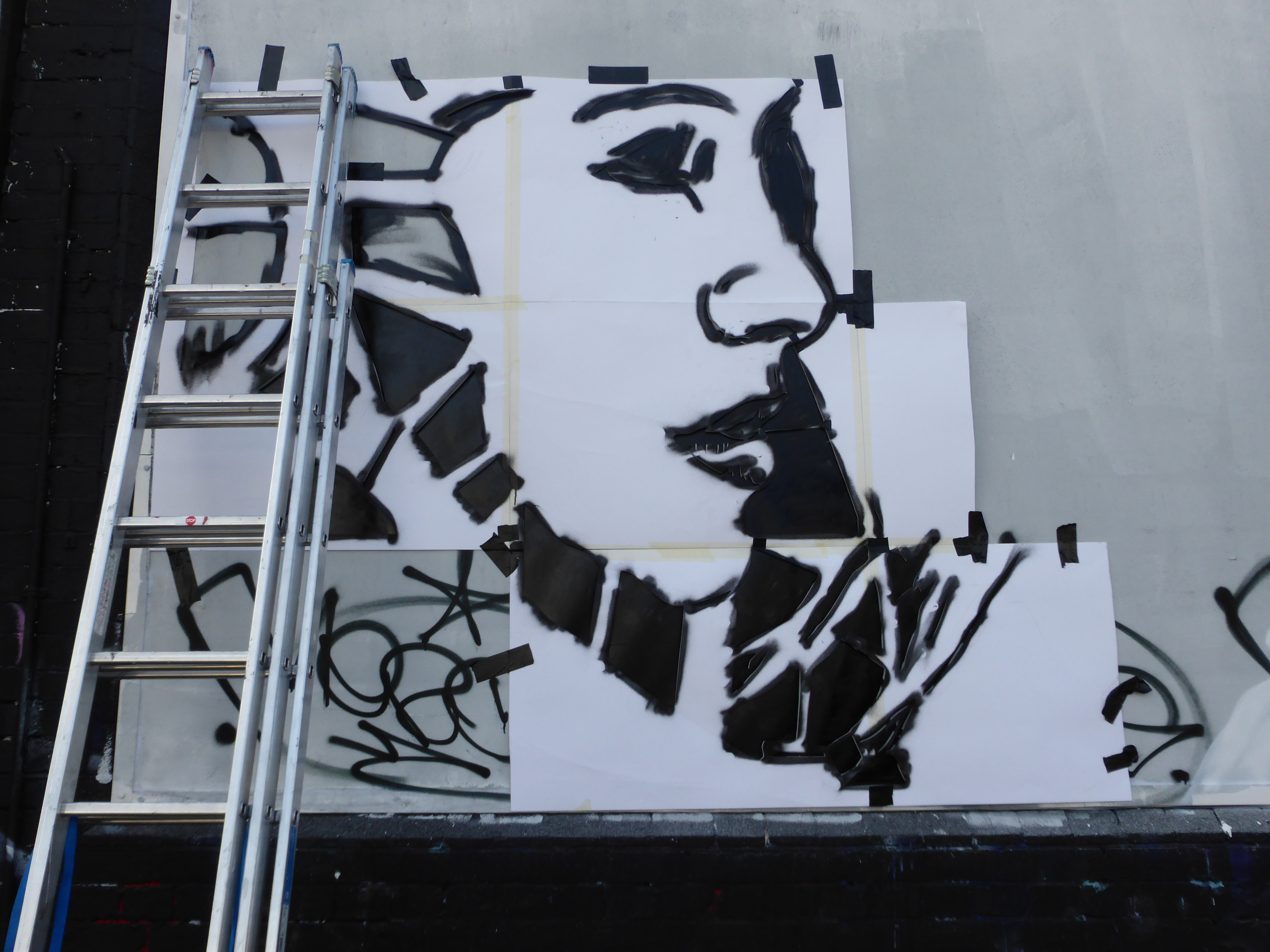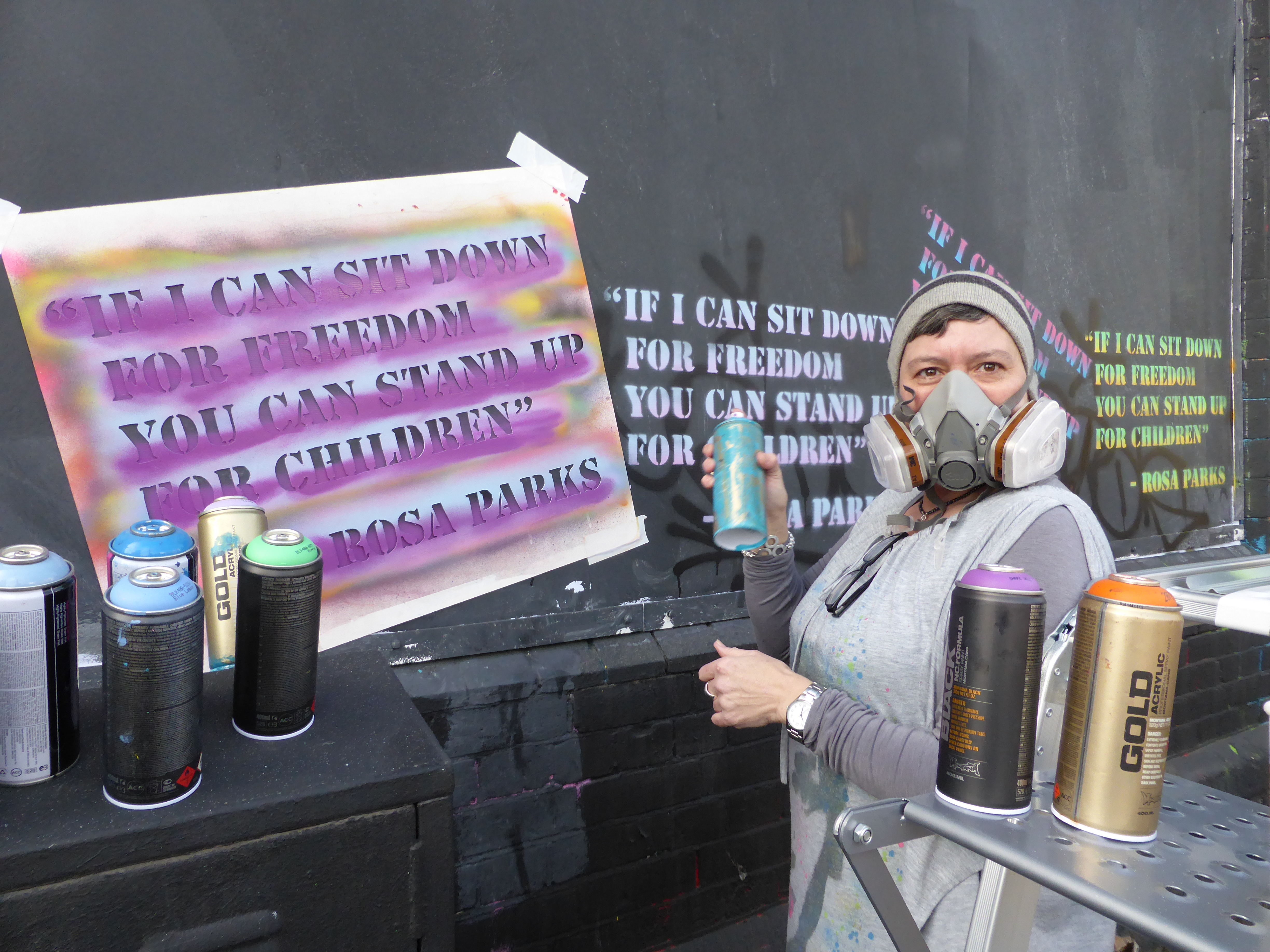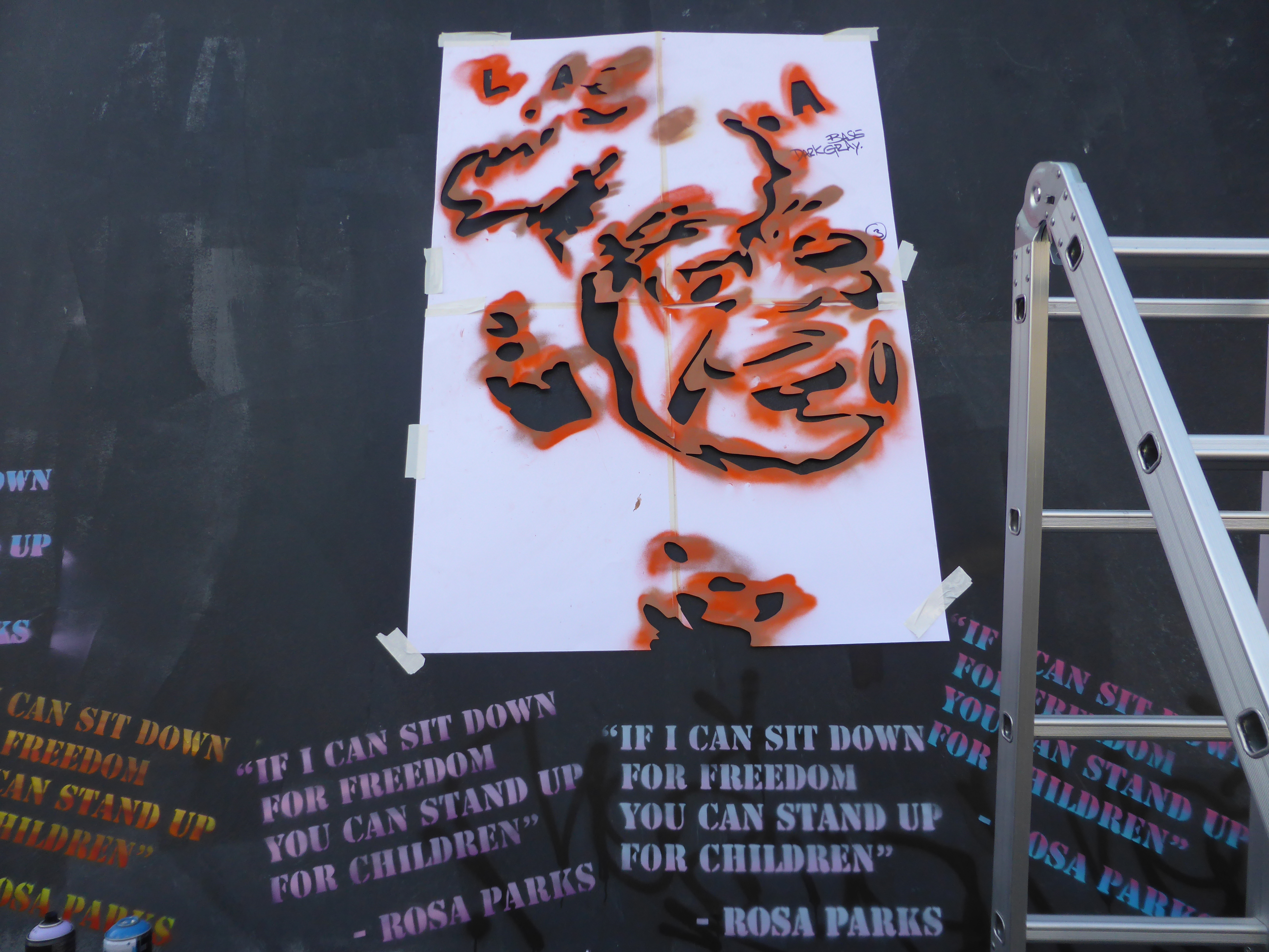 Lisarts first stencil layer to her fitting tribute to Rosa Parks.