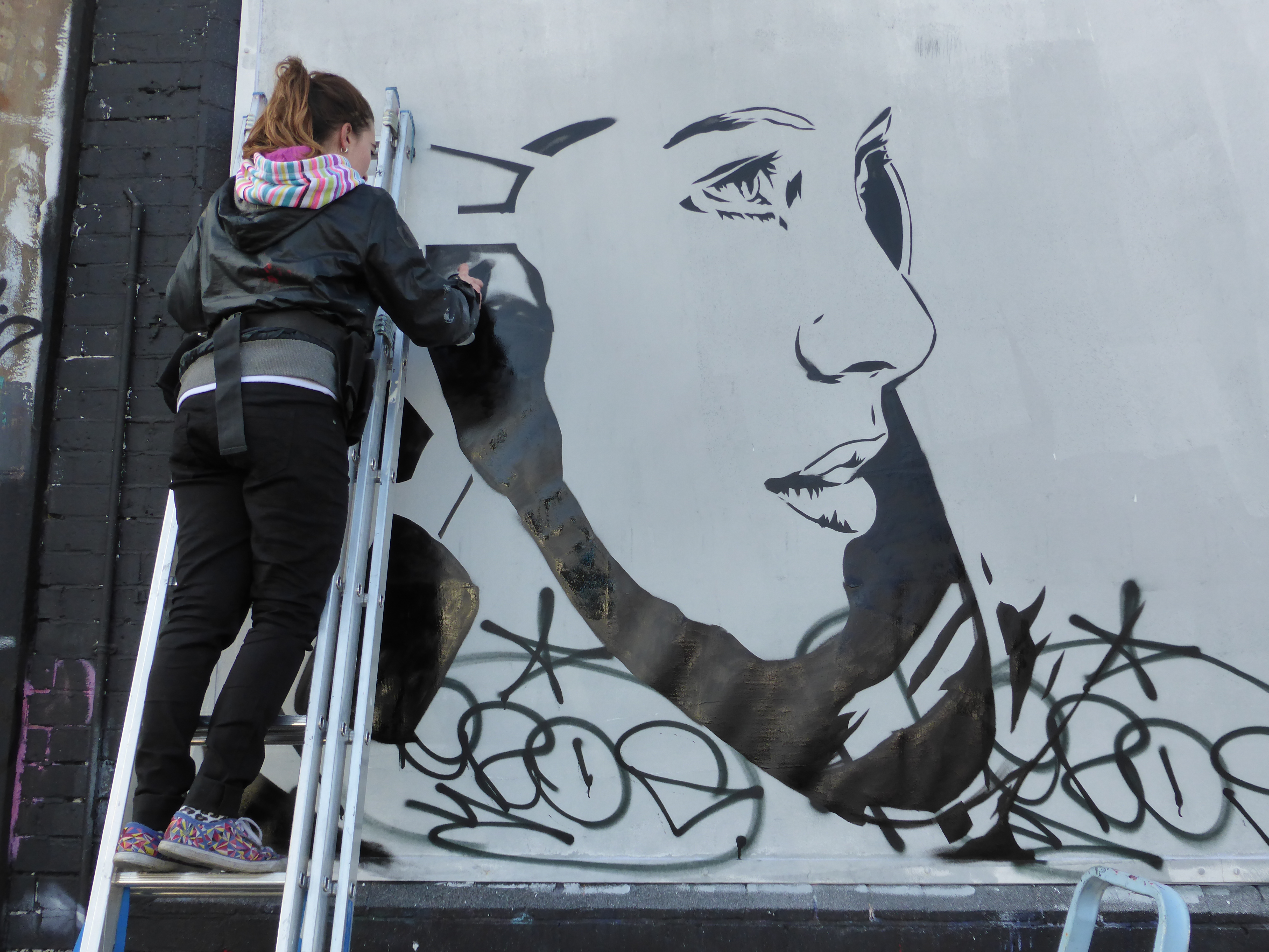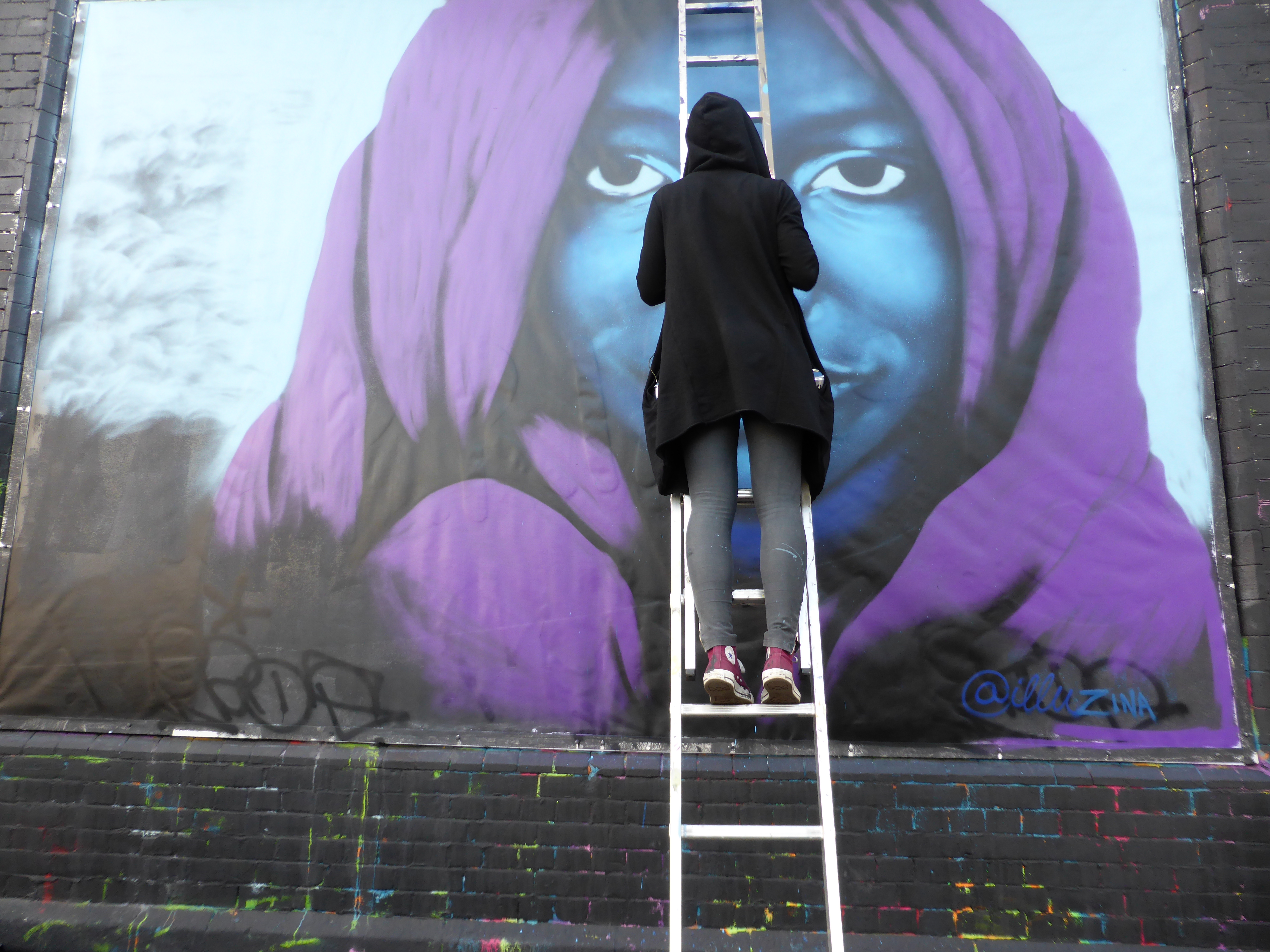 Zina working on the portrait. You can’t see it, but I assure you she was dancing away on that ladder whilst working, very happy with her time.