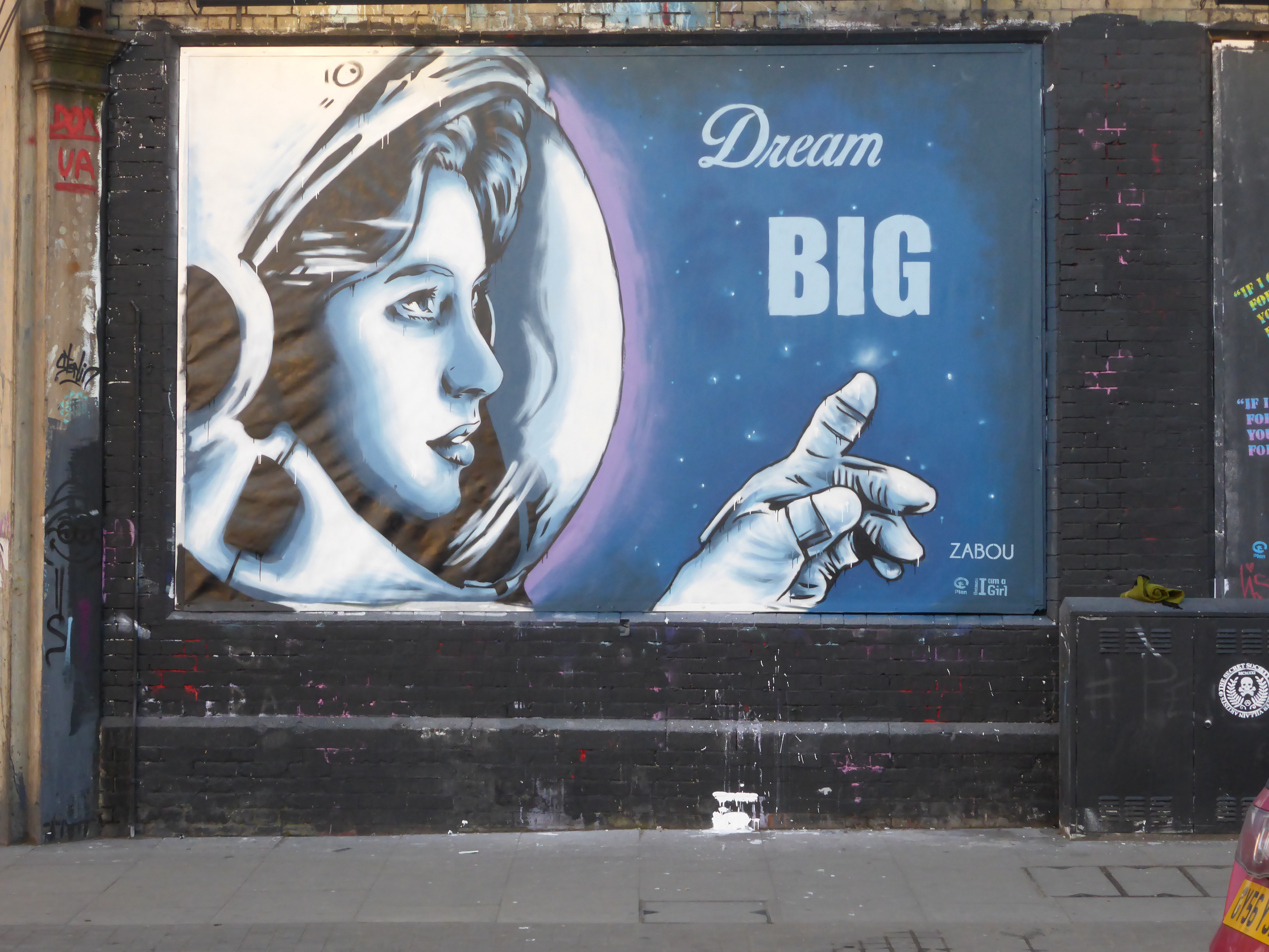 Zabou’s finished piece, which is her largest wall to date in London, posed a message of no matter how large the challenges ahead, you sometimes just have to “Dream Big”. Fantastic message and fantastic work Zabou. A Pleasure to witness.