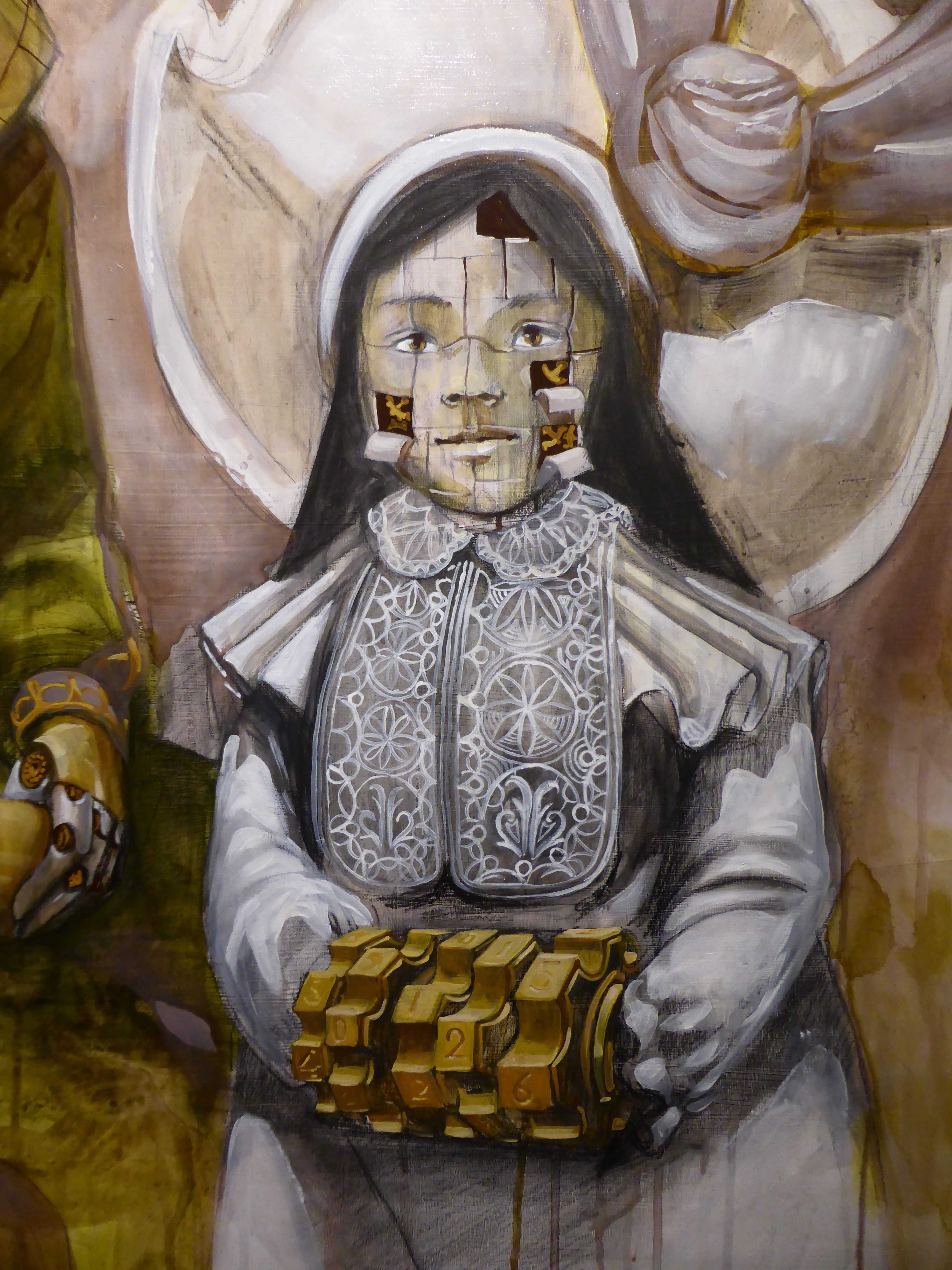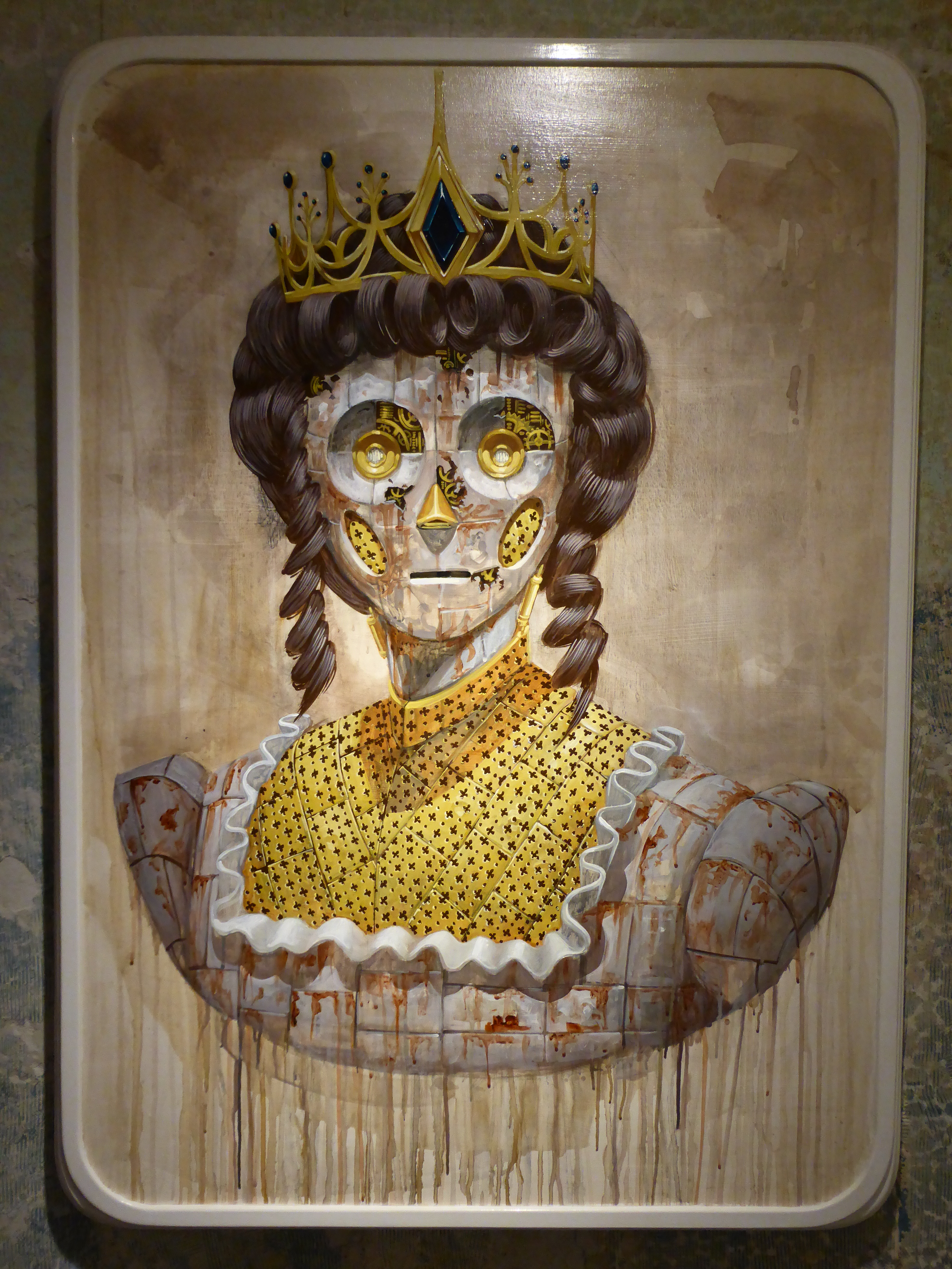 ‘Robot Save The Queen’ – Acrylic & Pencil on Wood Panel.