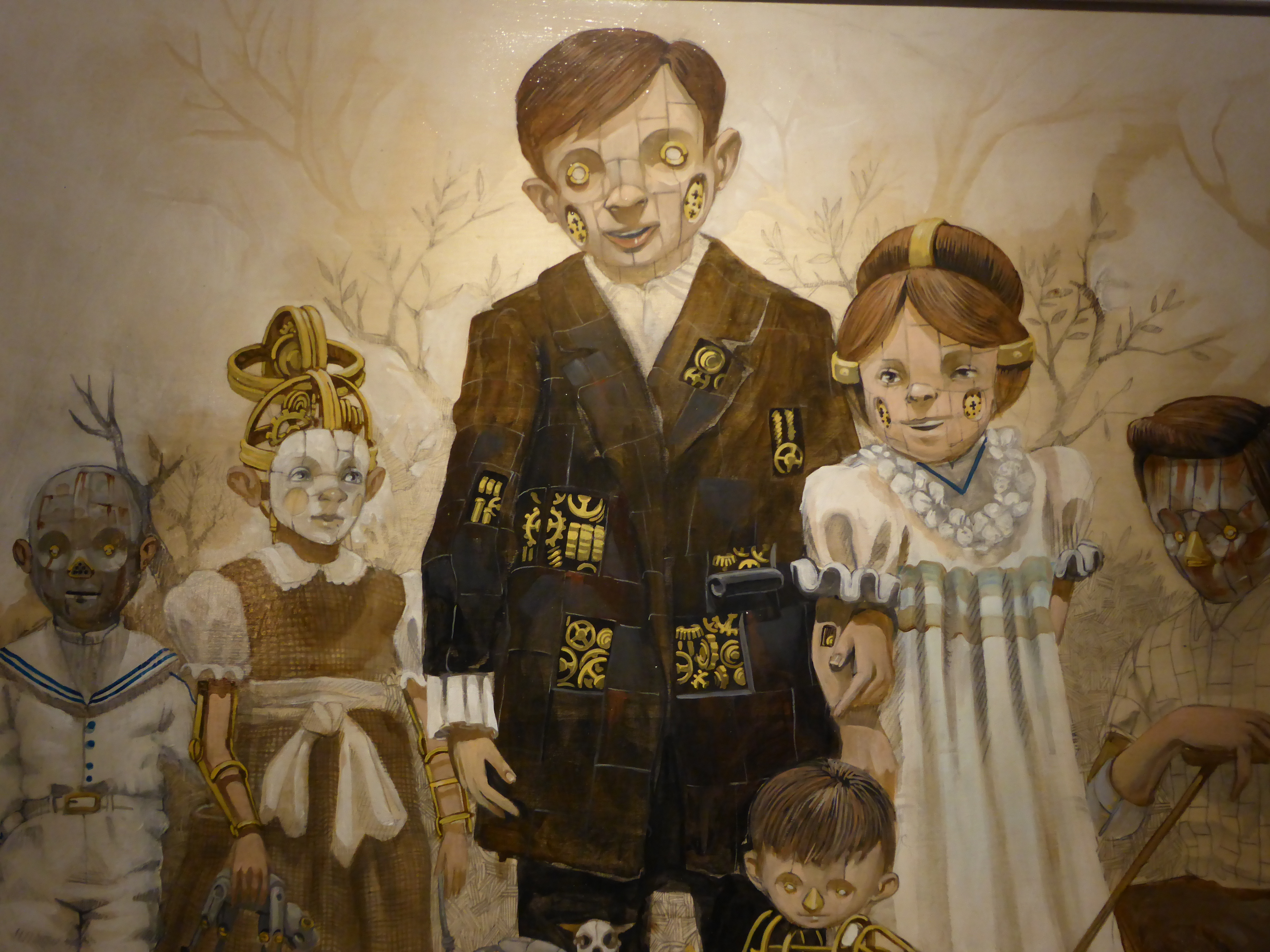 1. Really interesting review of the works. I found the exhibition really inspiring : blurring the lines between mechanical and organic, the soft doll like characters in his work adds warmth to the mechanical features. Love it.