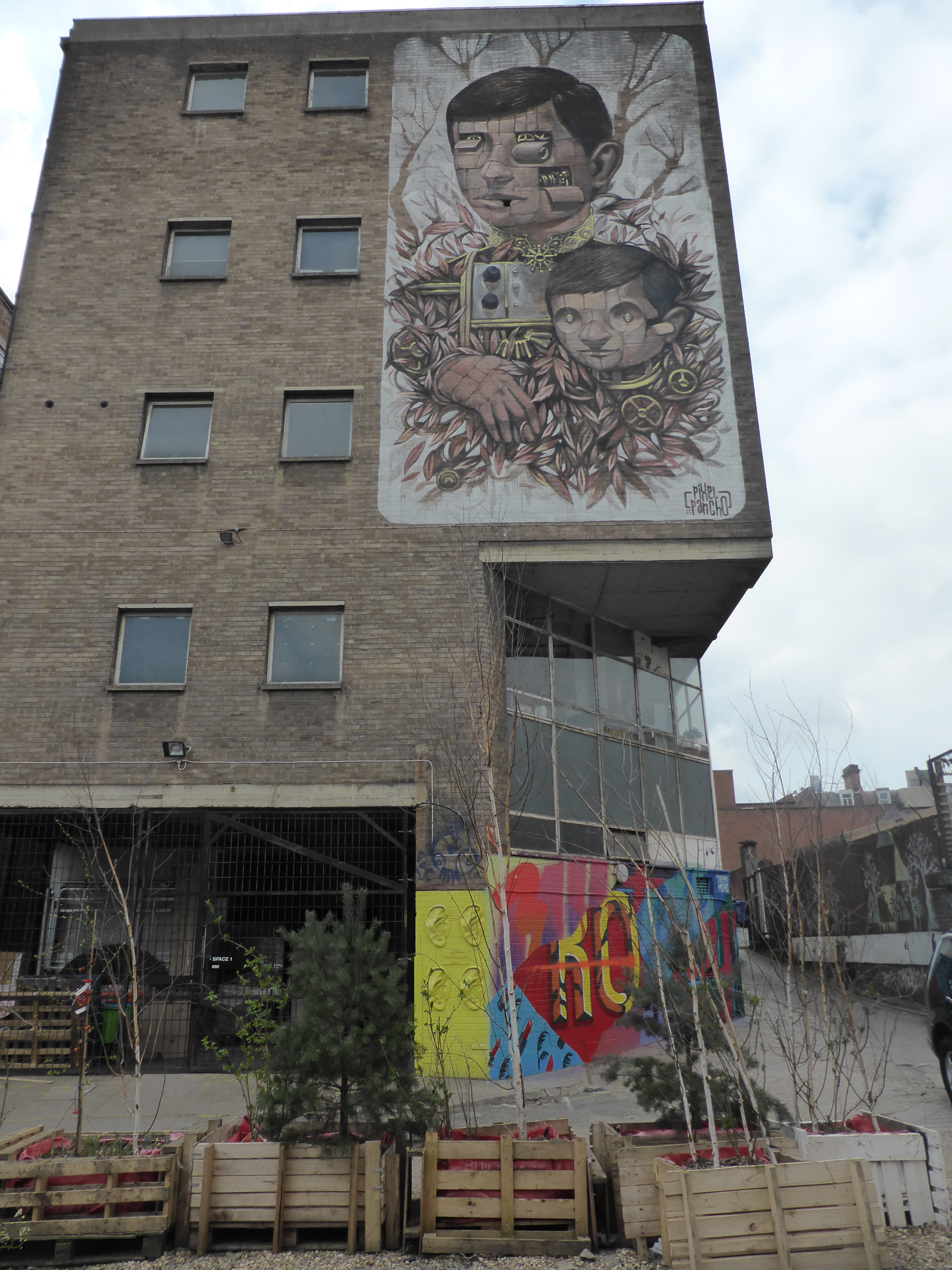 This spectacular work is in Dalston, in Abbot Street, and it is just incredible. Once having seen his work in the exhibition, this is so instantaneously recognizable as his work, through the subject and style. Tucked away and out of immediate sight, it may take you a while to locate this piece, but it really is worth the effort, absolutely stunning to witness, one of the best pieces of street art in London we have seen for some time. P1110842