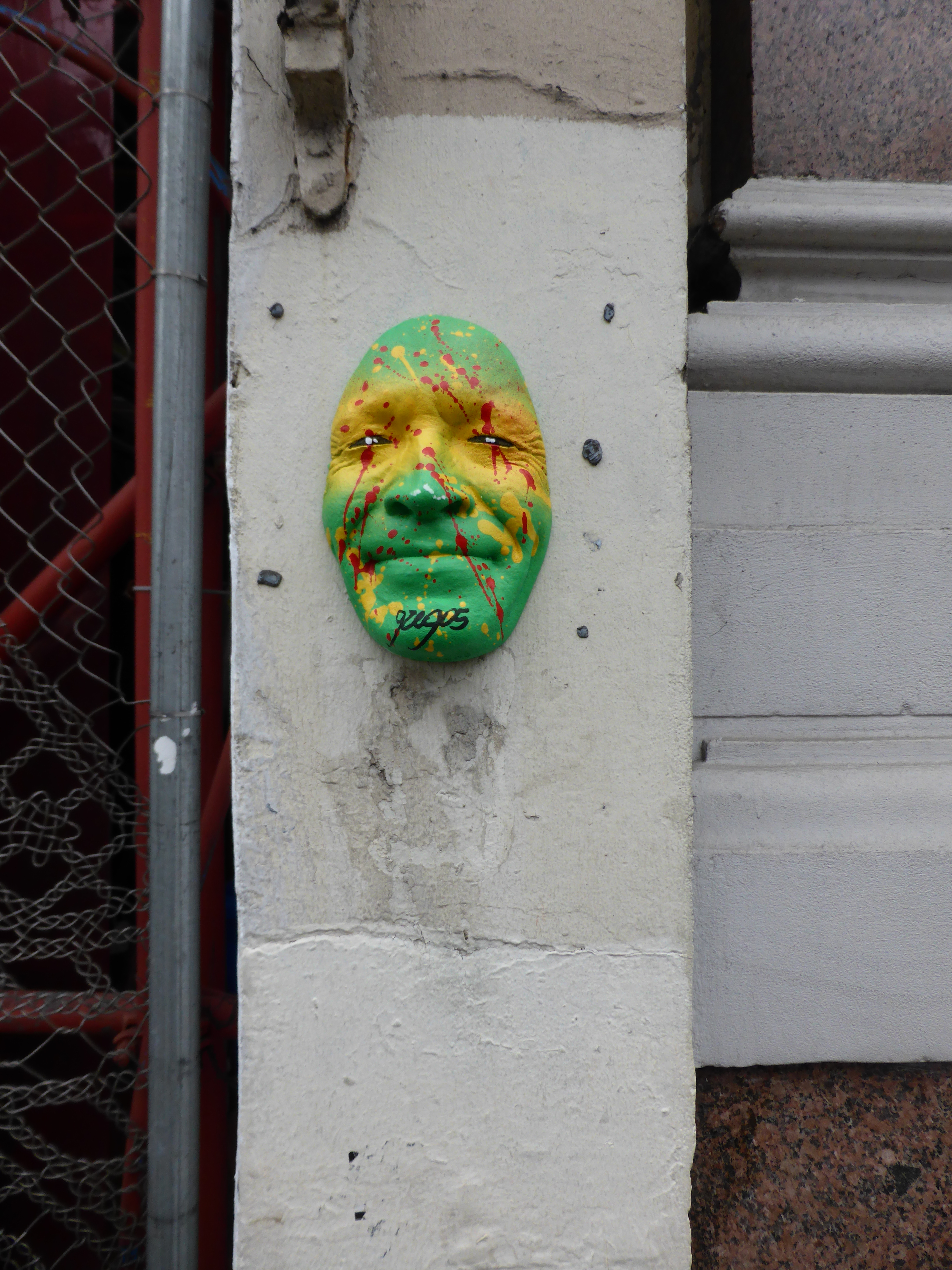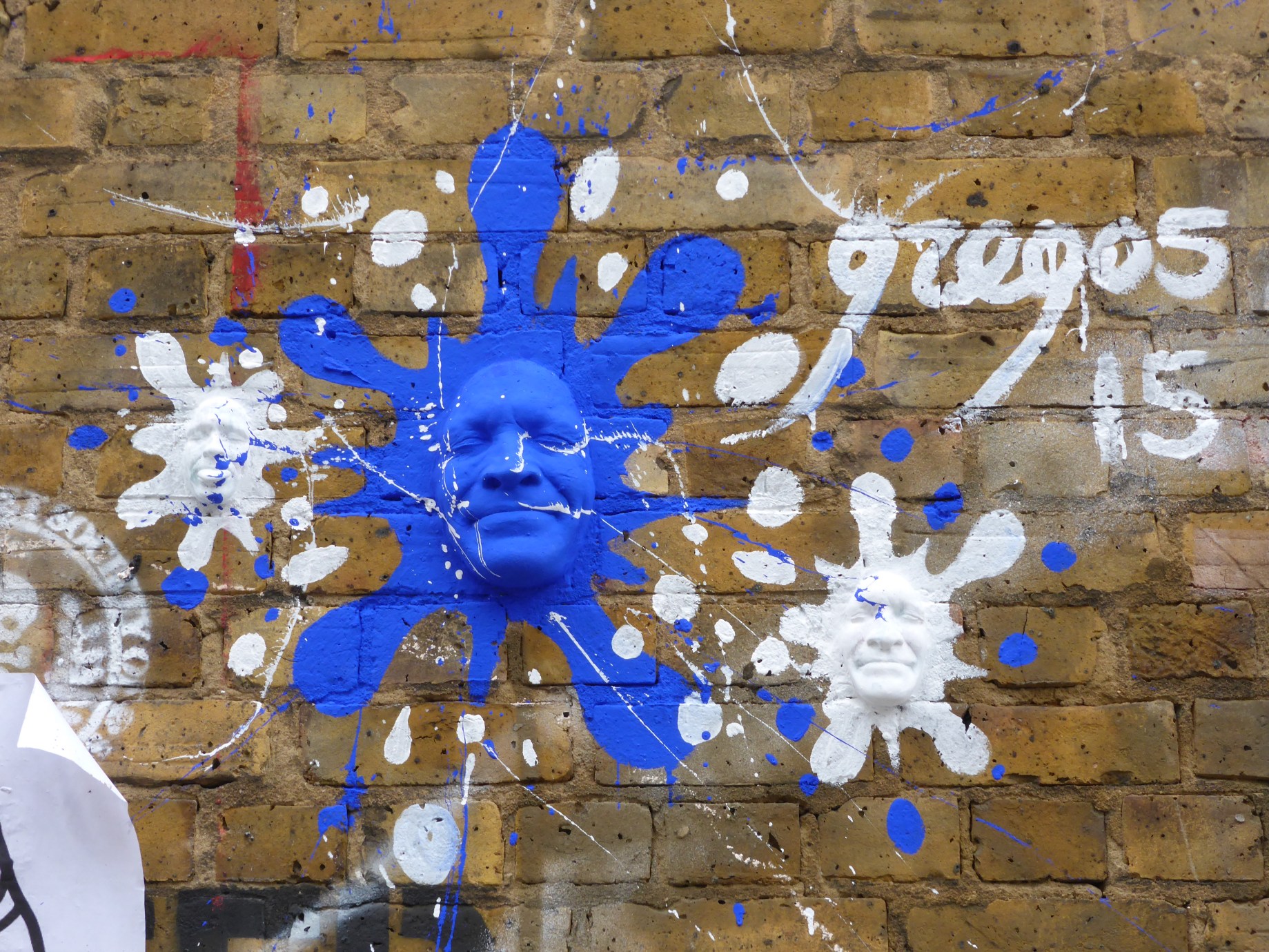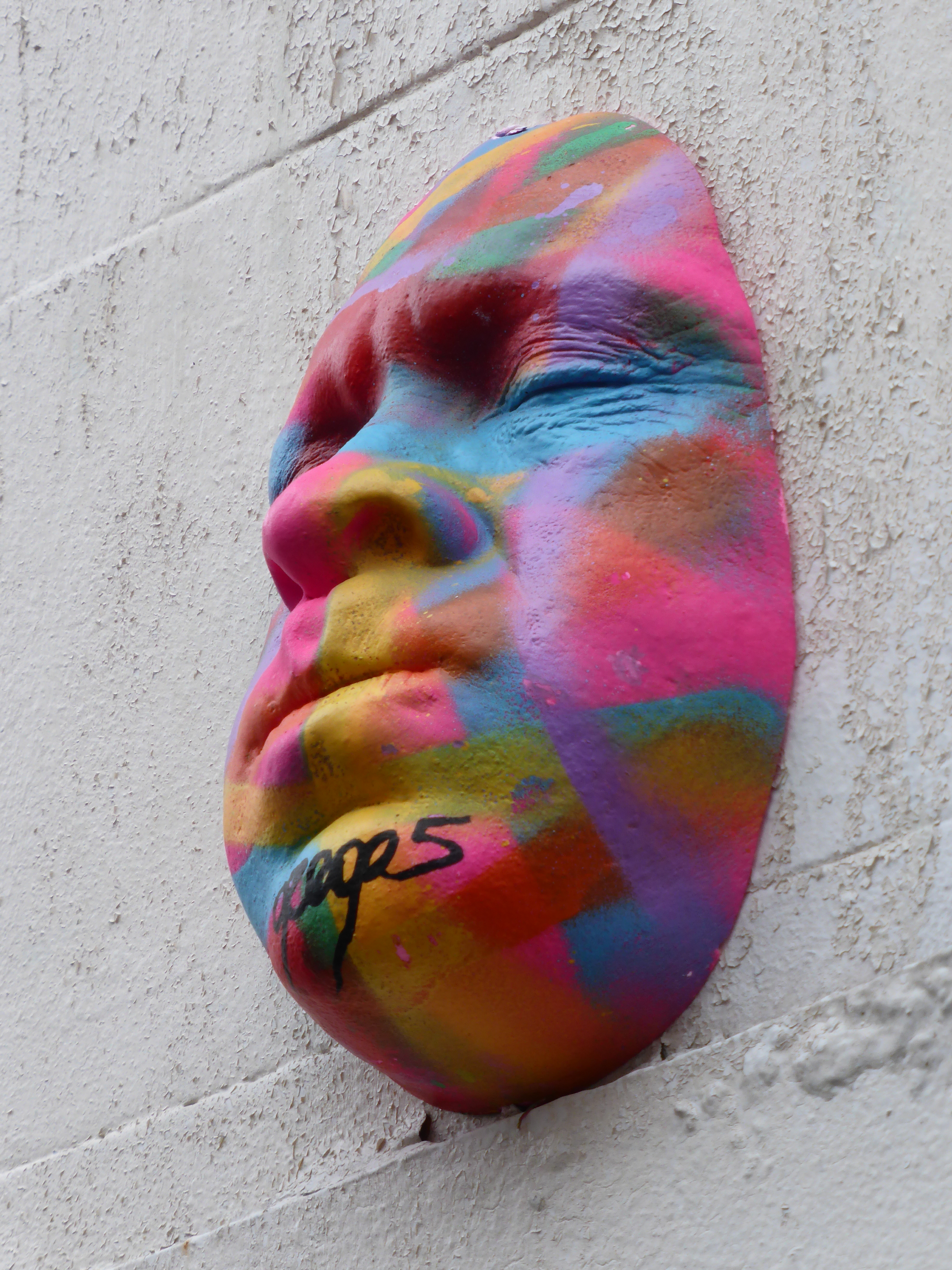 Over the weekend French installation street artist Gregos arrived in London and hit up a relentless stream of his trademark painted faces, totaling 50 thus far. On our last two days out over the weekend, we have found fifteen of them around the East End and Camden Town. So we thought we would share some of the many faces of Gregos.