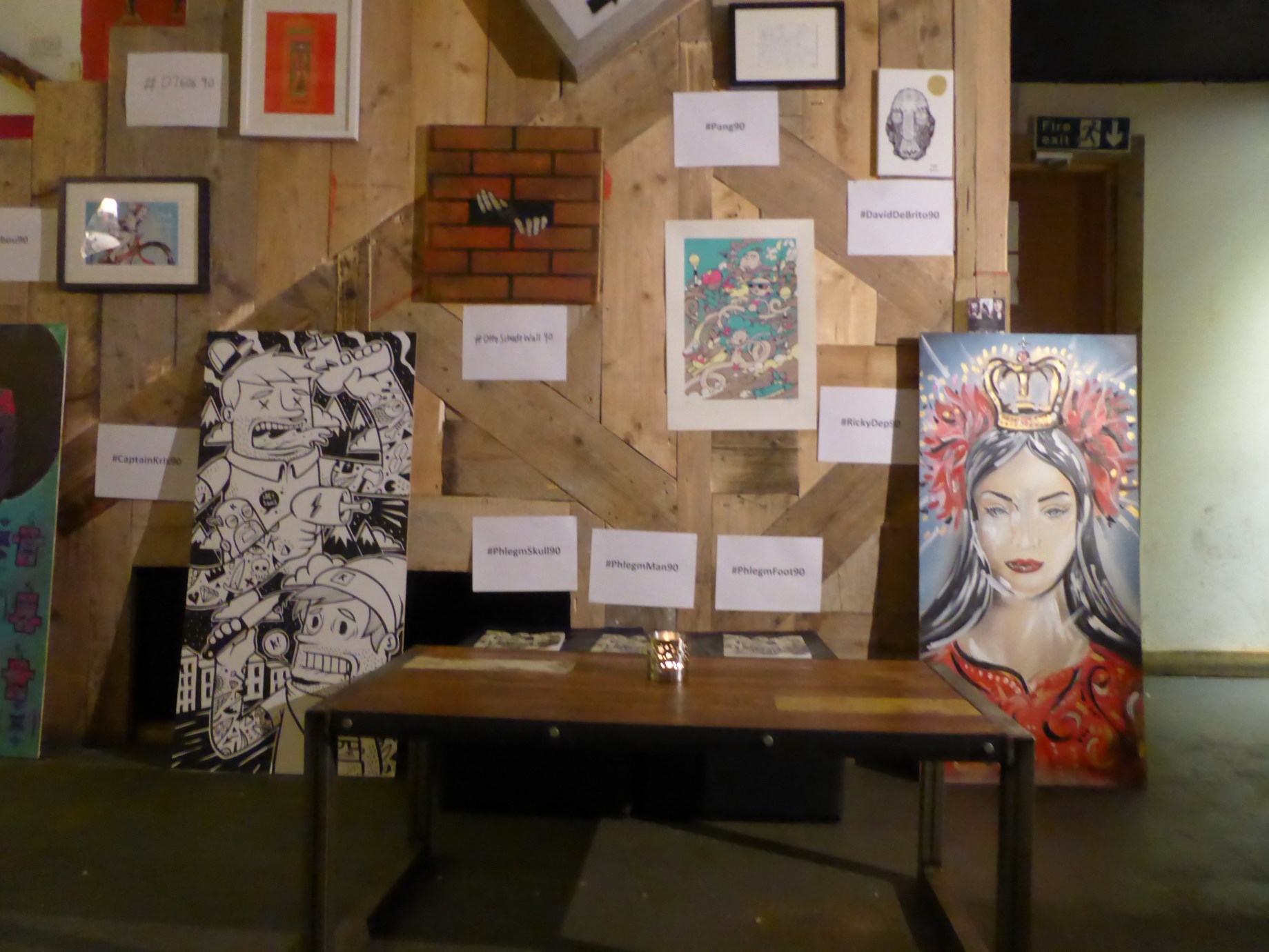 Yesterday in Hackney Wick at the Number 90 bar in Hackney Wick a day of live Street Art, music and a silent auction comprising works donated by generous London based street artists, all to raise money for the charity Parkinson’s UK took place. A great event was laid on with a superb collection of works donated by street artists for the cause, available to bid on via an online silent auction. In addition to this there was also a series of boards being painted live throughout the afternoon and evening. Event organizer Tom Paul Maya will also be running the marathon for his uncle who past away last year to Parkinson’s. In all it was an incredible event, comprising of a beautiful and friendly atmosphere in a lovely location along the canal. The were plenty of people in attendance throughout the event and as the minutes drew in to the end of the auction, one could sense the excitement and tension as an eager crowd attempted to win the work of their choice. Whether people were lucky or not to get the work they wanted, we think its fair to say that a great day was had by all their. A great day for a great cause. Here are but a few of the works on offer in the silent auction.