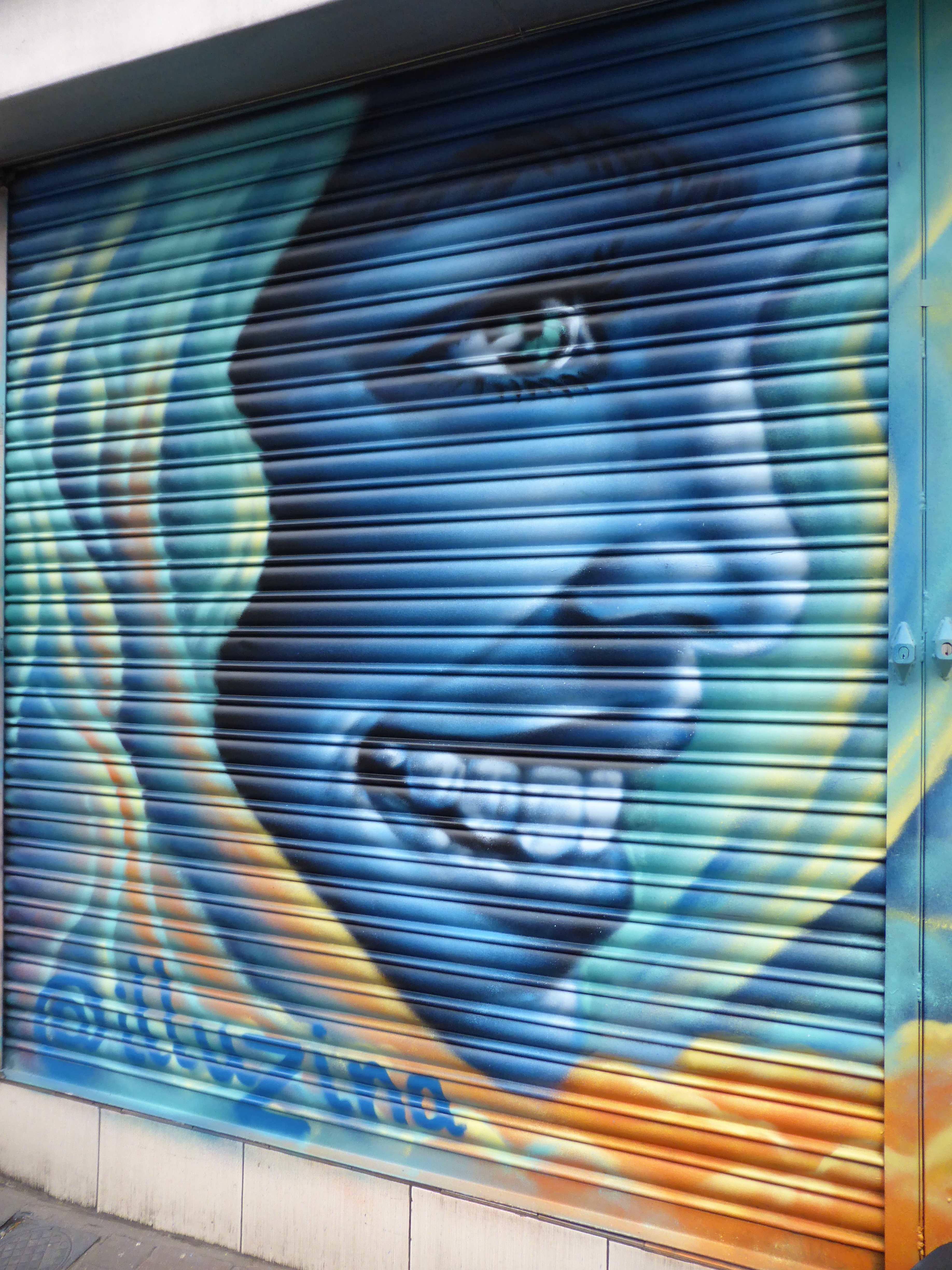 Heading down to Bethnal Green along Cambridge Heath Road, we stumbled across Zina working away yet again. She has certainly been proactive of late and we are not complaining, here working on a shutter organised by the Hidden Streets Of London.