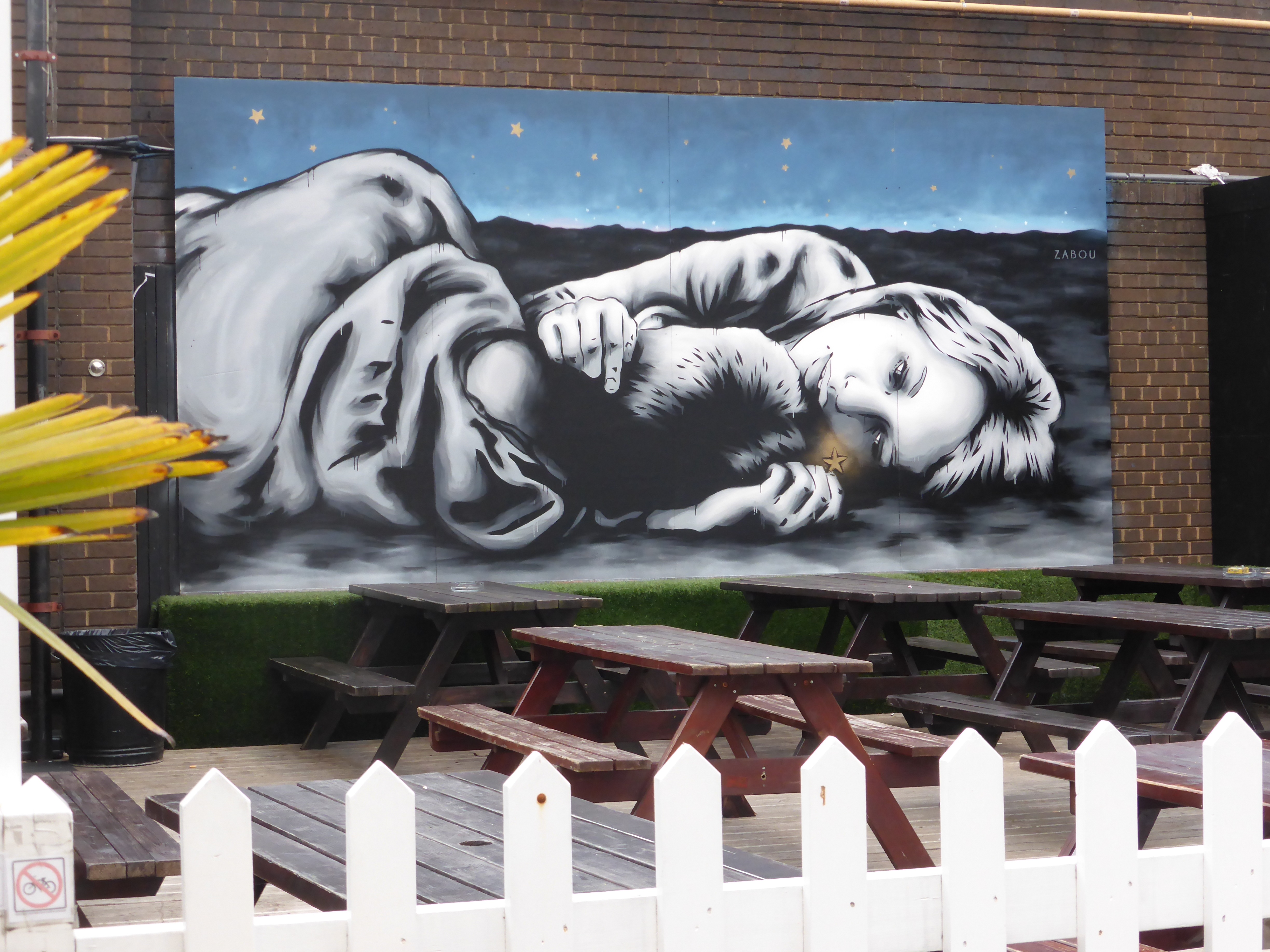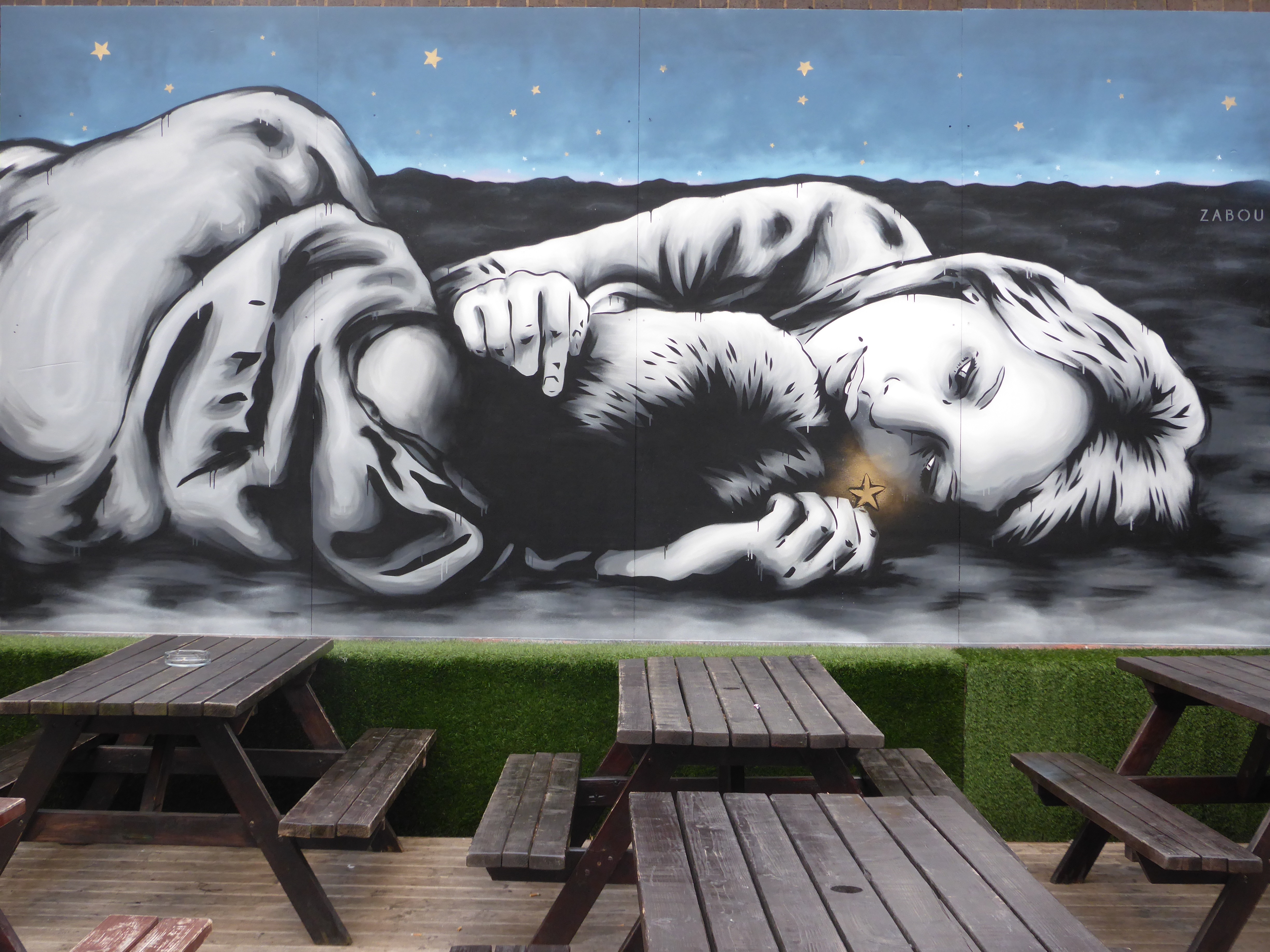 Work entitled “Summertime (yay!)” in Broadway Market. This piece was inspired by “the ‘amazing’ weather” in England. Great work and you can tell Zabou has been living here long enough to lay out such a fundamentally British themed work. Superb.