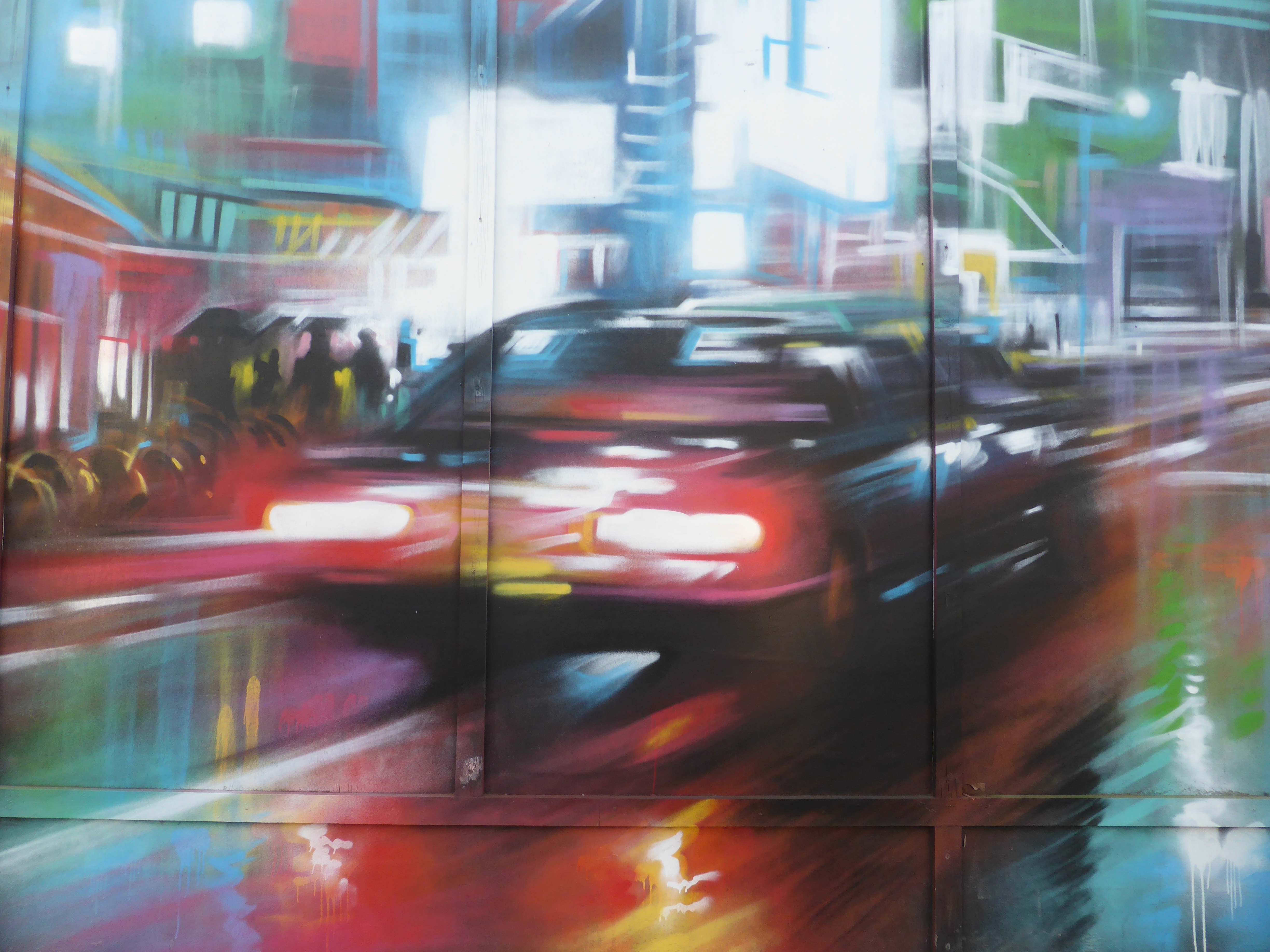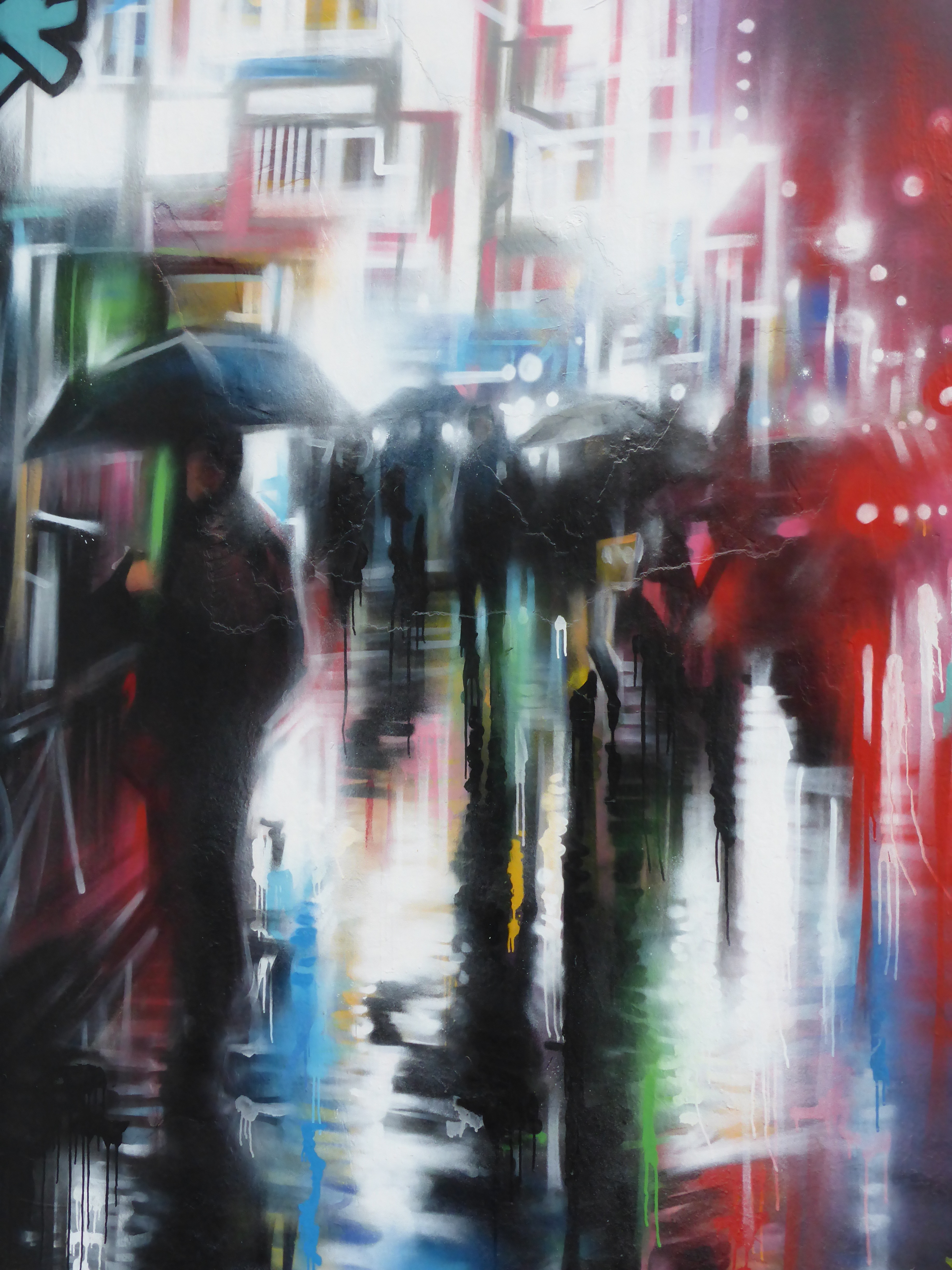 Work on Curtain Road, Shoreditch. This is the smallest work by Dank we have thus far seen, but that doesn’t make it any less impressive. His ‘Liquid Lights’ works never cease to amaze and capture our attention upon viewing.