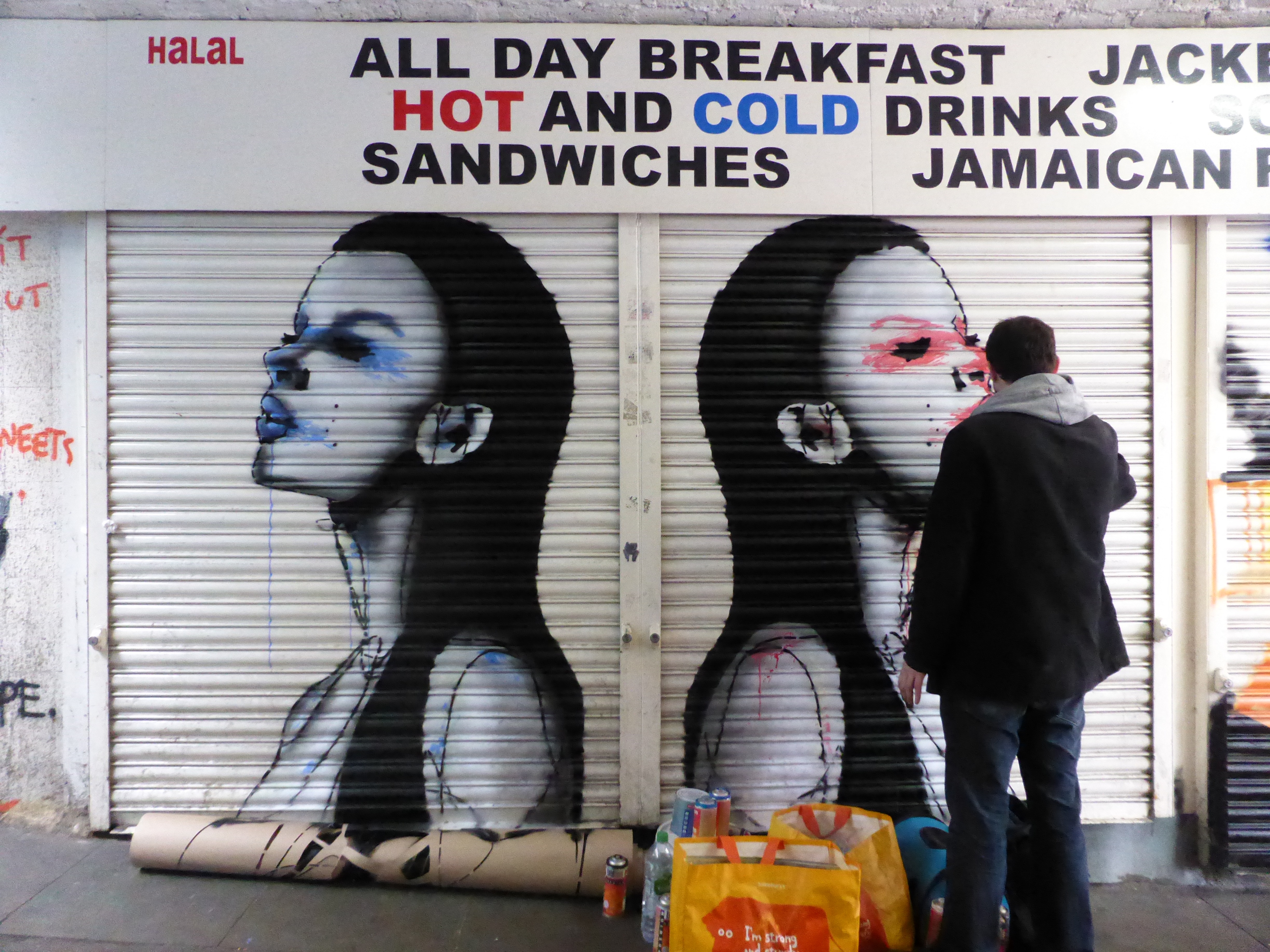 Yesterday in Brixton the latest installments of Street Art for the #SaveBrixtonArches campaign were put up during a second mini paint jam with seven artists out painting a further respective seven of the 40 or so shutters to be completed. Bringing the current total of shutters painted to ten and its only fair to say that in terms of Street Art, Atlantic Road and Brixton Station Road, spanning the Brixton Arches are rapidly becoming an incredible outdoor gallery dedicated to one worthy cause. The crux of the situation is that Network Rail intend to evict the current tenants of the shops along the railway arches spanning Station Road and Atlantic Road, in the name of redevelopments and make the new rates of rent so high, that it will be impossible for this community of non-chain store outlets to survive and continue from these spots in the future.