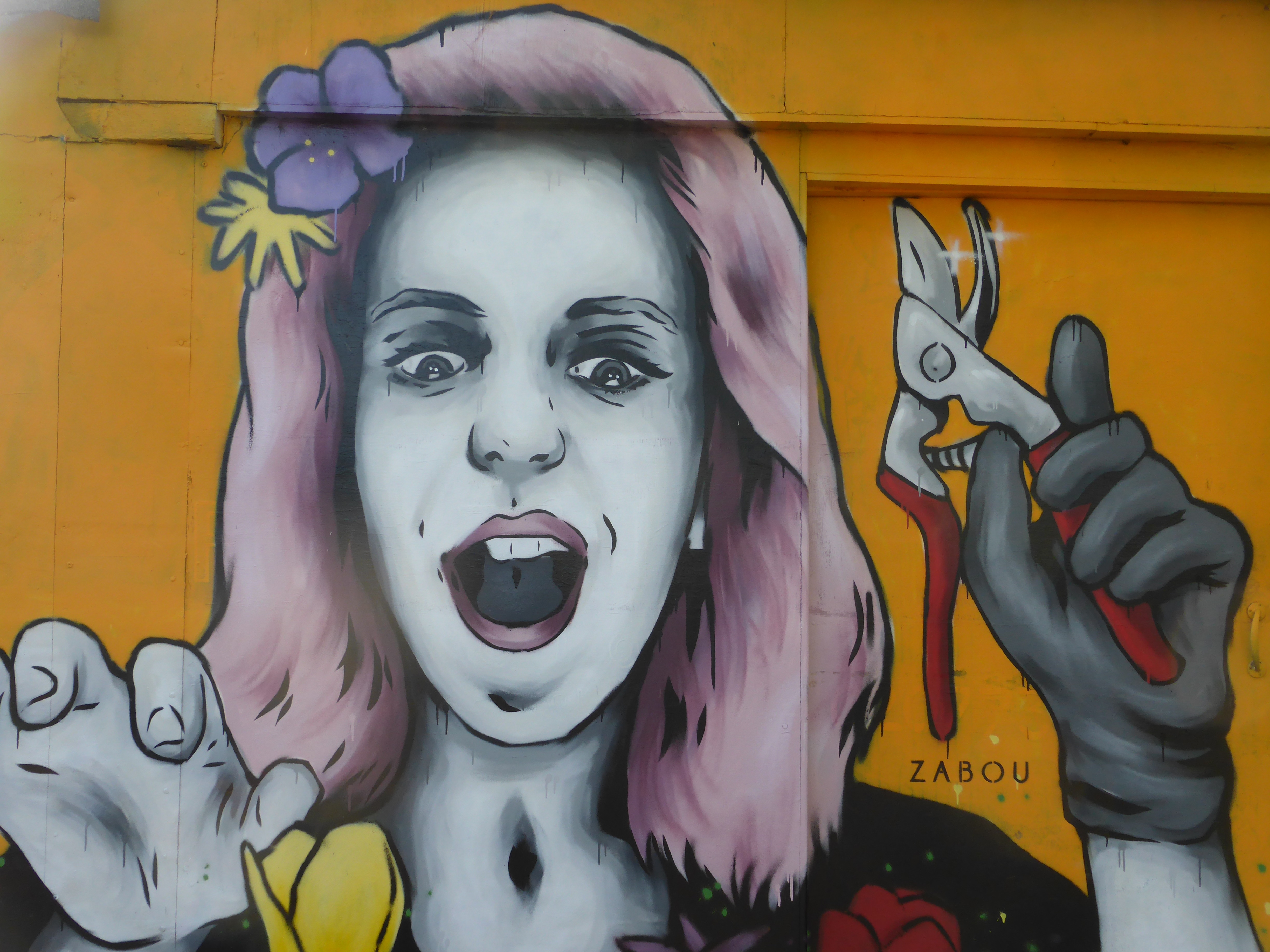 This last Sunday prolific Stencil based Street Artist Zabou was at work yet again on the streets of London, this time in honour of the Columbia Road flower market, an institute in the East End of London and is fittingly entitled ‘Flower Frenzy’. As Zabou continues her self-appointed mission to brighten up the East End of London, we get to enjoy the efforts of her works and bring you her latest addition to the area.