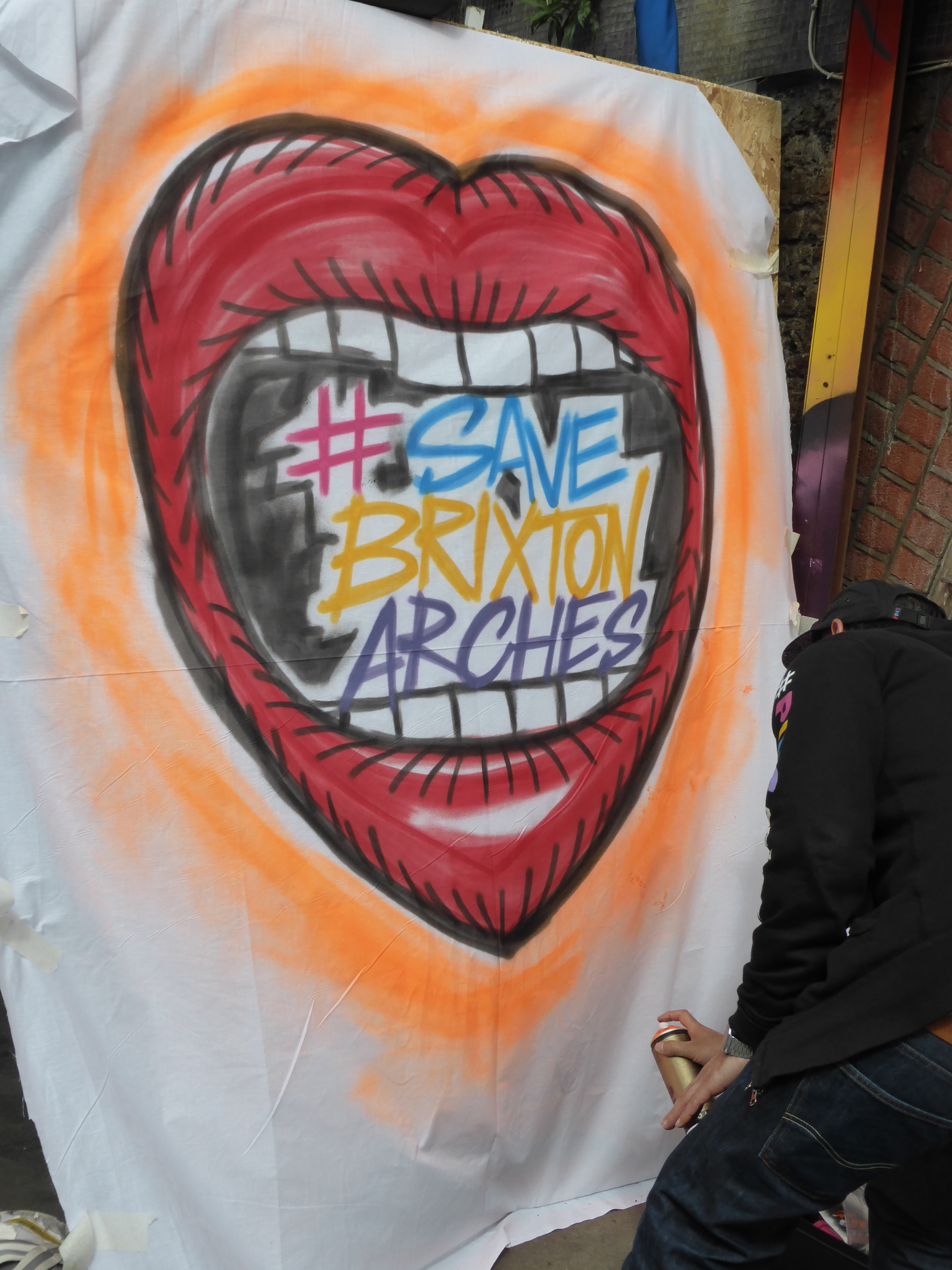 There was certainly a strong sense of unity permeating the air around the Brixton Arches yesterday and it was an incredible job the artists did in such a limited time frame, a pleasure to witness the newest additions to the Save Brixton Arches Street Art. Also you can view our recent posts on the Save Brixton Arches Street Art here with: