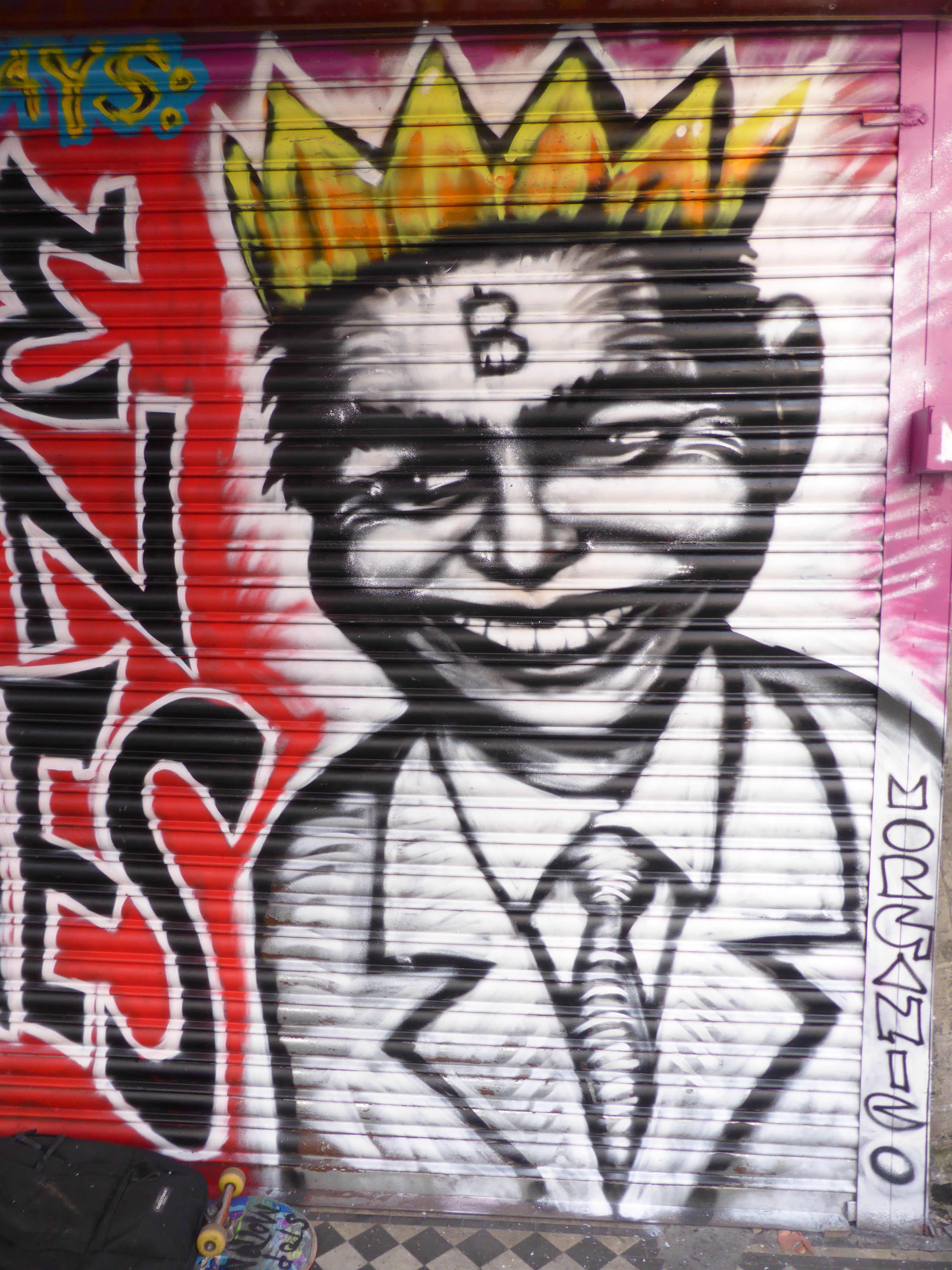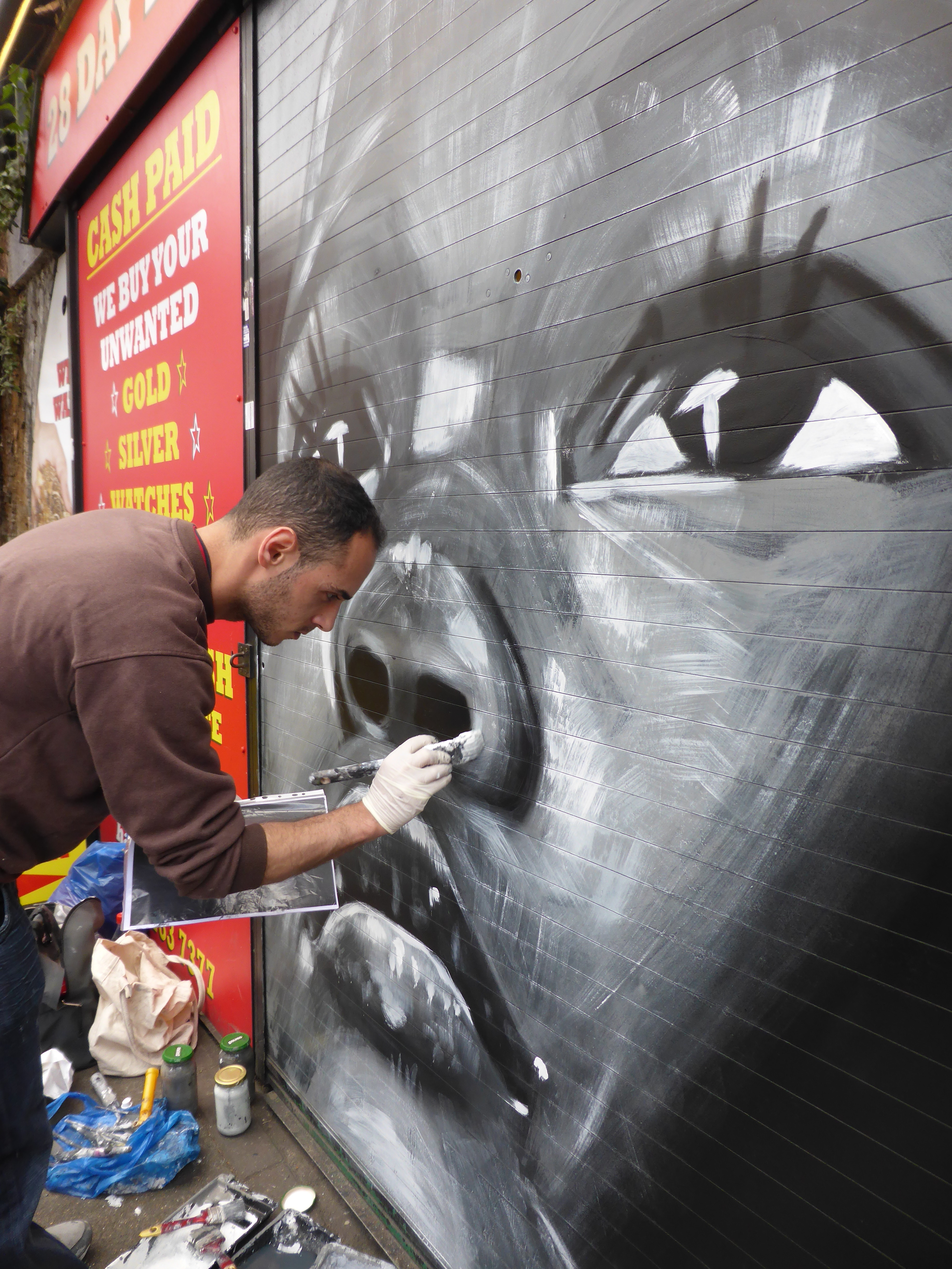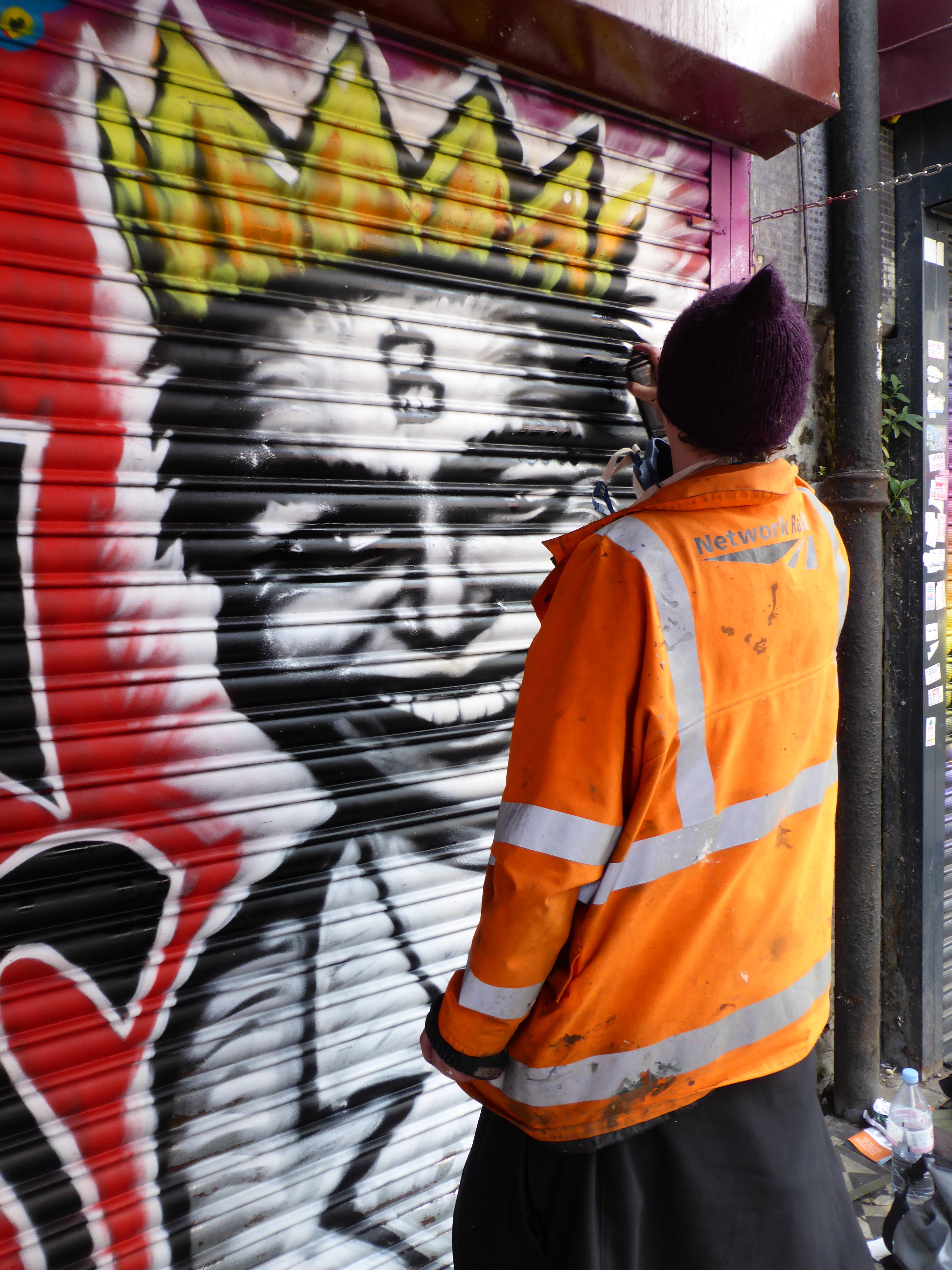 In conjunction with this, the latest installemt of Street Art additions were laid out In this narrow time frame, in which there were eight of London’s resident Street Artists down with six shutters and one set of boarding to be painted in the process. The artists had a mere two hours to lay out their work, it was very much Get Set and GO. But this didn’t thwart the artists in question one bit, each contributor stepped up and worked their magic, leaving a fine set of further additions to the incredible Street Art gallery that is emerging along the Brixton Arches, all to show both Network Rail and Lambeth Council that their plans do not have the consent of the community,