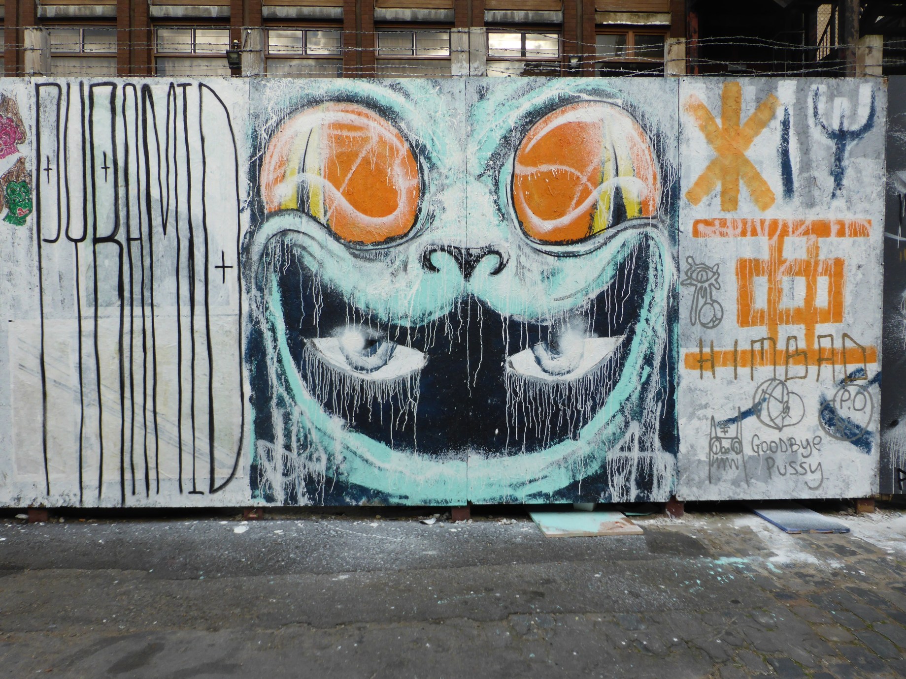 Over the last week or so Street Artist Himbad has vertainly been a busy bee, with two new works in Bethnal Green laid out with the support of The Hidden Streets Of London, and a third piece he was working on today for the ‘Green House Effect’ paint jam in Spitalfields, and which we have yet to capture the finished piece. Creating his characters inspired by the ideas of the Underworld in Ancient Egyptian culture, Himbad’s works are very much his own and a delight to stumble upon, always appearing somewhat slightly mischievous wherever they may be residing.