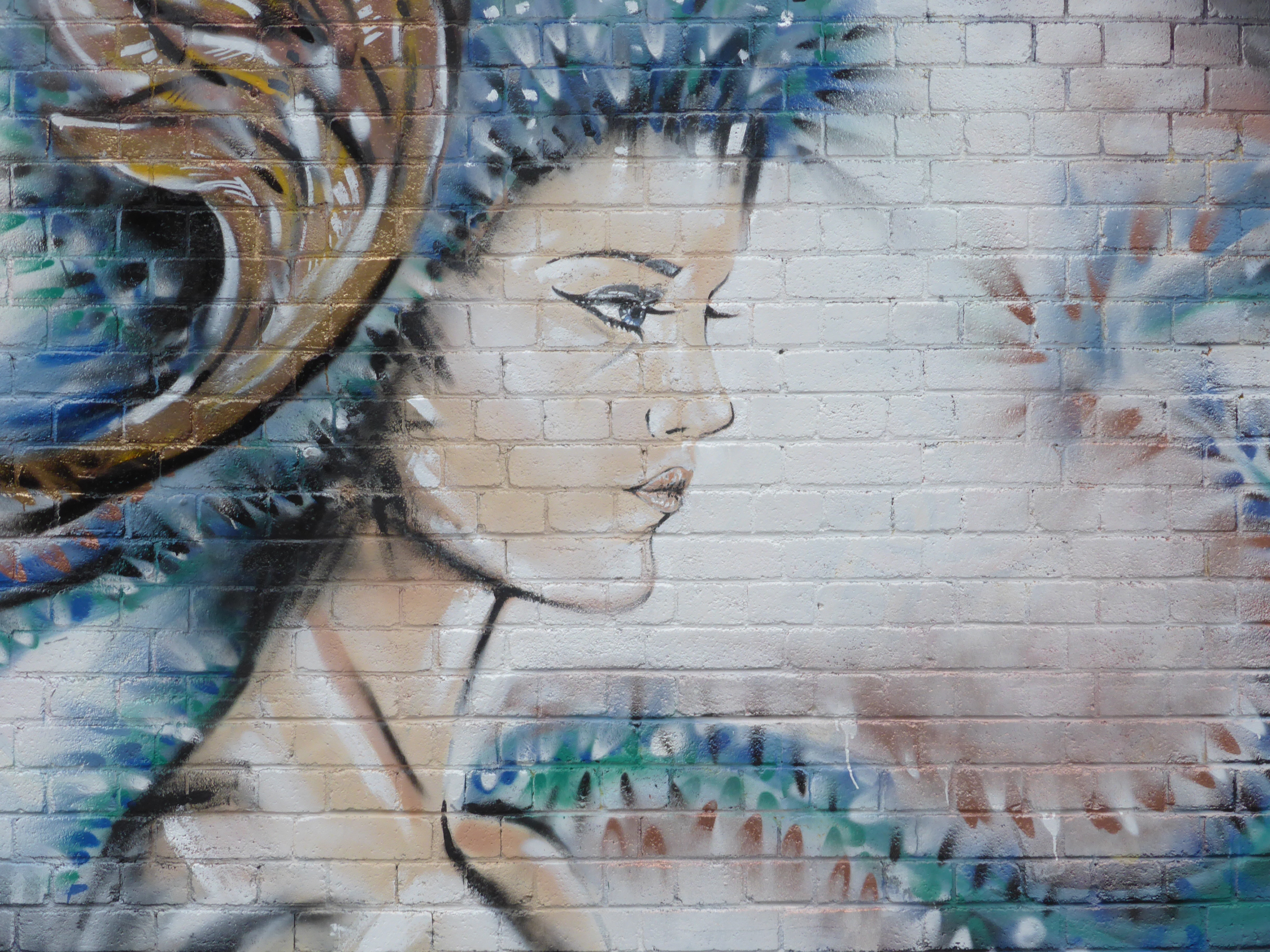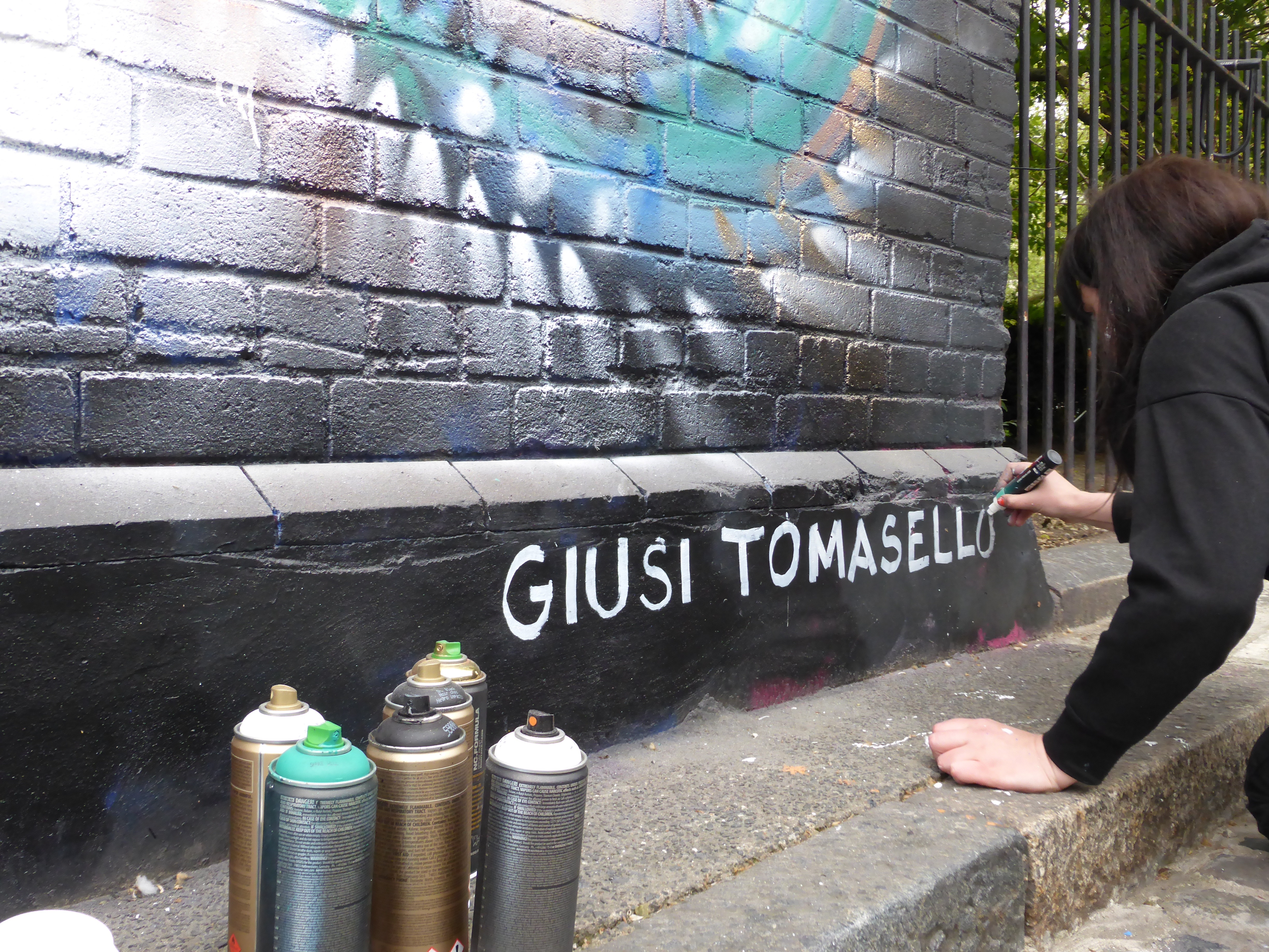 It was interesting to see Giusi work with a differant colour palette on this occasion, focusing more on green and blue, and still creating that almost regal like effect so prevalent in her work. It’s really shocking to believe this is only the fourth public wall Giusi has painted, we have been fortunate enough to see three of the four now be constructed, and on each occasion Giusi has changed focus, perspective and colour palettes to try and add a new dimension to her catalogue of works. Superb piece Guisi and thanks for your time yesterday.