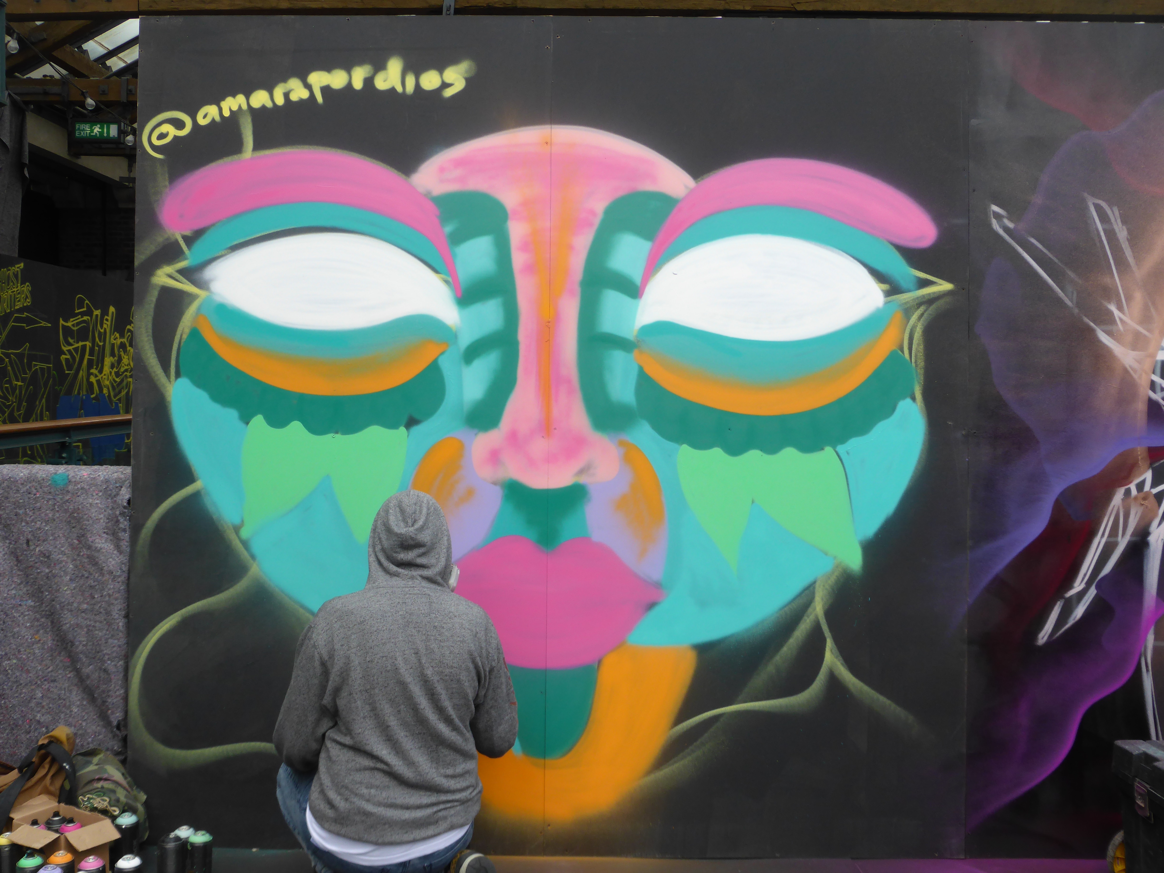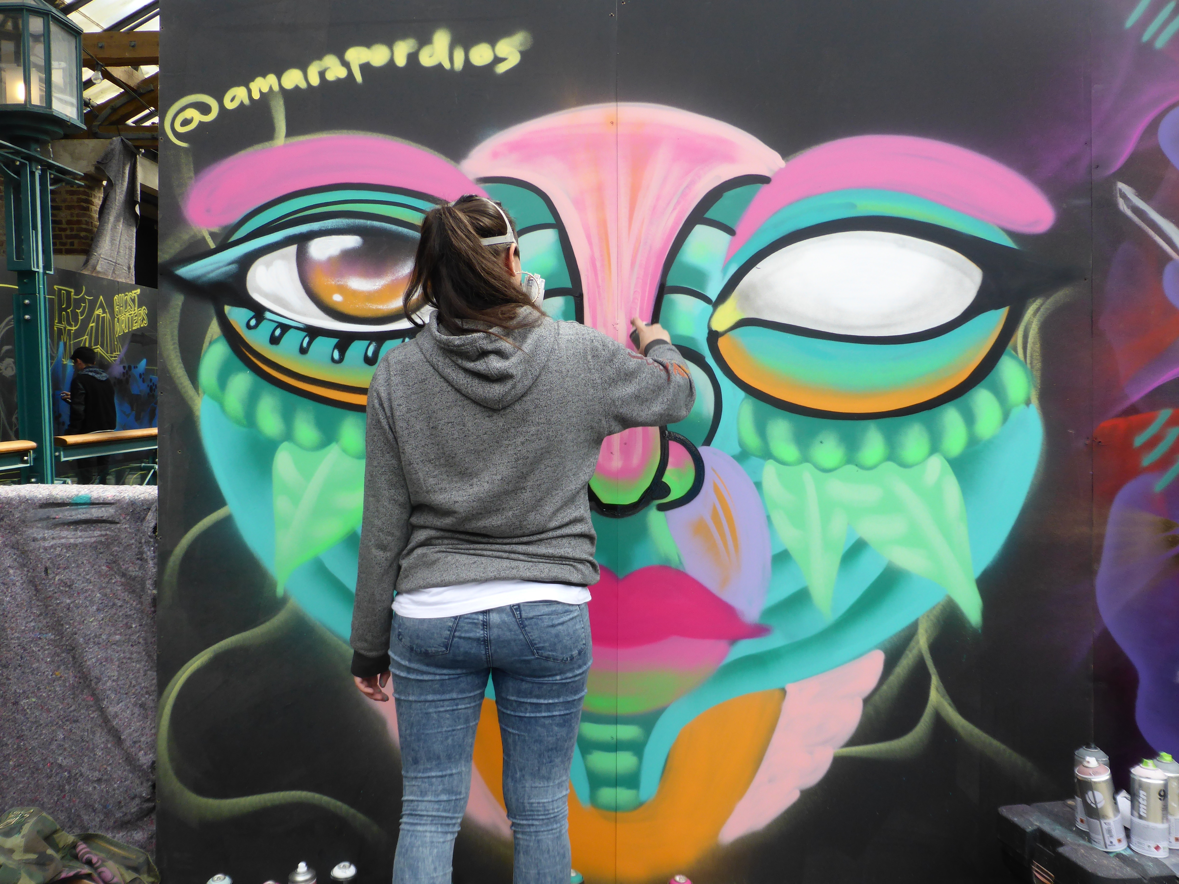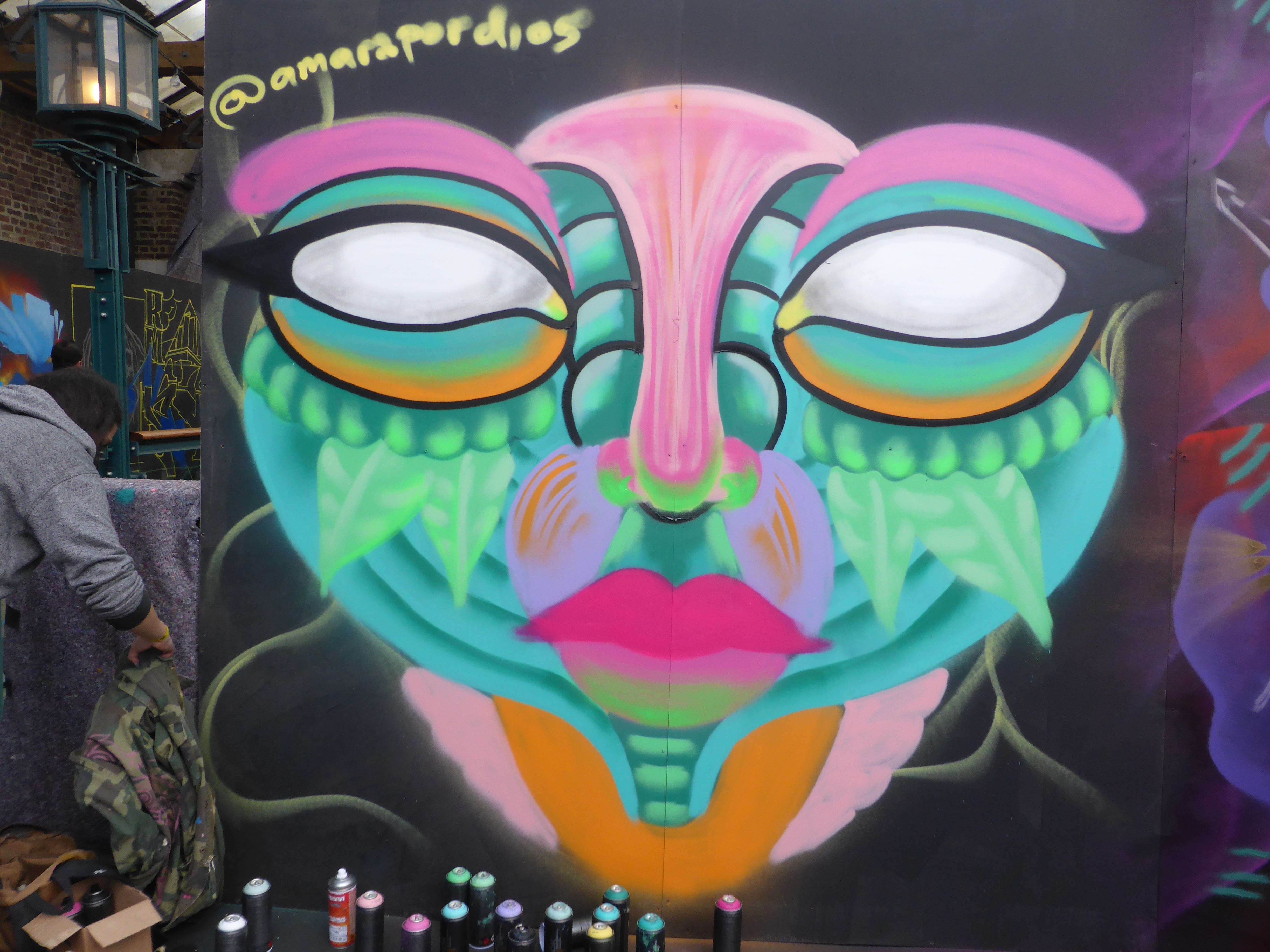 The stunning finished piece by Amara Por Dios, the orange really compliments the green in the colour palette, and as often the case with Amara Por Dios’s work, there is a lot going on within the work, exceptionally intricate demonstrating the meticulous work and effort going to each of her pieces.