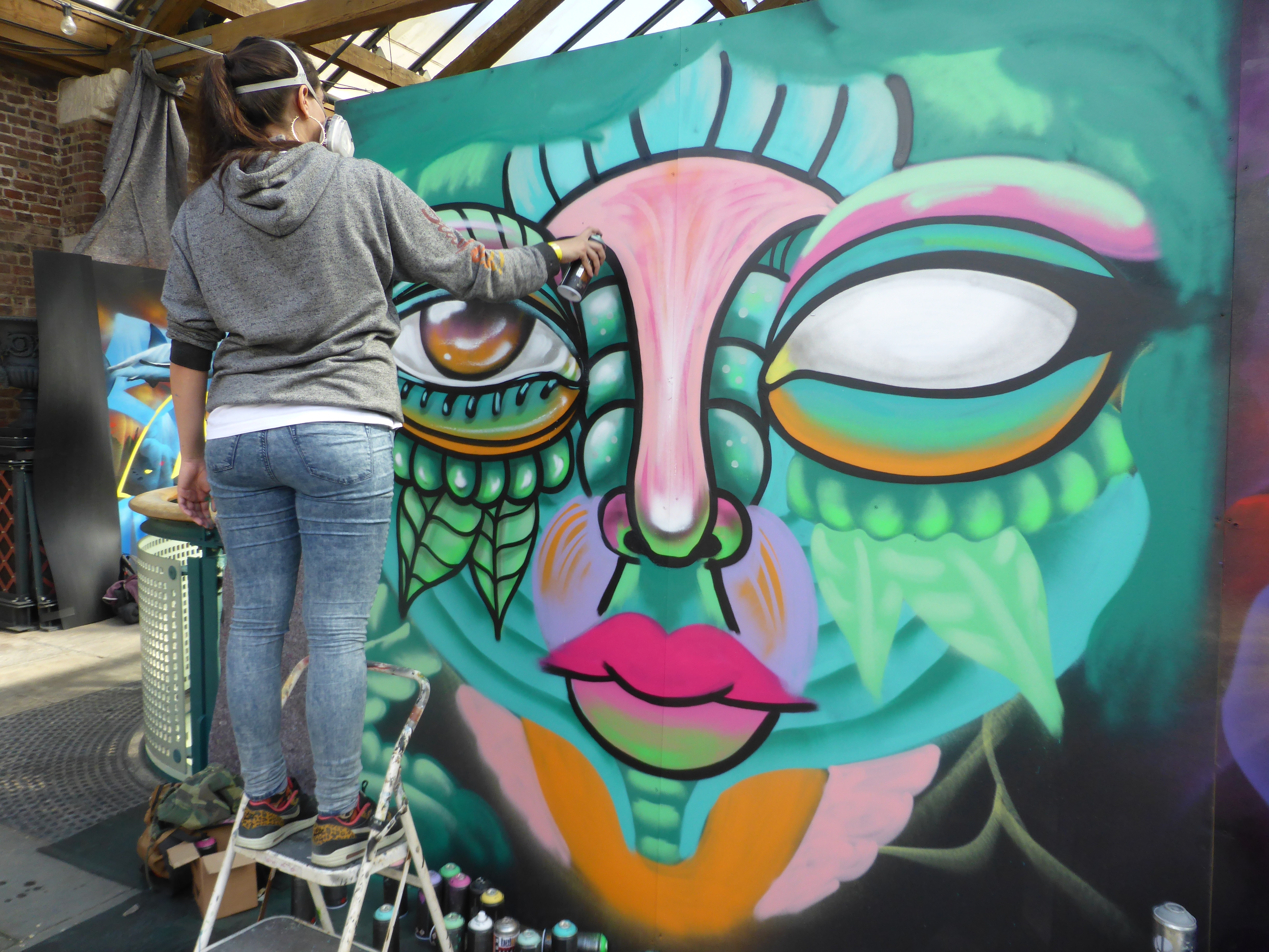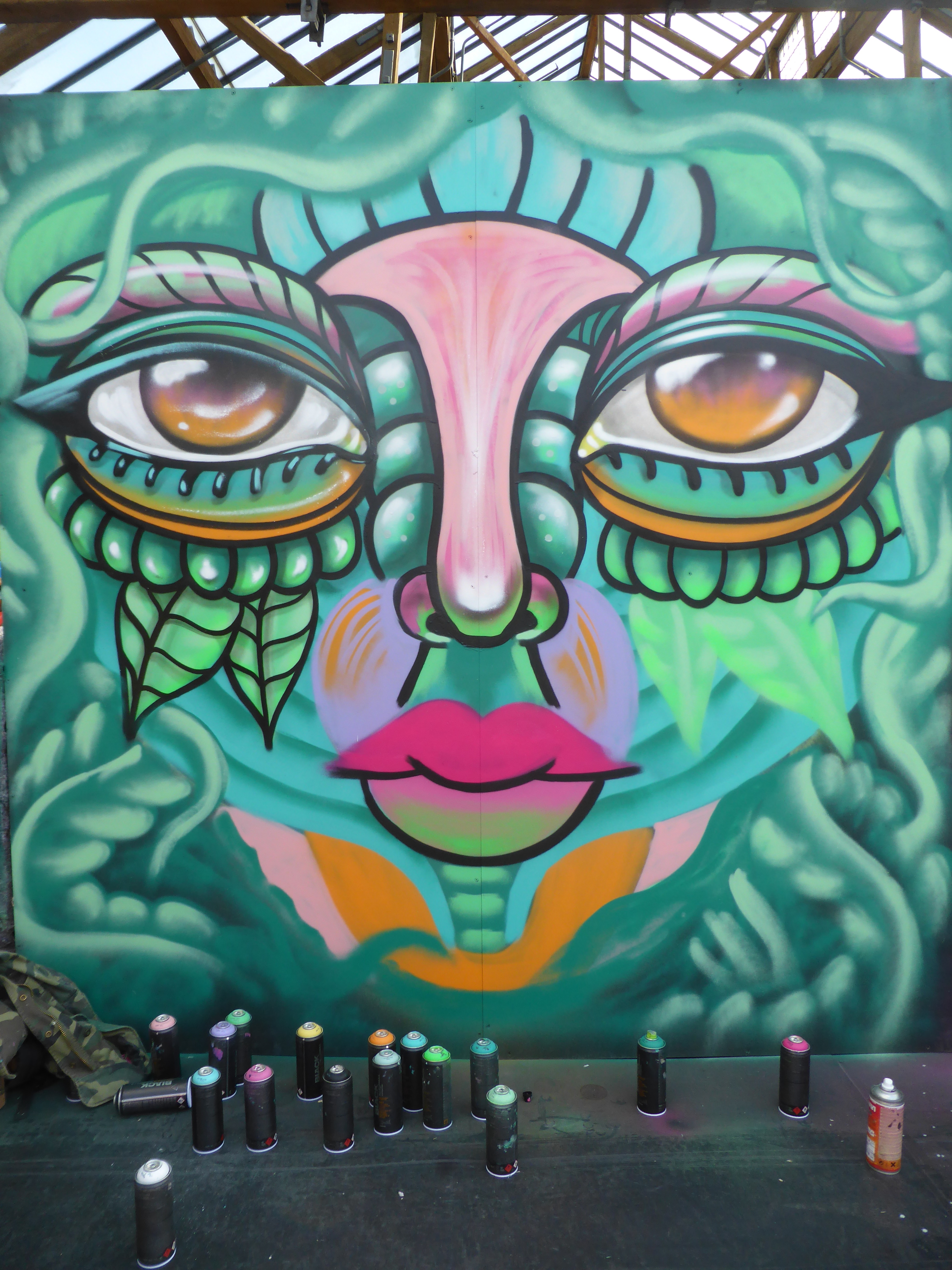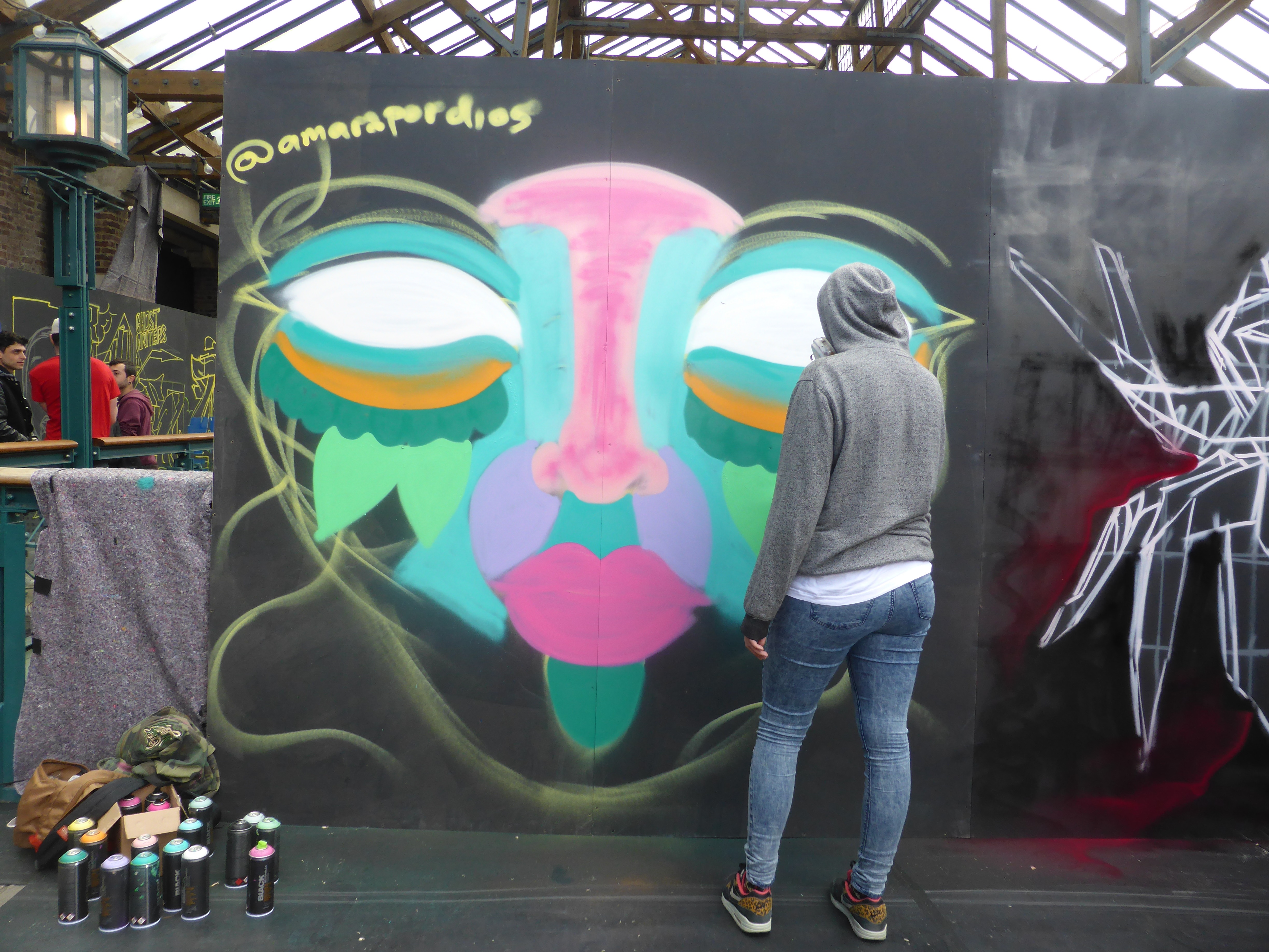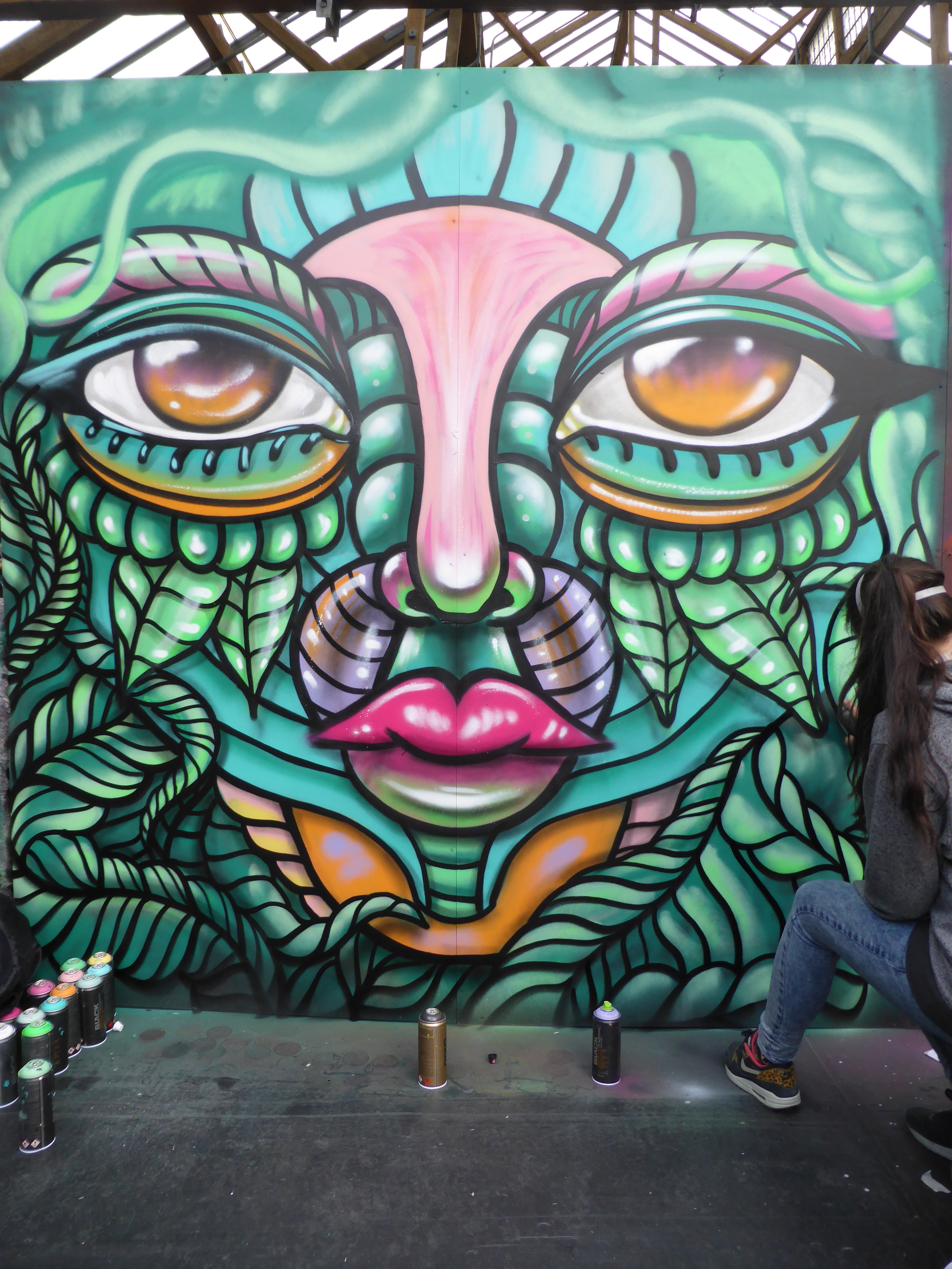 The stunning finished piece by Amara Por Dios, the orange really compliments the green in the colour palette, and as often the case with Amara Por Dios’s work, there is a lot going on within the work, exceptionally intricate demonstrating the meticulous work and effort going to each of her pieces.