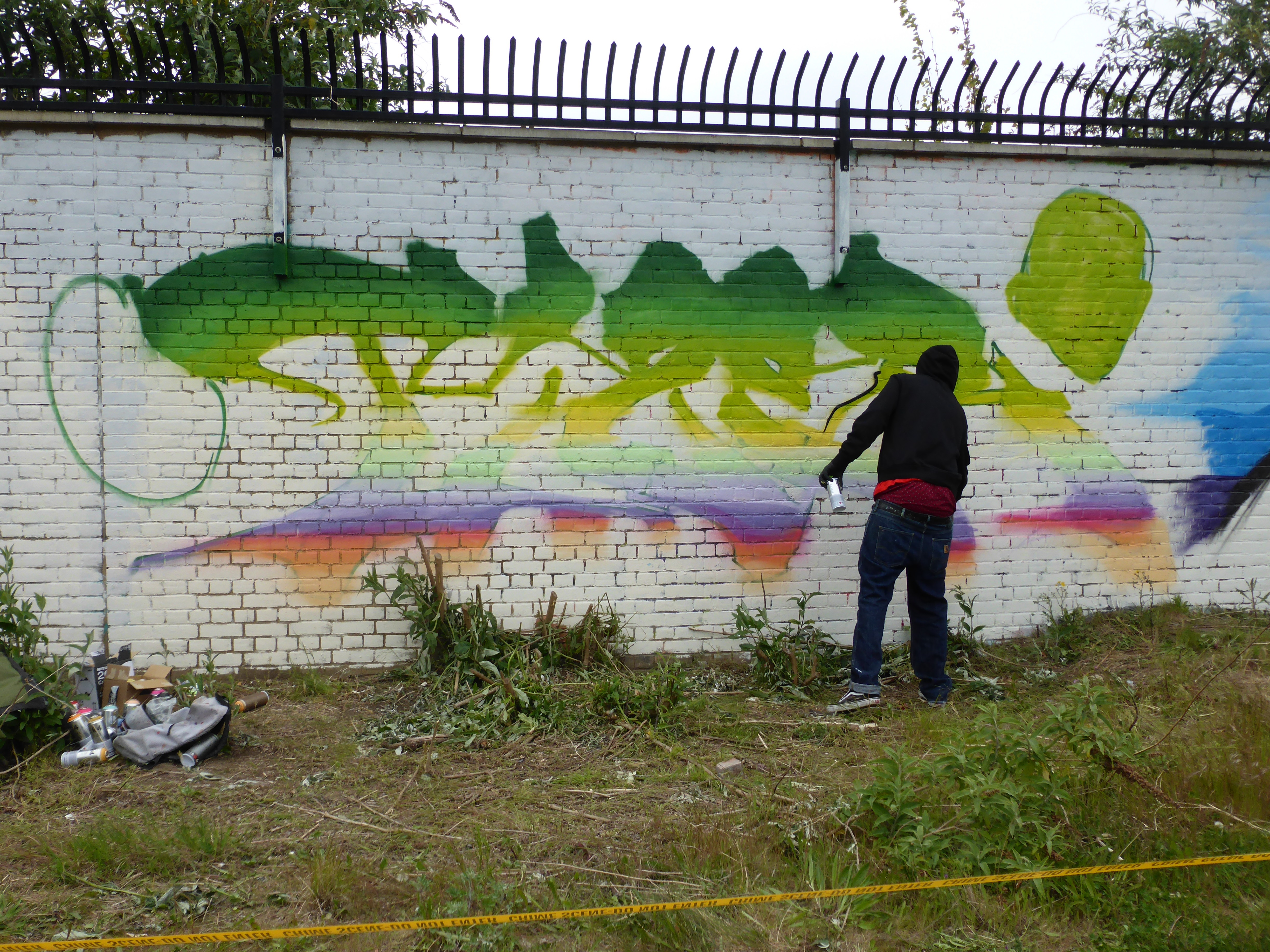 Over the weekend The Greenhouse Effect Paint Jam took place in the East End, just around the back of Brick Lane at Fleet St Hill, where The Meeting of Styles took place last year. The event was put on in association with LSD Magazine and the 1 Love Community Network. Over the two days a variety of Street Artists and Graffiti Writers set to work on the one huge wall which overlooks a massive yard lined with 13 smaller walls. In future now the plan will be to have a paint jam, four times a year, with the changing seasons, so it shall be interesting to see how this project develops throughout the year and what works it brings us.