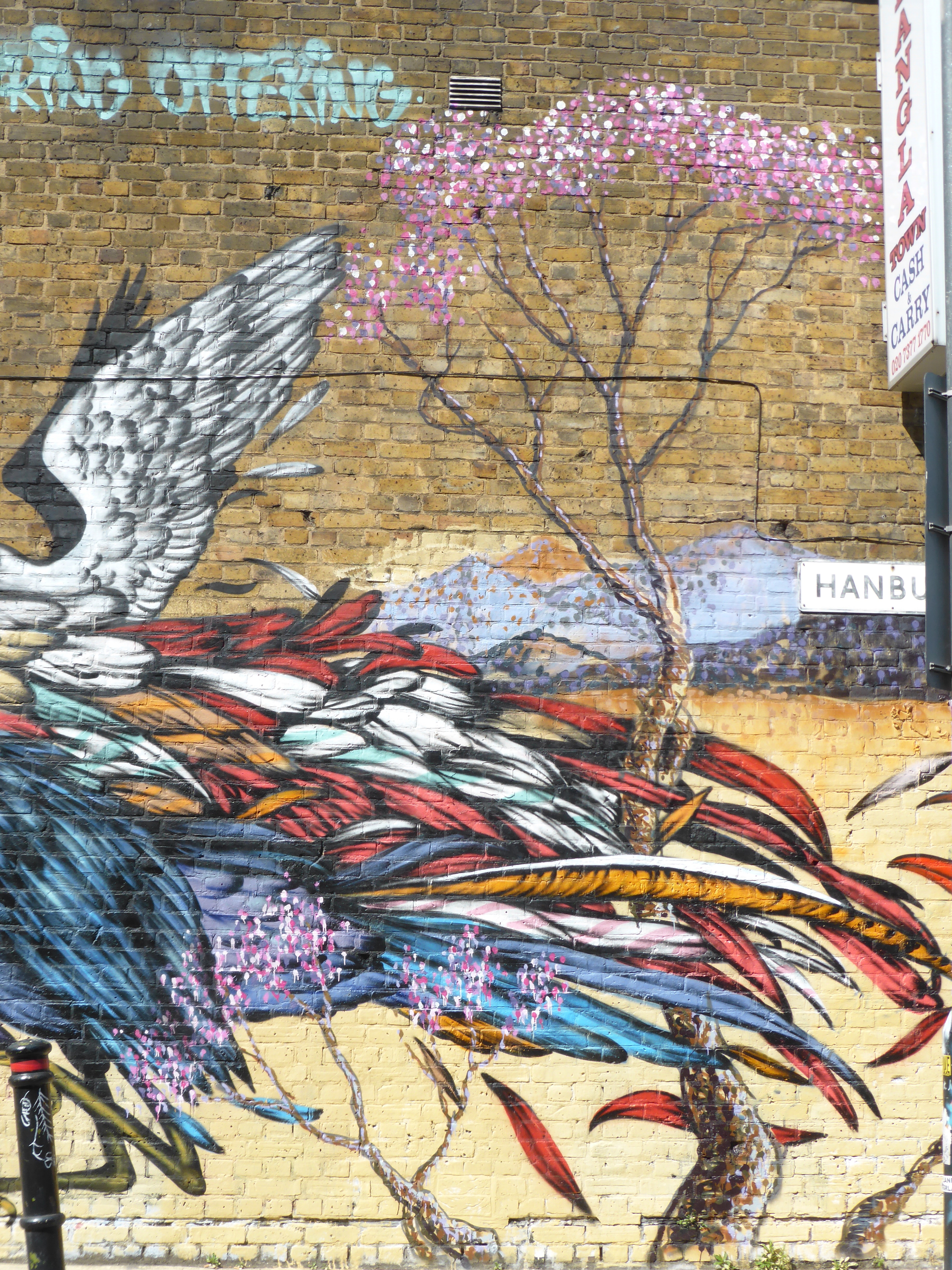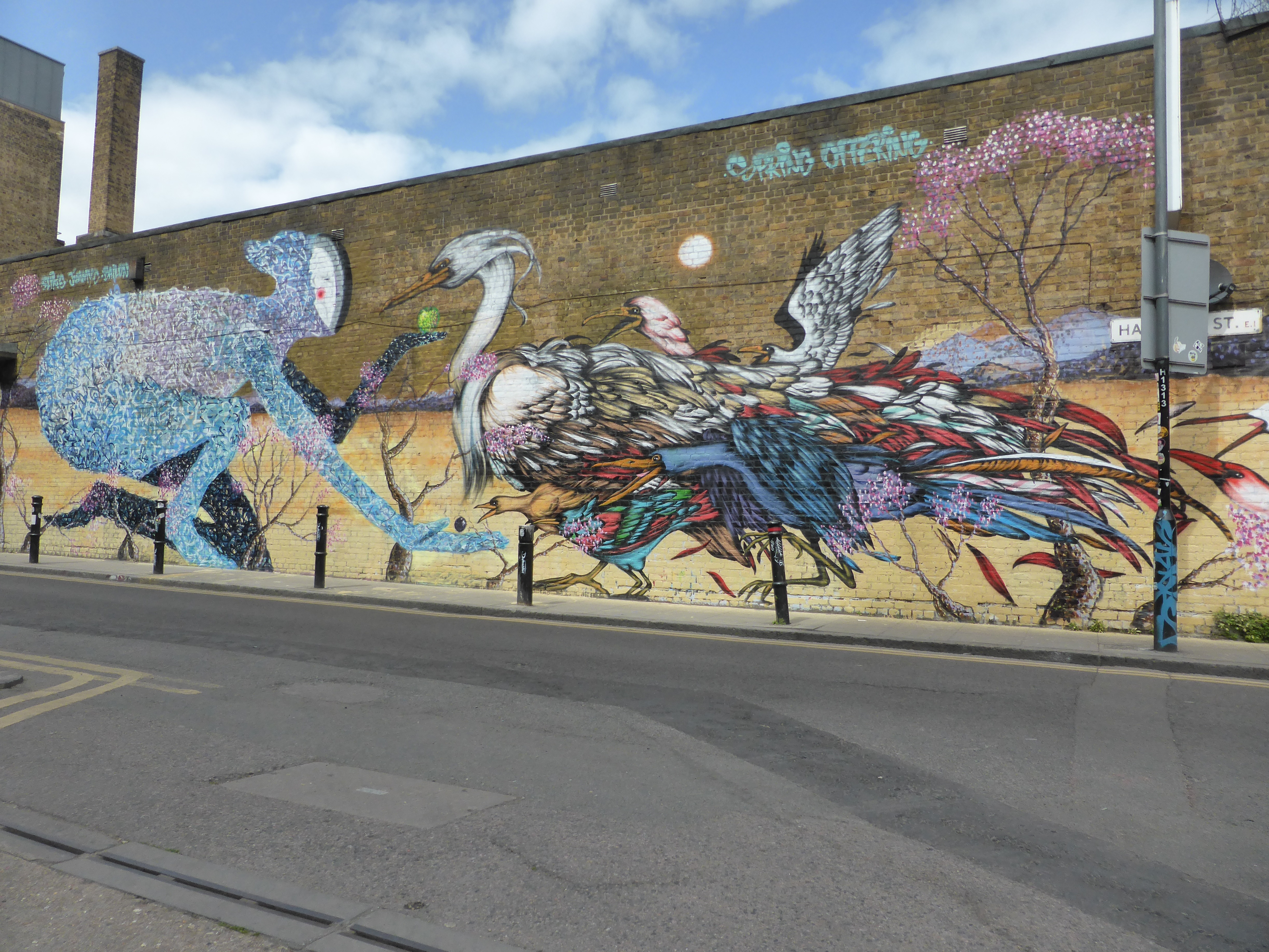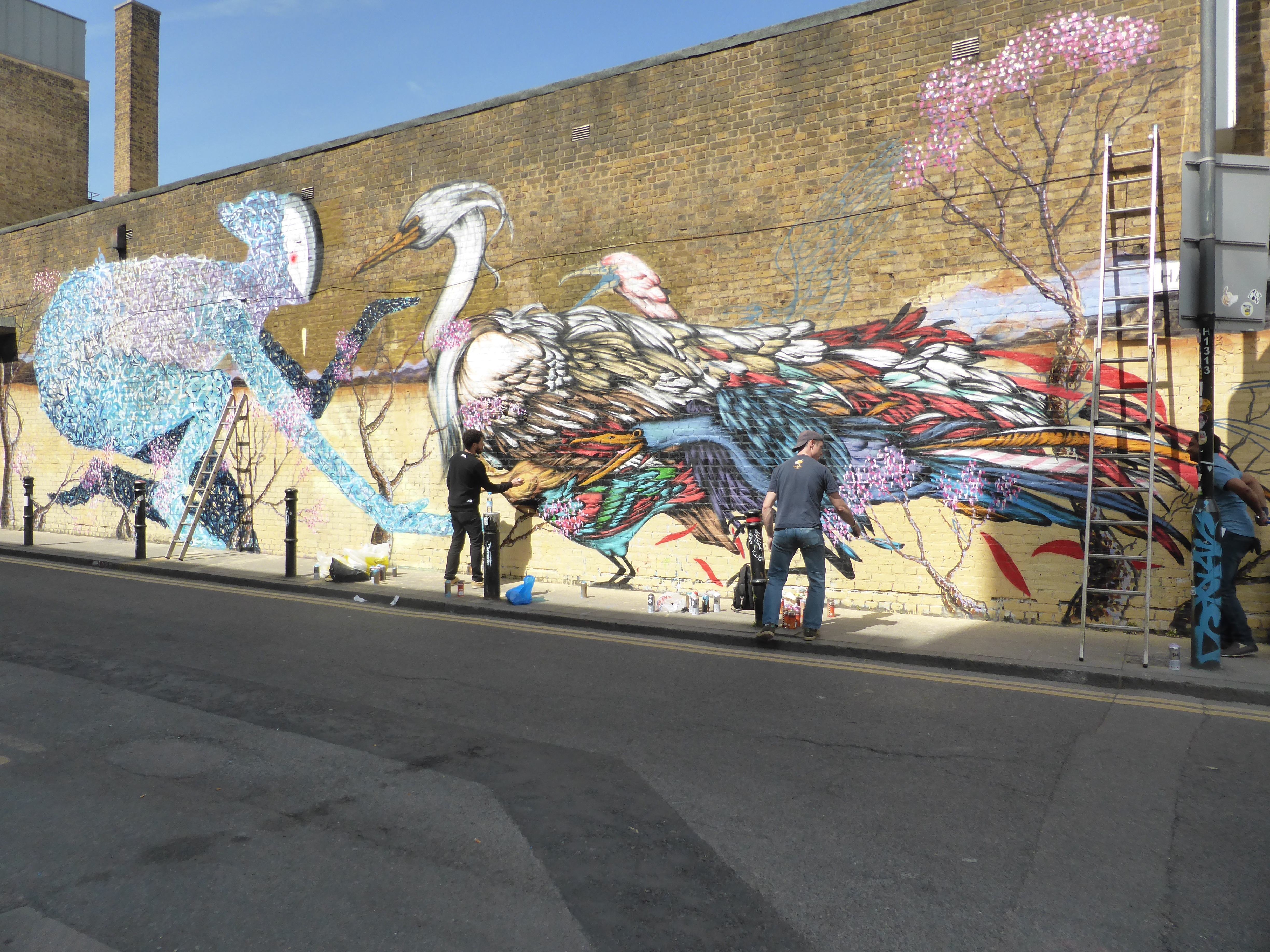 The incredible finished piece from Sliks, Bailon & Jimmy C in Hanbury Street, entitled ‘Spring Offering’, put up with support from @BrickLane1.
