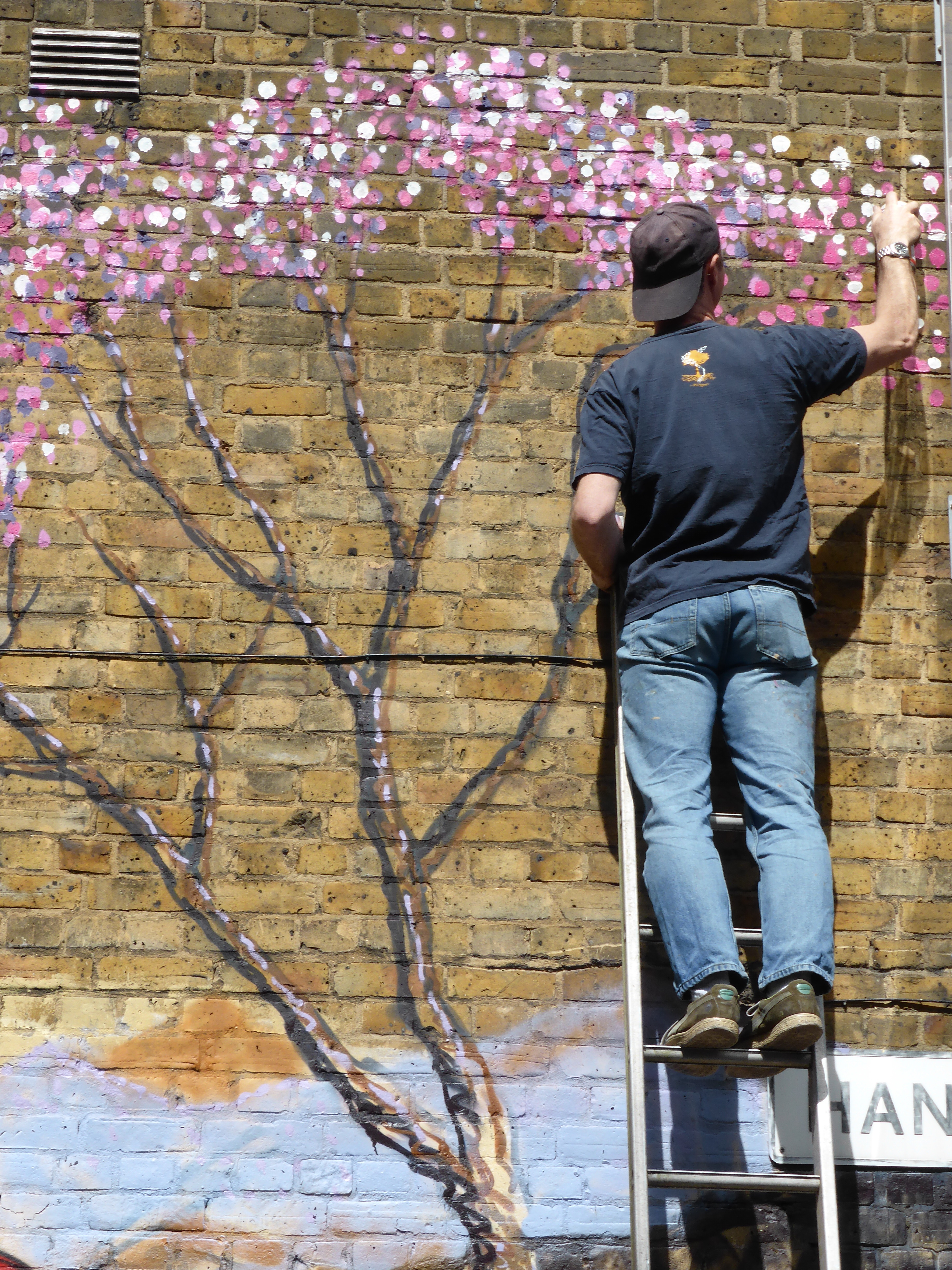 Jimmy C adding some of his trademark ‘Aerosol-Pointillism’ to the scenic surroundings for the work.
