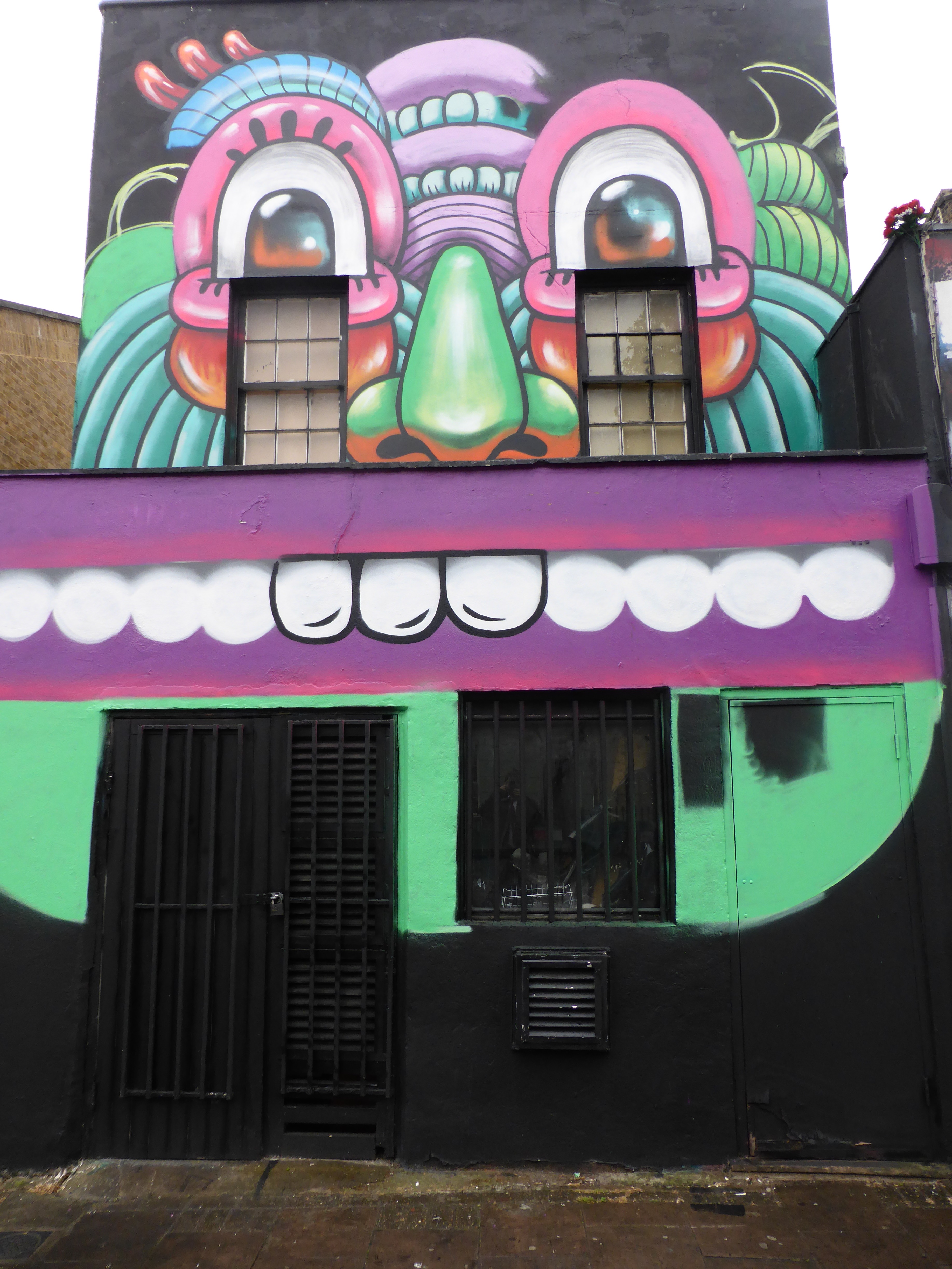 Over the course of three days at the end of last week Street Artist Amara Por Dios hit Camden Town, with support from The Real Art Of Street Art, to lay out this large scale and delightful work. Replacing the previous work on the same building front from Hunto, this was an excellent choice of artist for the next piece in this location. Amara Por Dios is no stranger to large scale walls, having painted her largest wall to date, The Village Underground in Shoreditch, some six or so months back. Over the three days Amara Por Dios created a large tribal portrait, very much in her distinct style, influenced by the arts of the indigenous peoples of the Americas, in her bright colour palette of choice. As is often the case with her work, you can see for yourself all the intricate detail that has gone in to the making up of this piece, it really does grab your attention when you walk past.