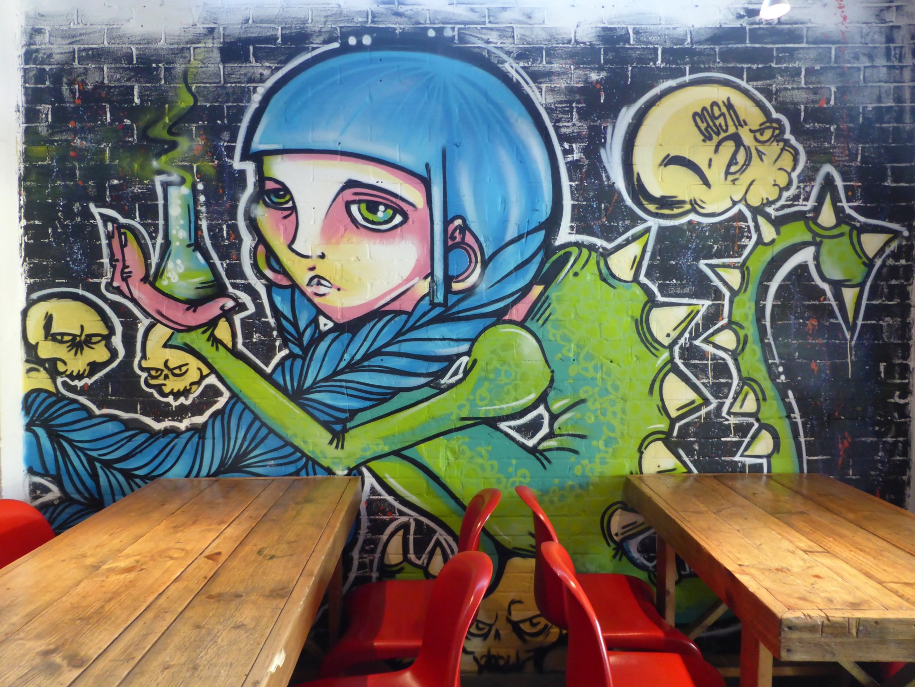 For the purposes of this exhibition Elno & Krap/Crap couldn’t resist the chance to paint the two sections of feature wall in Number 90. Very good work that pretty much encapsulates the whole exhibit.