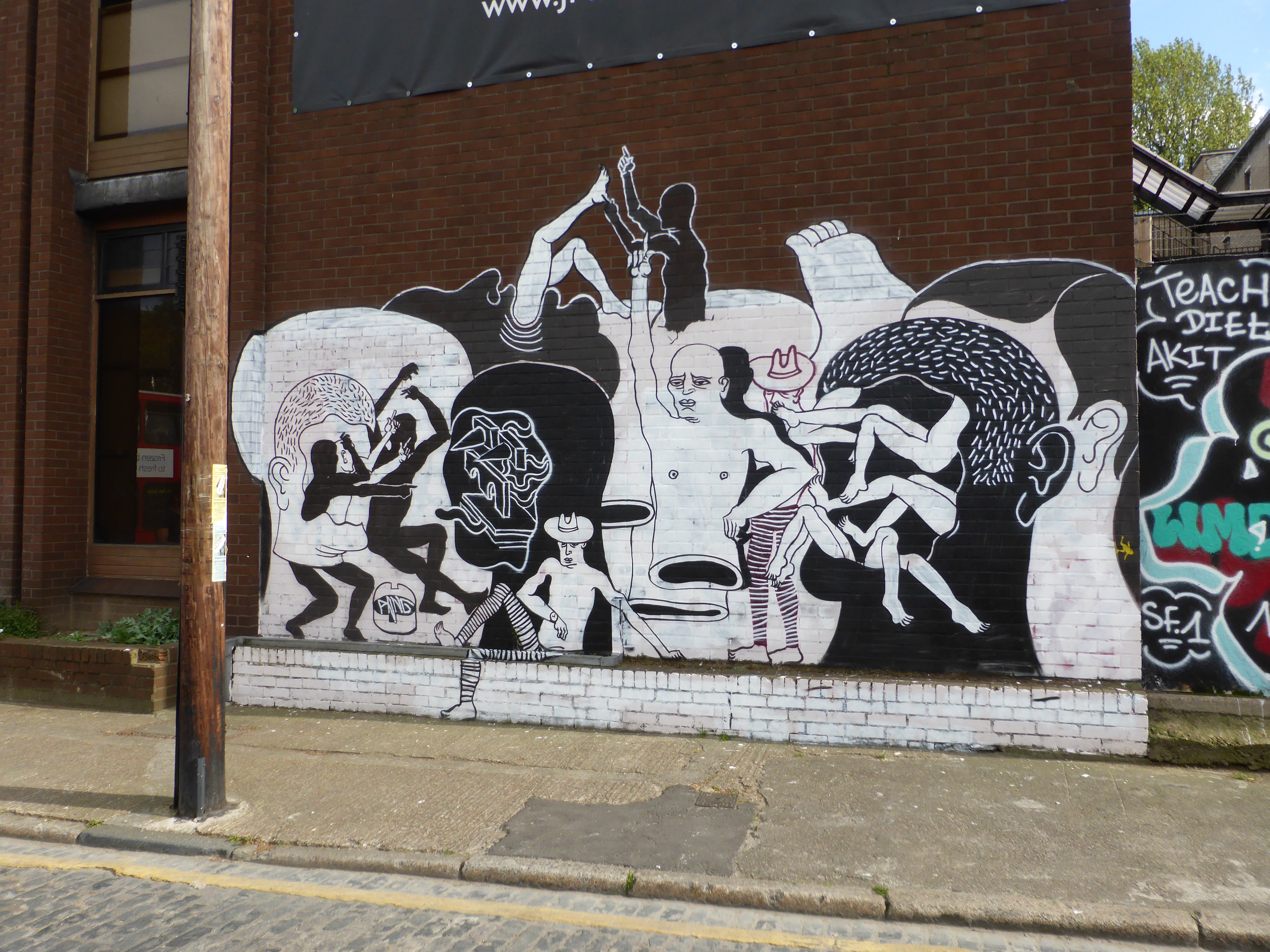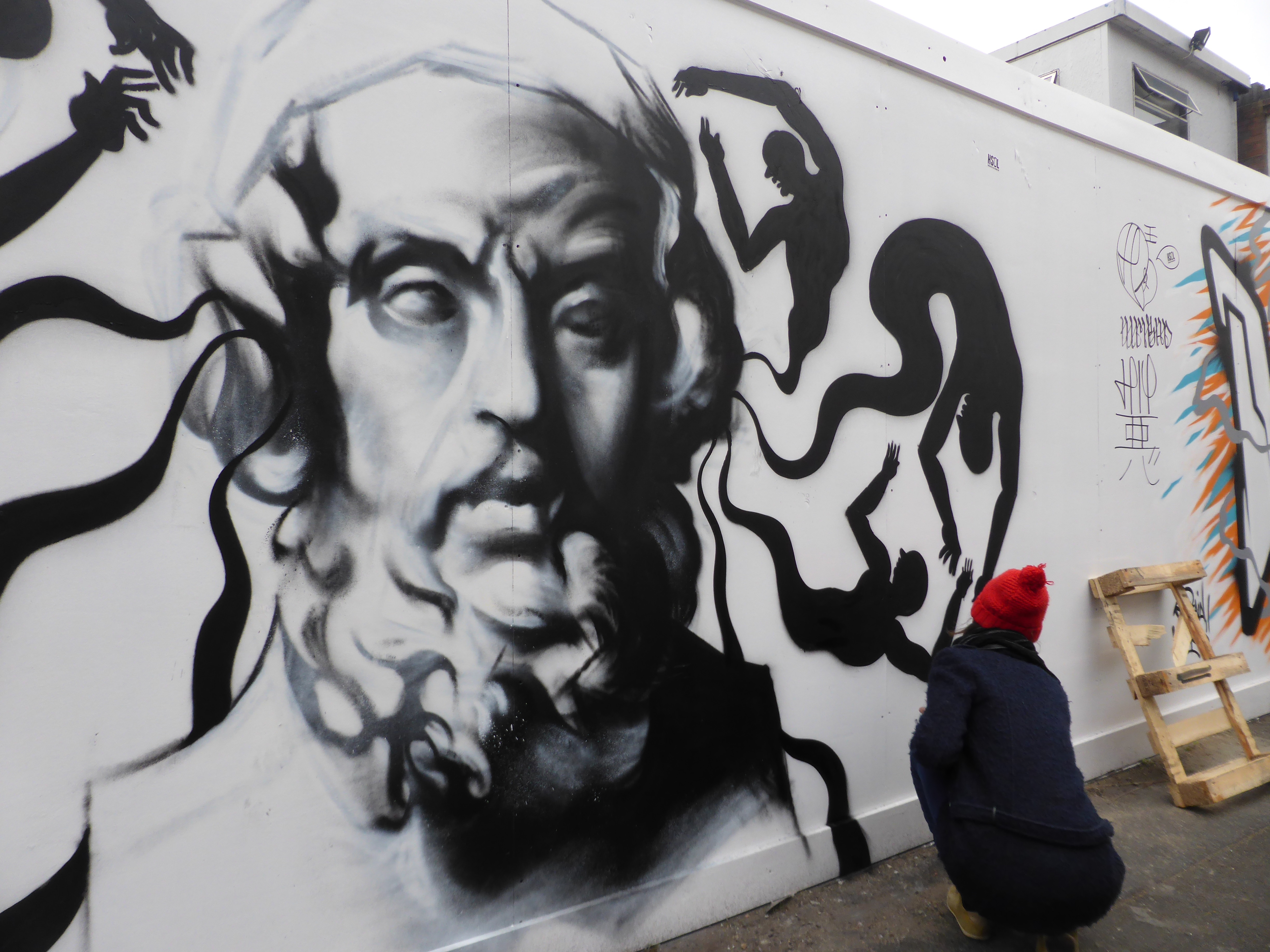 Last week in Bethnal Green Street Artist Pang laid out two works in Bethnal Green, both with support from The Hidden Streets Of London, and we finally made it down the other day to capture the second piece and share them both with you. Pang’s characters in varying degrees of depth, style and size can be spied absolutely all over London where there is any form of Street Art presence, so it was great to see these two fresh and decent sized walls put up just last week.