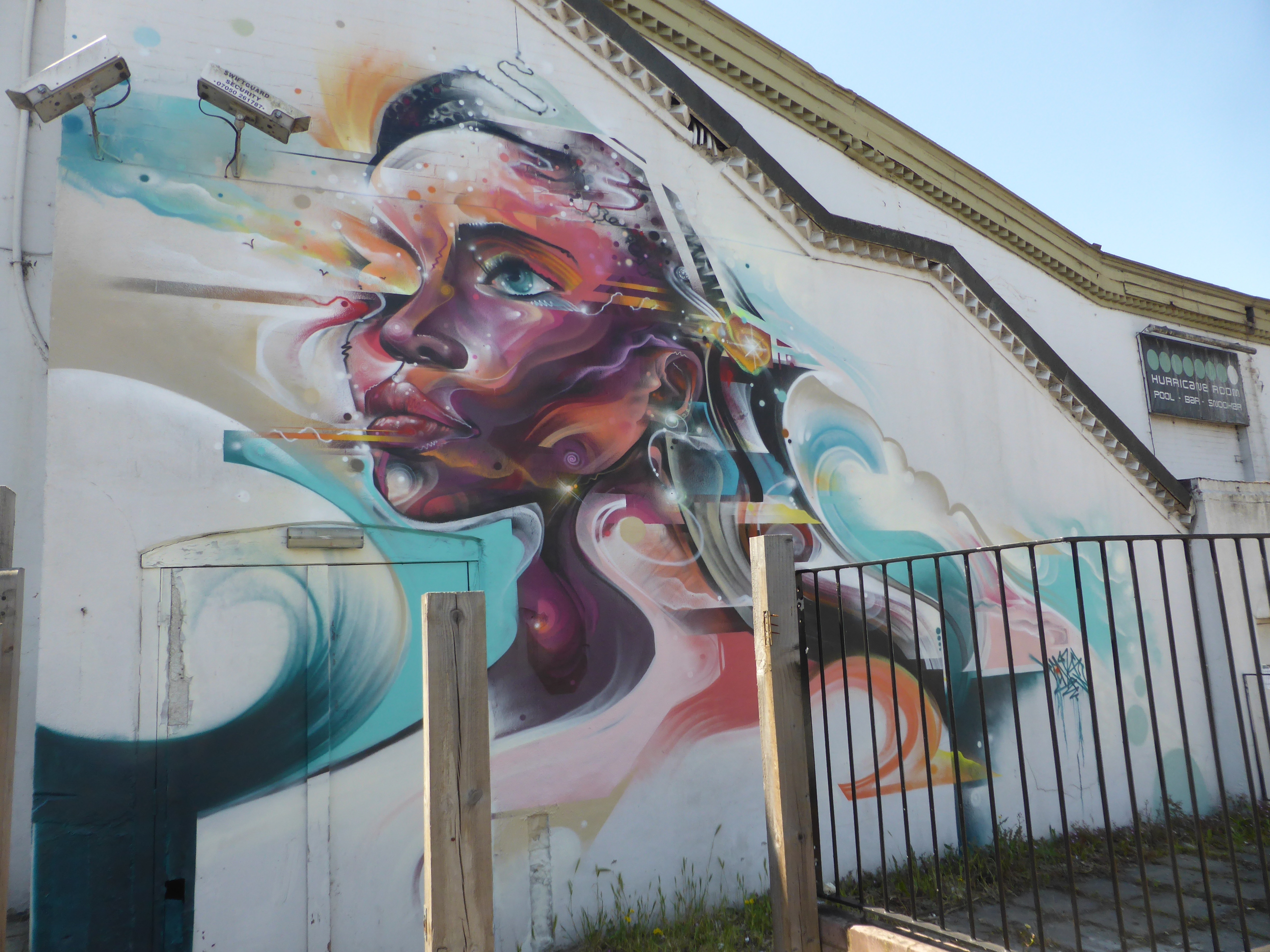 Last Week, a couple of days before Conor Harrington hit Walthamstow, Street Artist Mr Cenz hit the area and spent some three days on a superb freestyle creation for Wood Street Walls, in Howard Road. The piece features one of his female sci-fi-esque portraits, and on this occasion is minus the typography that often accompanies Mr Cenz’s portraits. Wood Street Walls have certainly started to organize some incredible Street Art of late and this piece by Mr Cenz was the eighth work to go up around Walthamstow for the project, and a great work it is indeed.