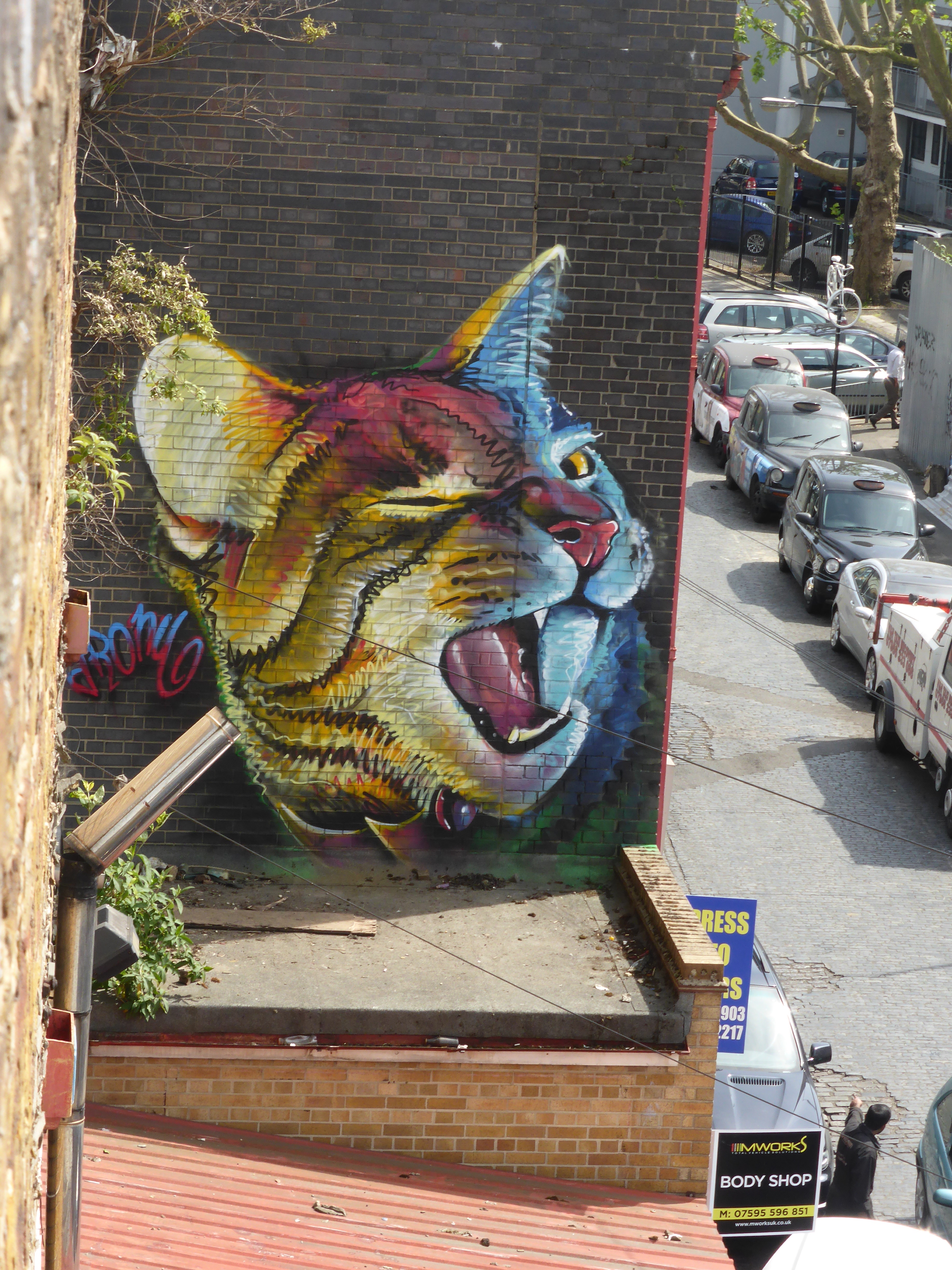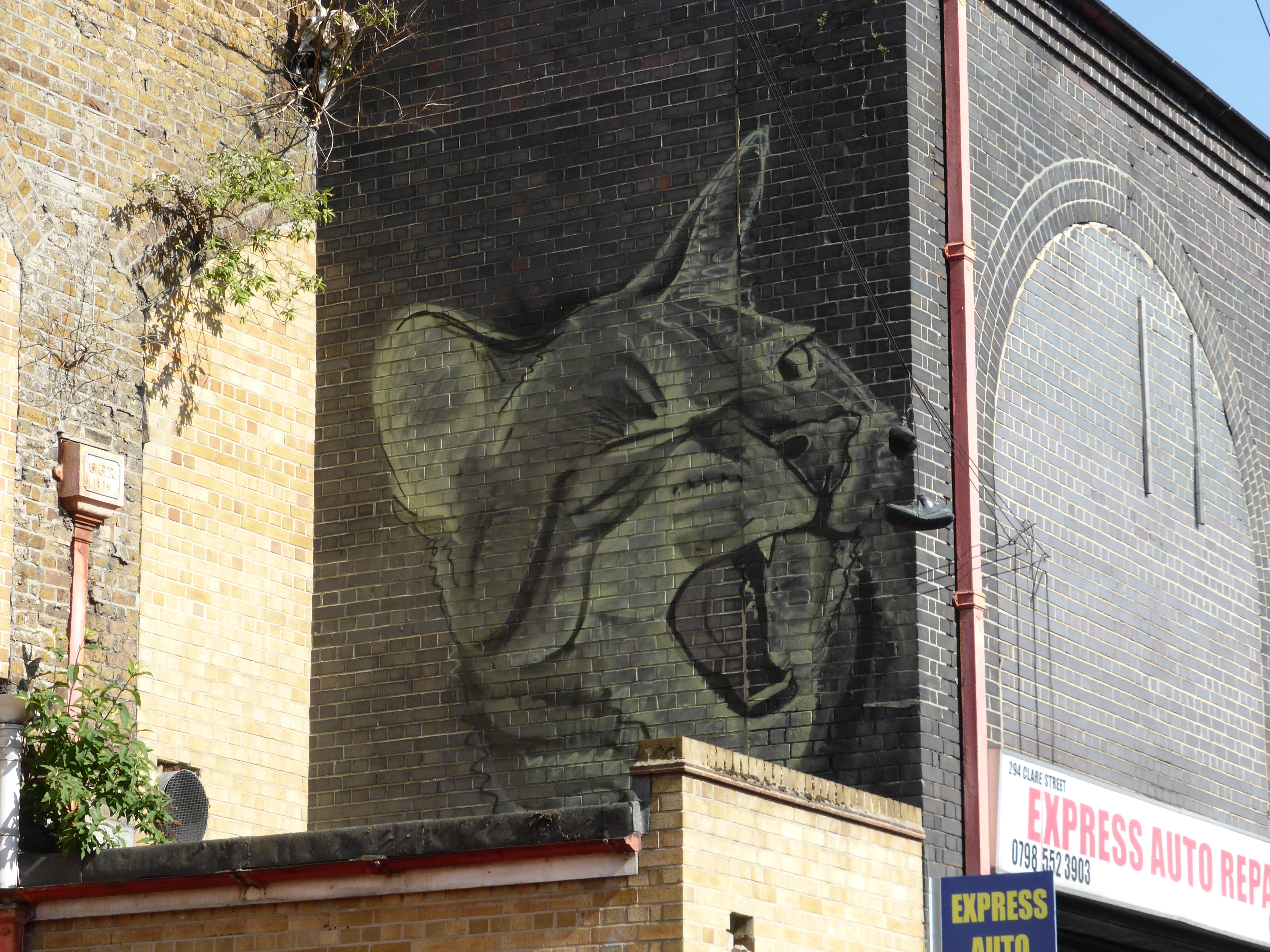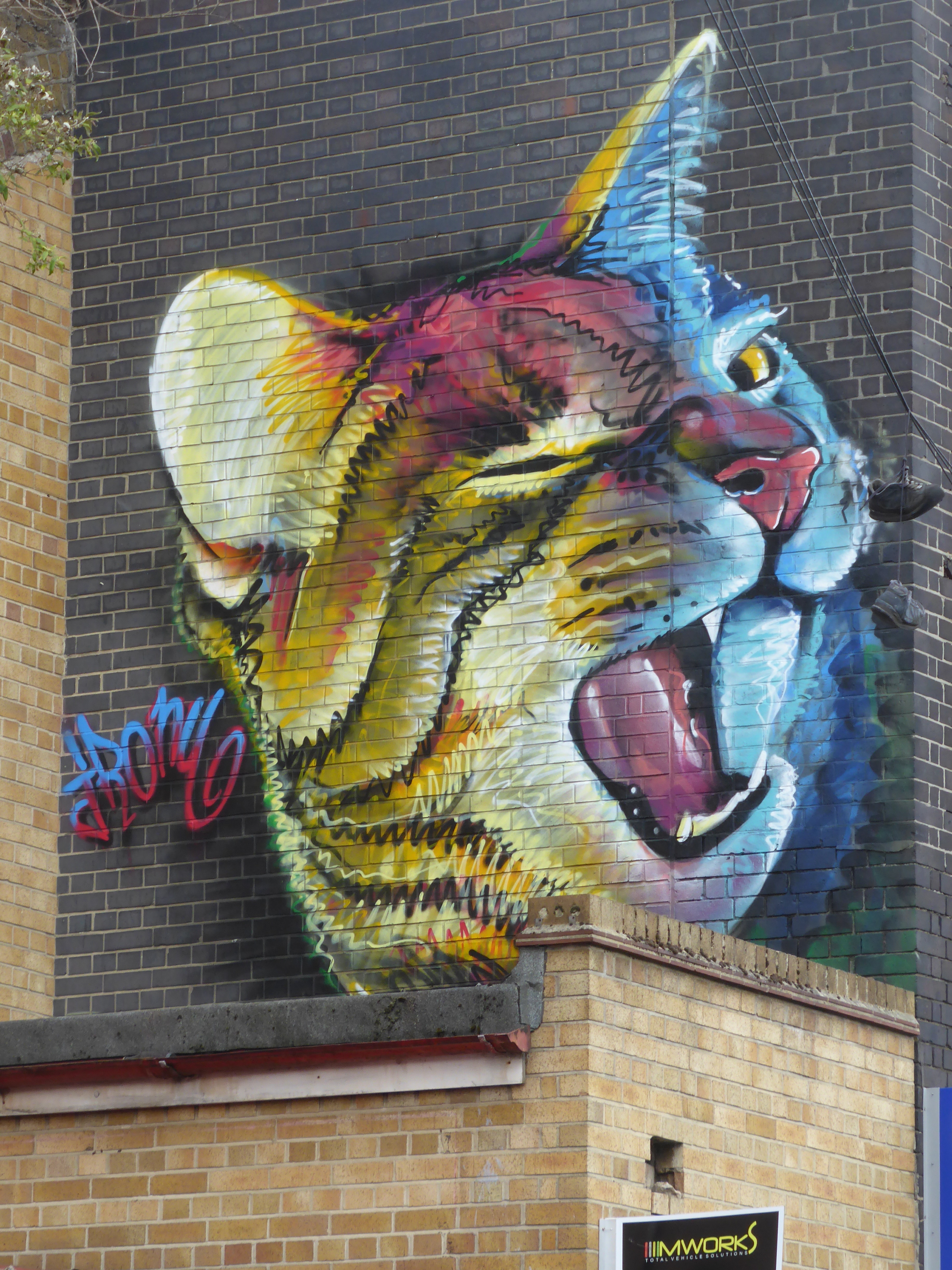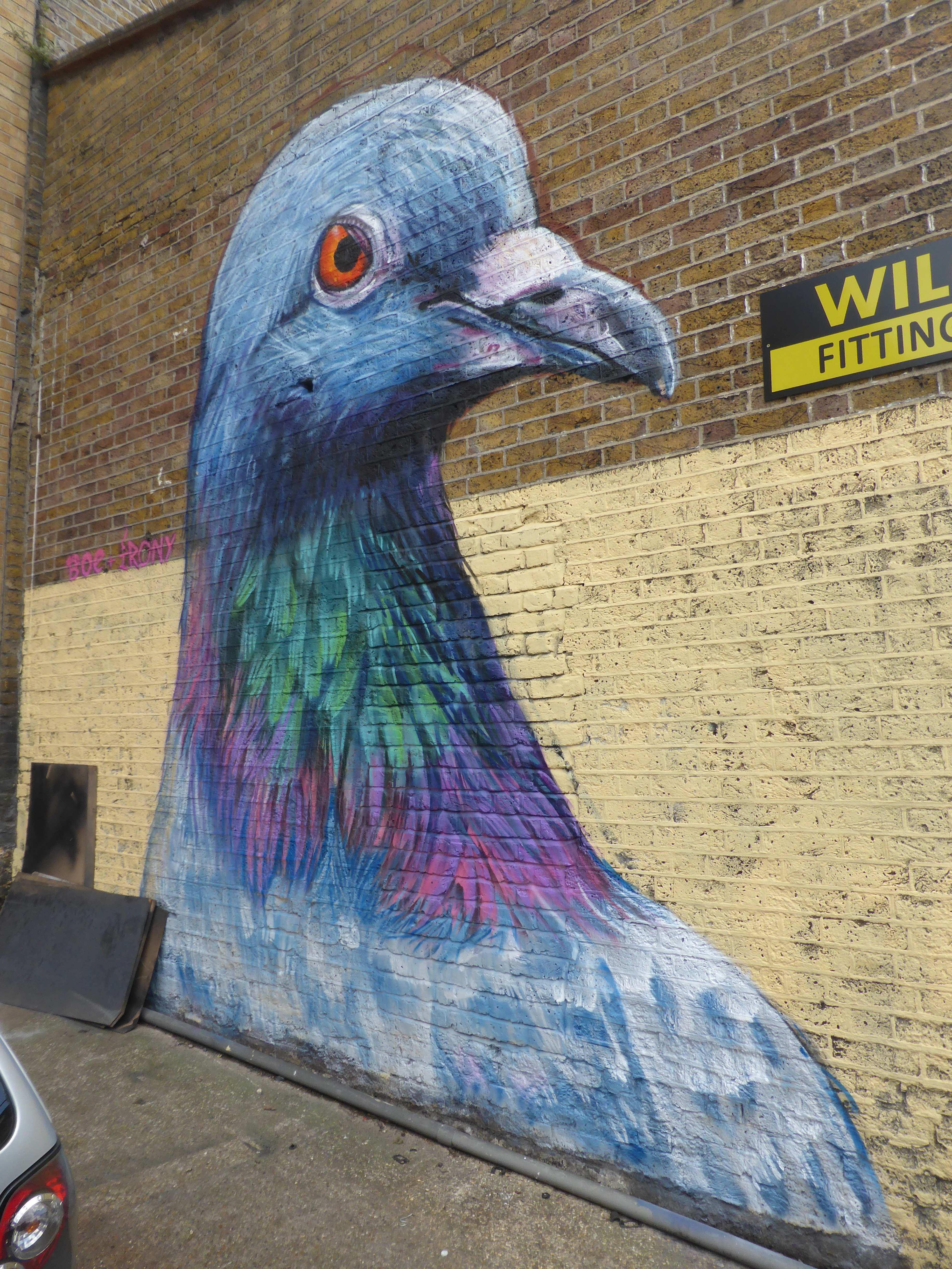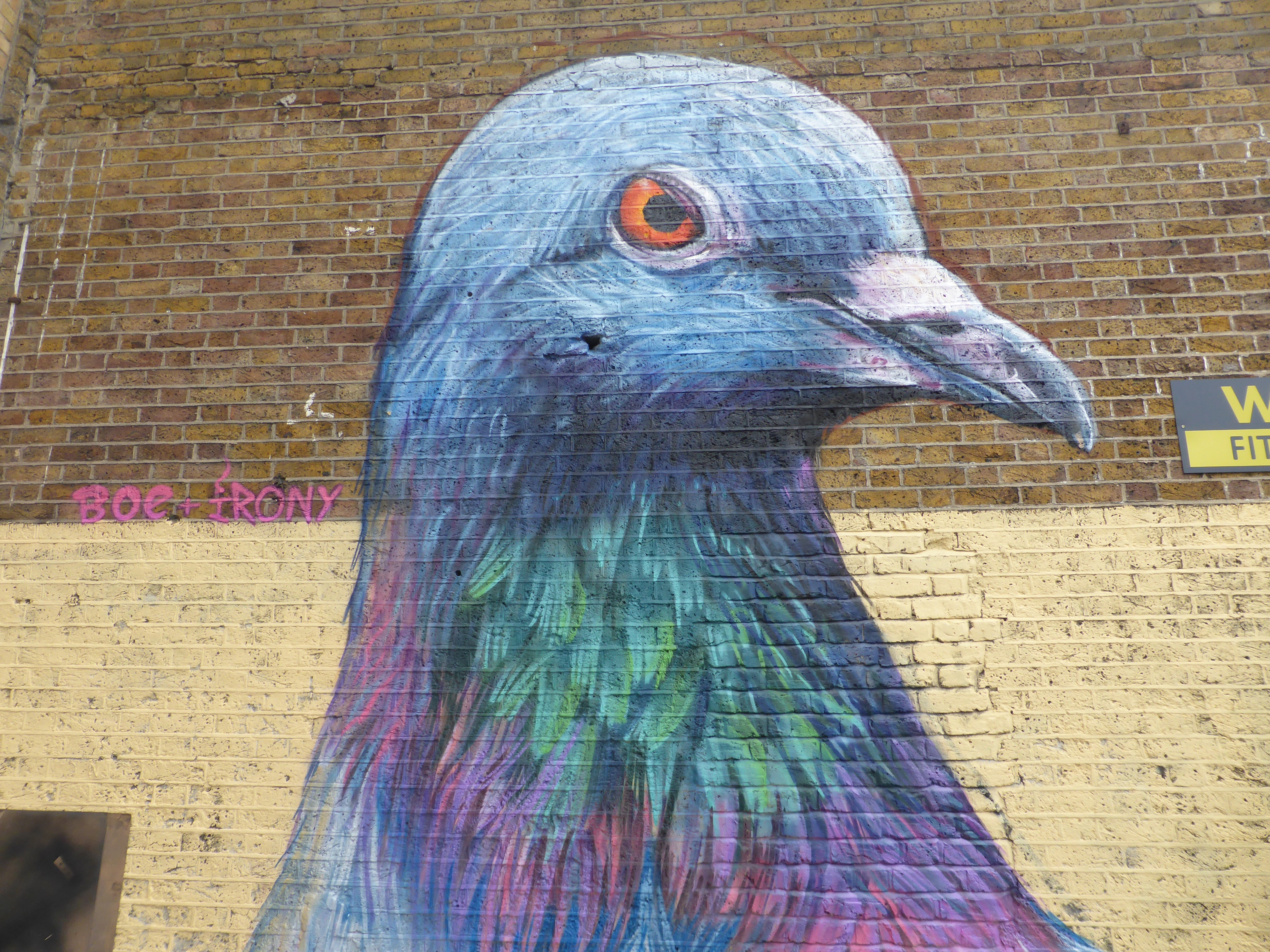 Over the last couple of weeks Street Artist Irony has been busy around Bethnal Green, laying out two of his distinctly hyper-realistic works, on these occasions both animal based and featuring a solo piece of a cat and a collaboration with Boe for a superb and larger than life Pigeon work, both put up with support from The Hidden Streets Of London. Both pieces are virtually next to each other and really are now stand out works in a street crammed full of Street Art.