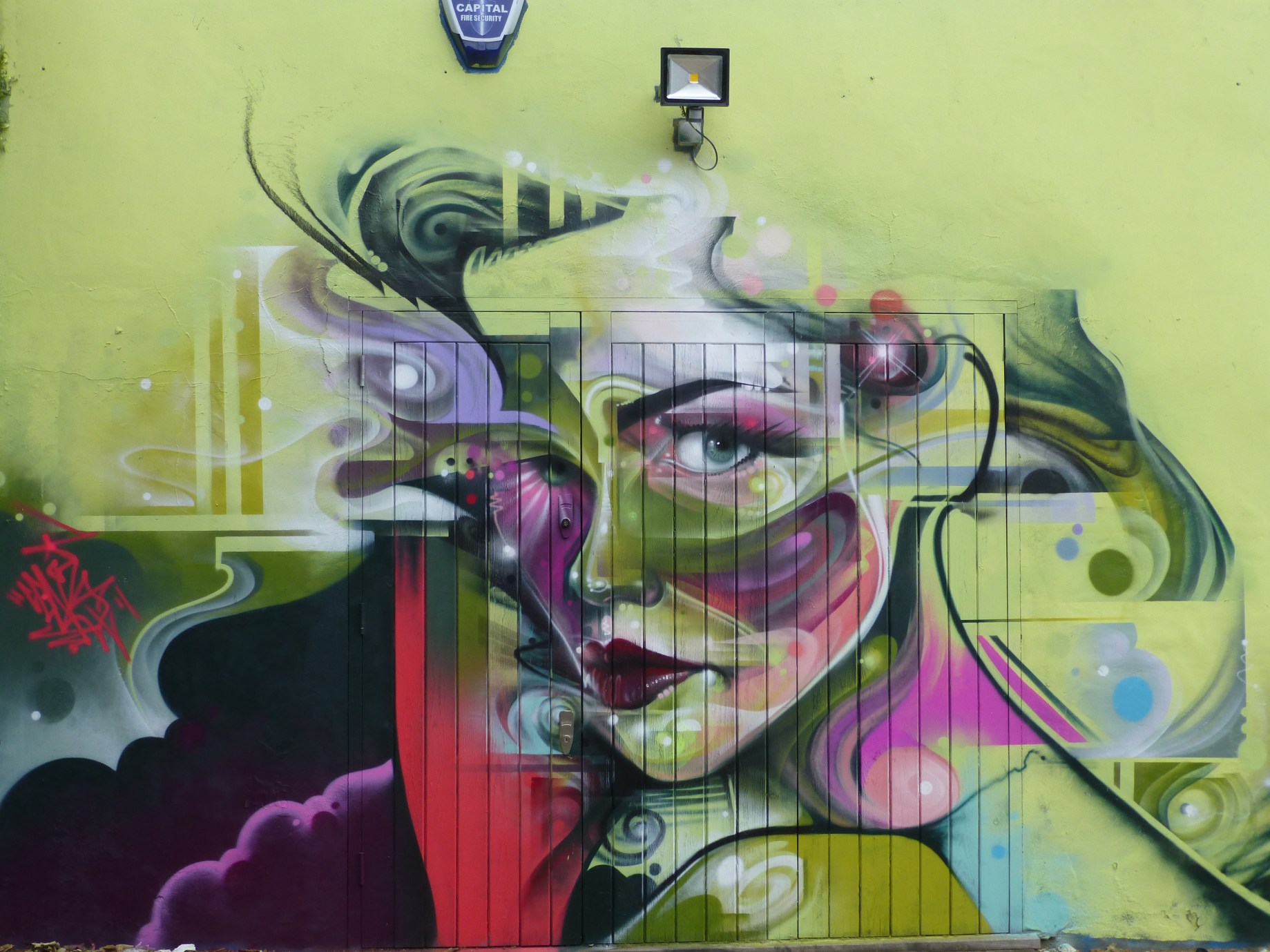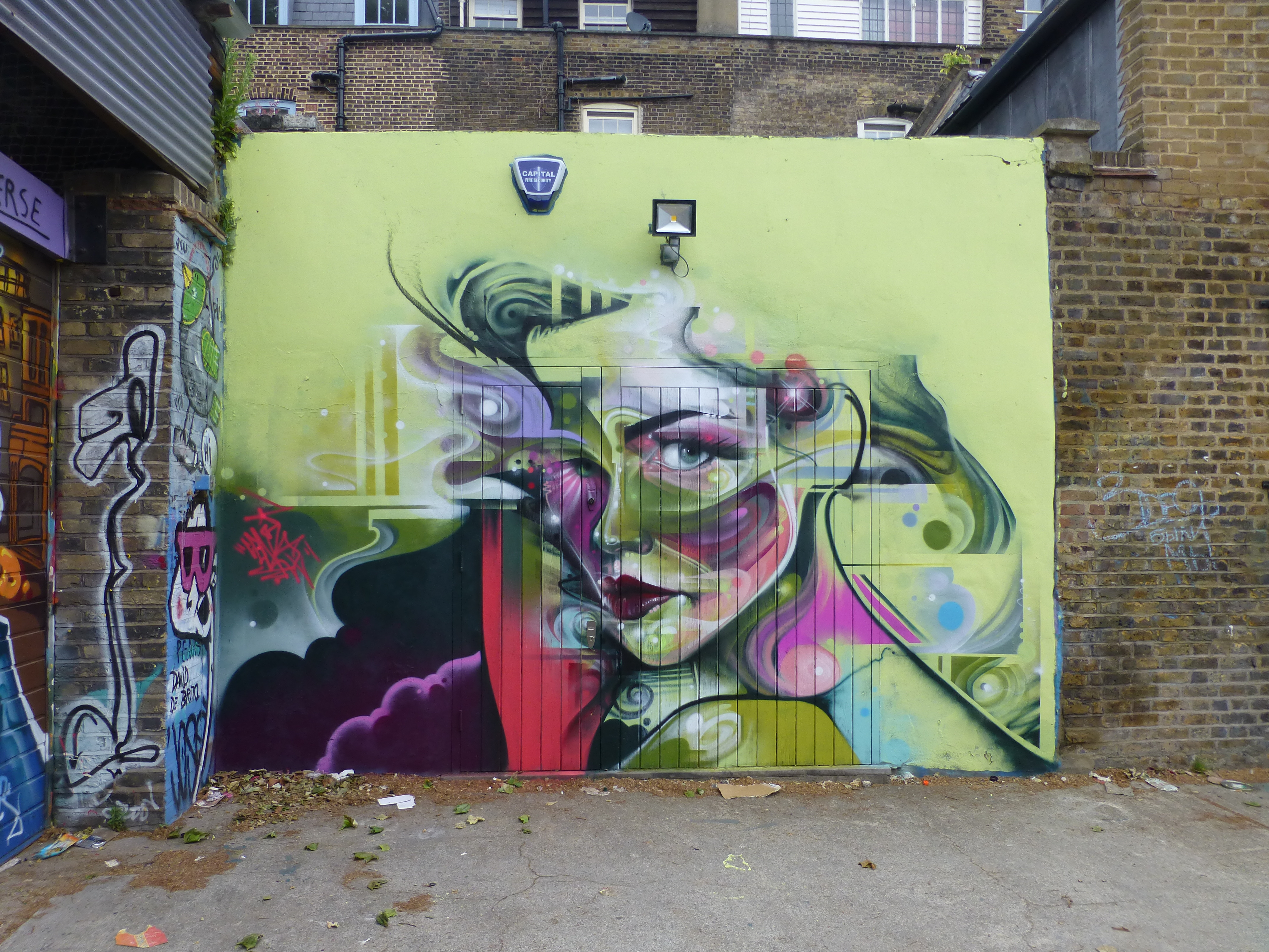 Last week in Star Yard, Brick Lane, prolific Street Artist Mr Cenz was at work on his newest London work, replacing a piece of his in the same spot, just fancying a change. Mr Cenz stuck to the green colour palette and placed up a letter free work featuring pure sci-fi style portrait of a woman. A pleasure to see some fresh work from Mr Cenz in Star Yard, a place that is home to a very high turnover of fresh art and never a disappointment to venture in to.