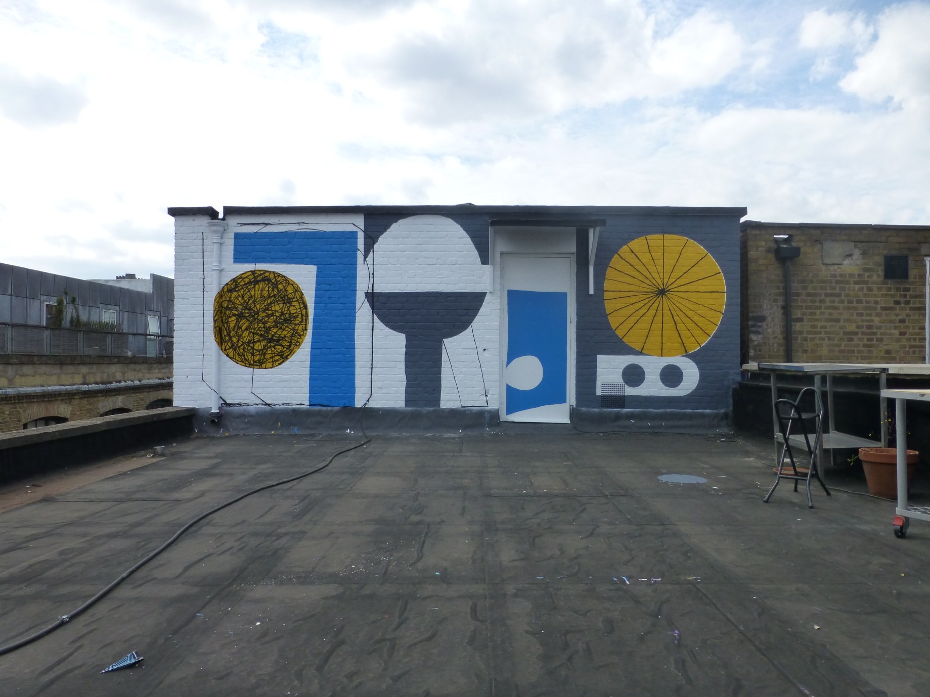 The Jealous Gallery has a new piece on their roof’s feature wall as a part of the ongoing Jealous Rooftop Mural Project. This time the work is from illustrator Stephen Smith, who works under the name Neasden Control Centre and work in illustrations and hand drawn typography. Stephen Smith has always worked in the studio as well as extensively in exhibitions and with installations, so this is one of his first ventures in to painting on walls. Yet again I was fortunate enough to be let up on the roof again by the kind staff of the Jealous Gallery and capture this piece to share with you all.