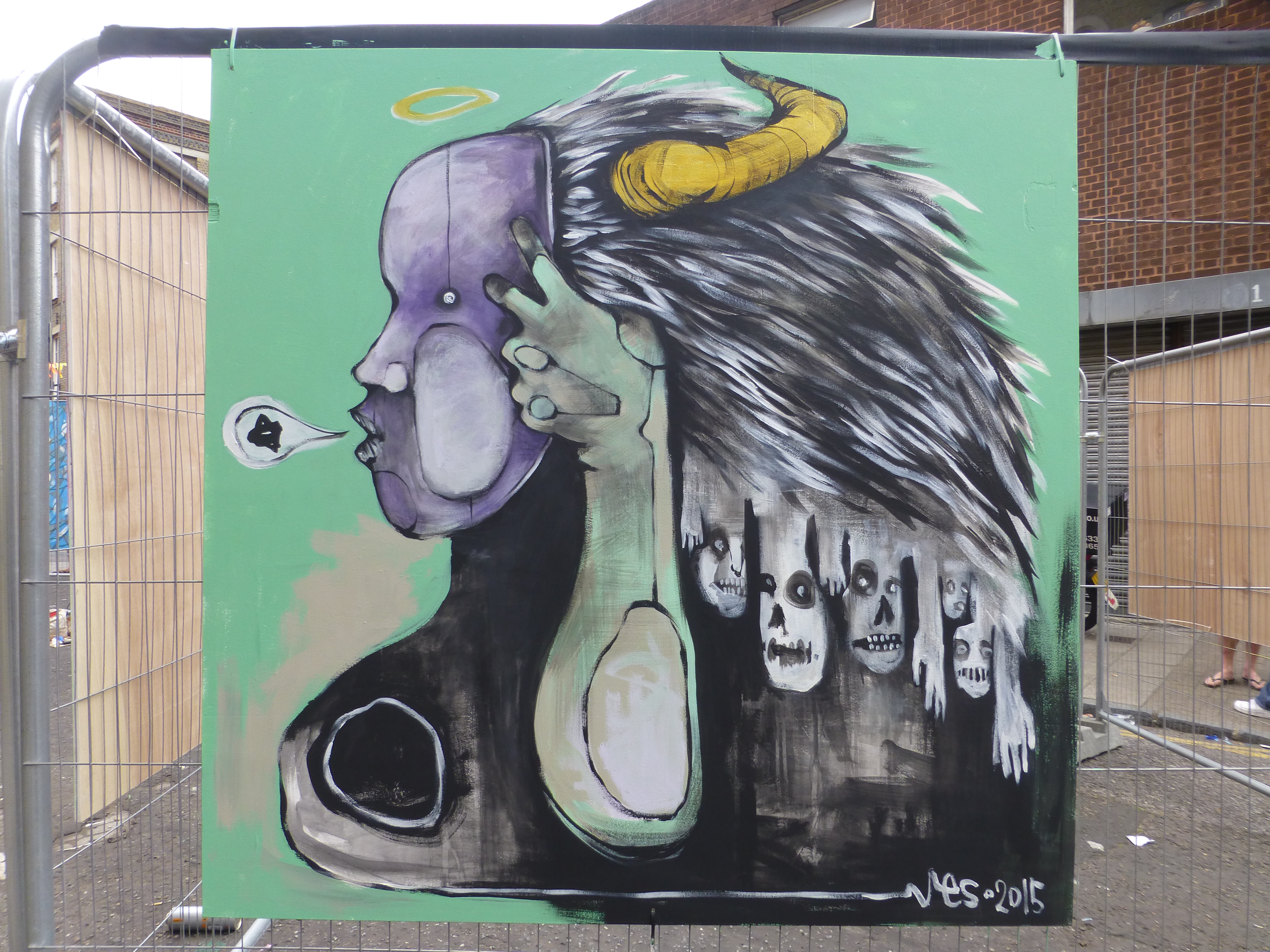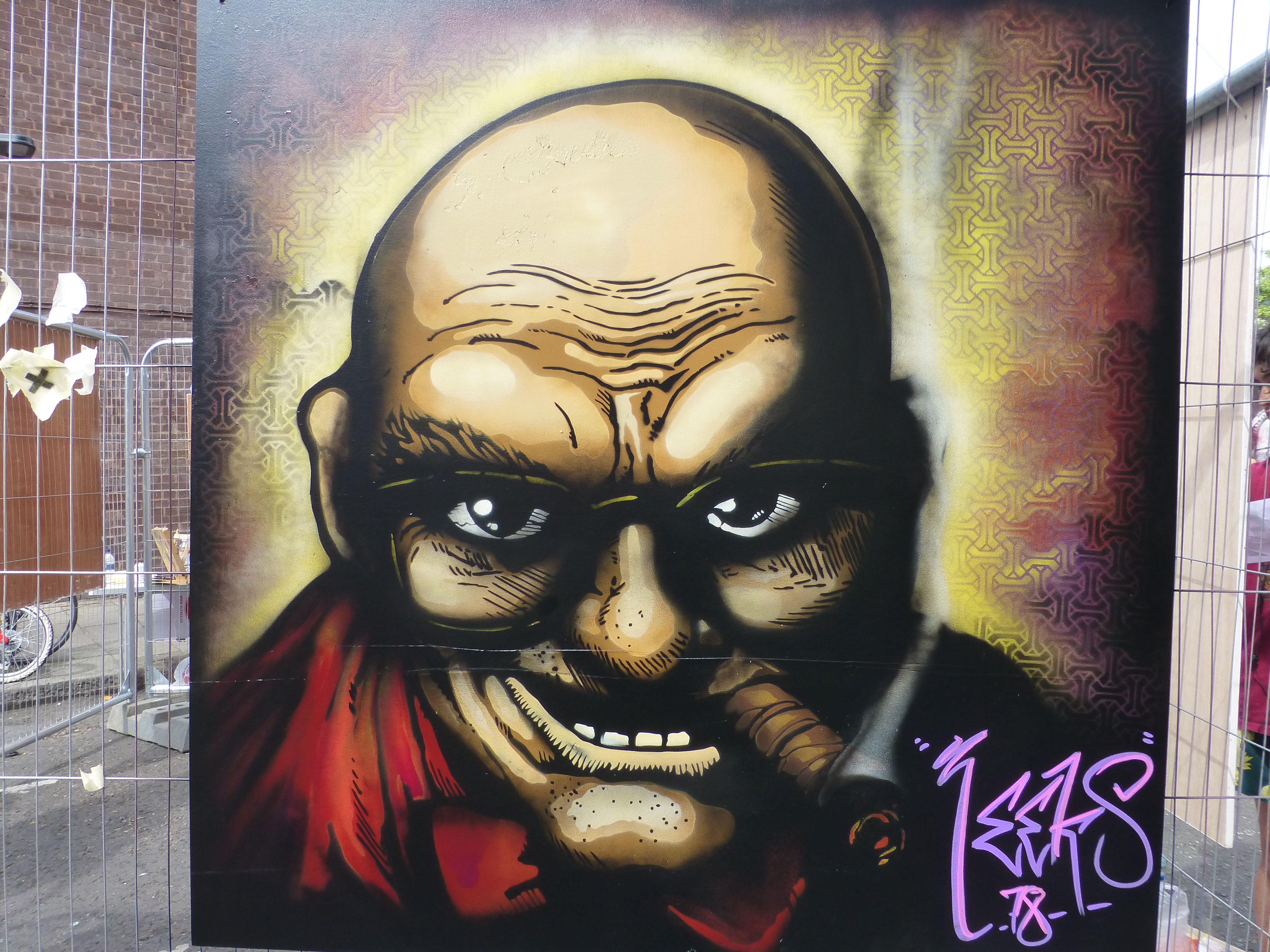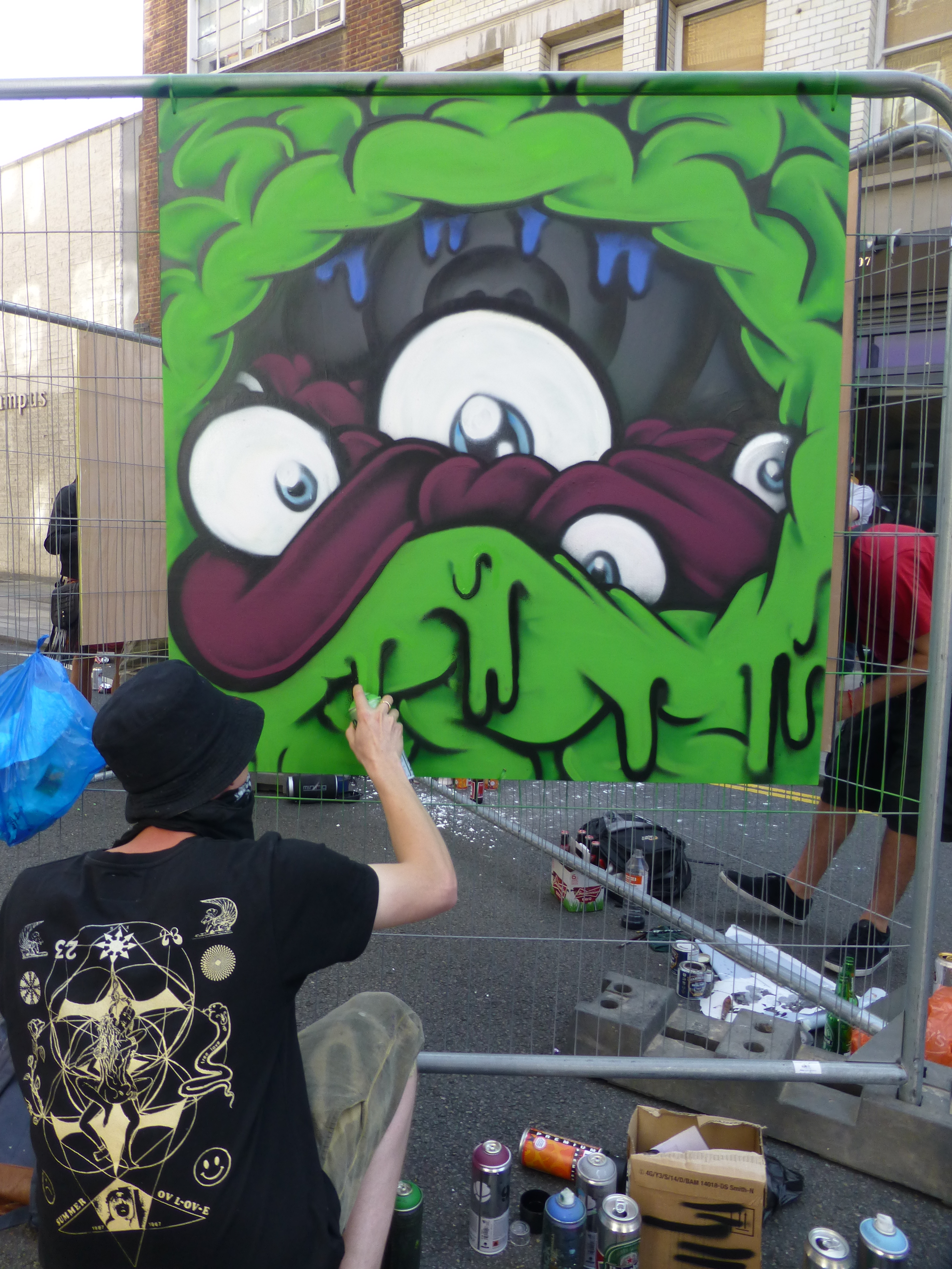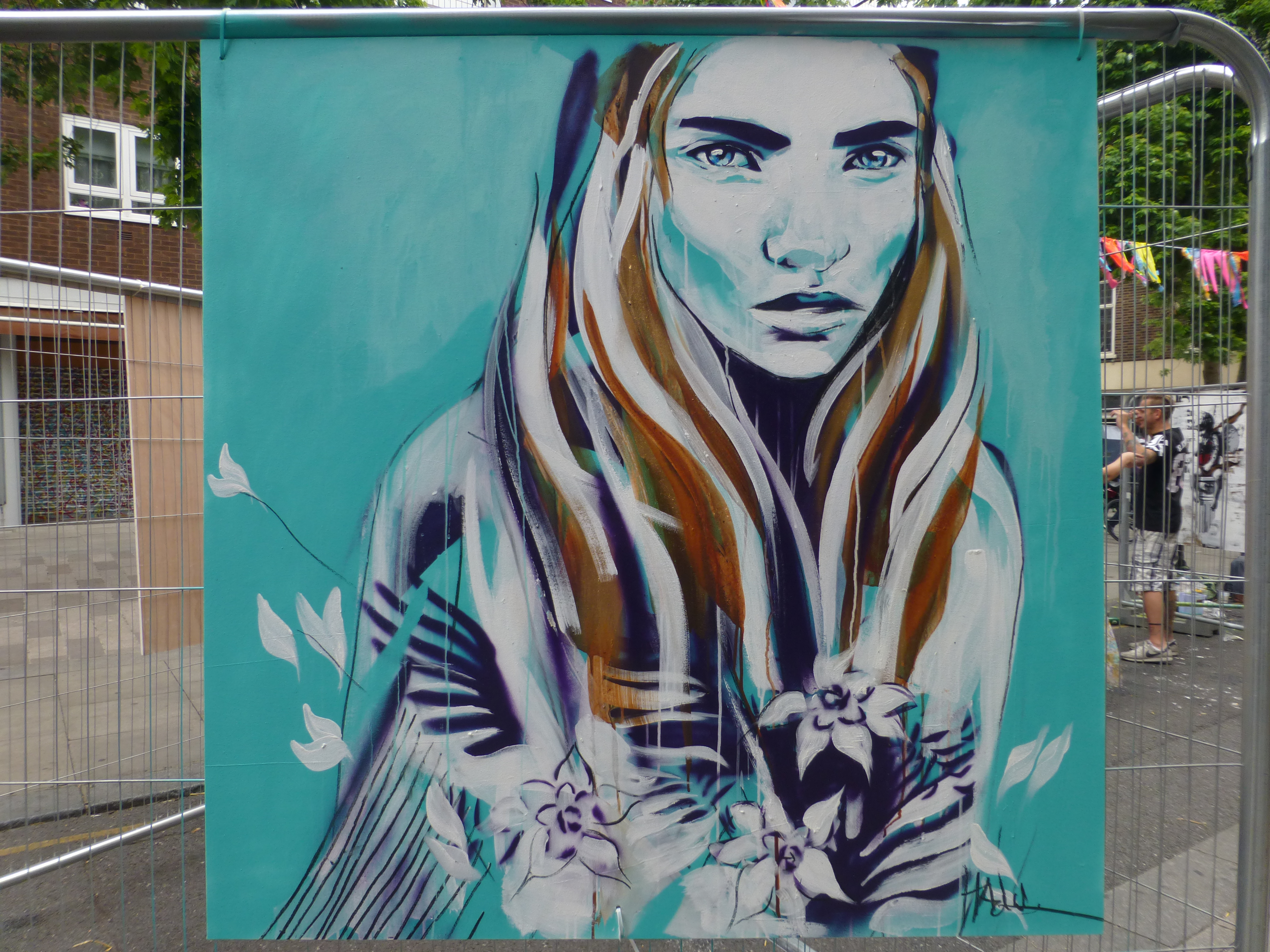 However our main focus was on the Live Painting, organised by Teddy Baden, that took place through the day, and there was a great range of art on offer from Street Artists and more studio based artists alike, affording us here the opportunity to witness works from a range of artists we are already very much familiar with and admire, as well as bringing a whole host of artists previously unknown to us.