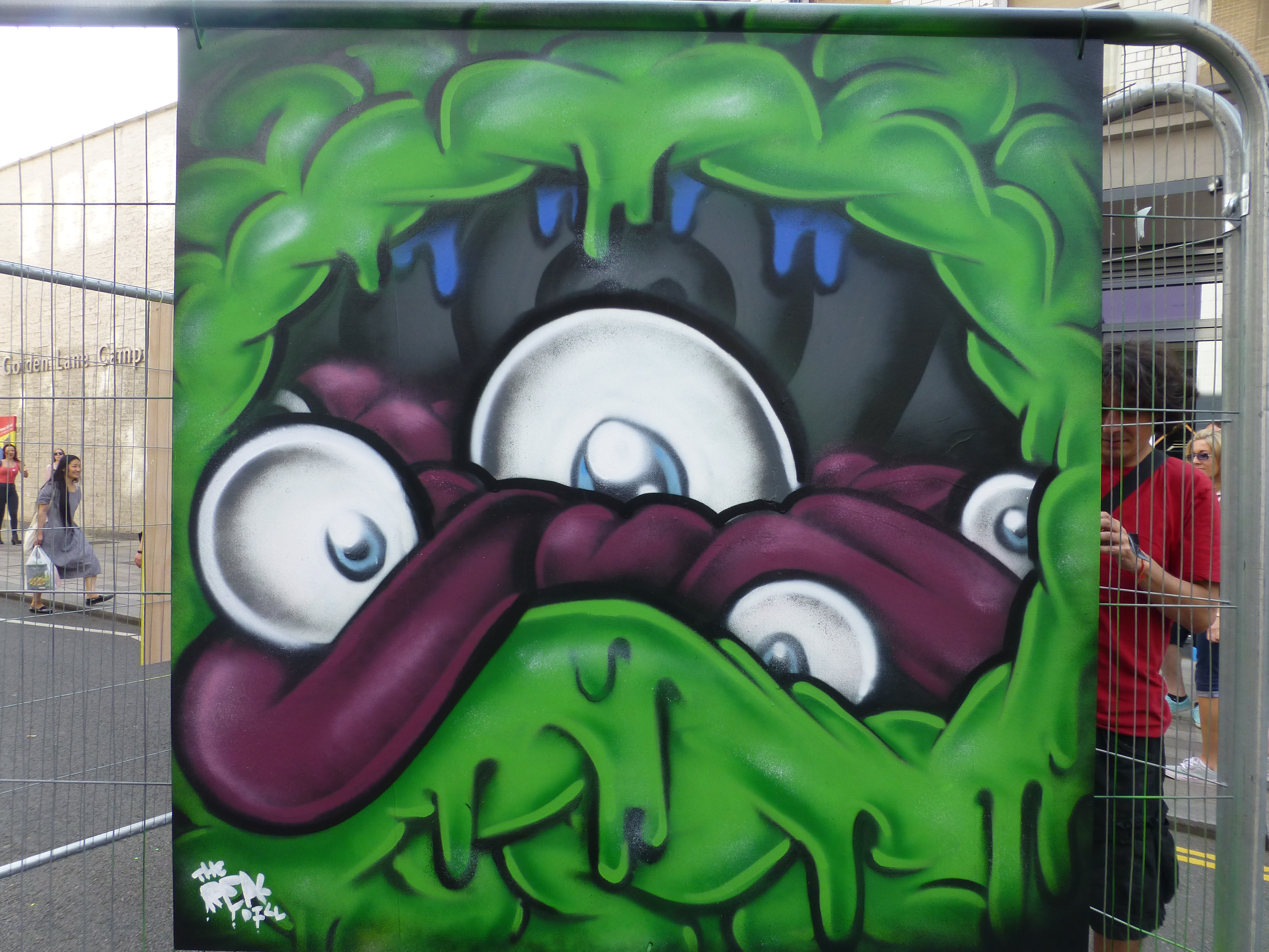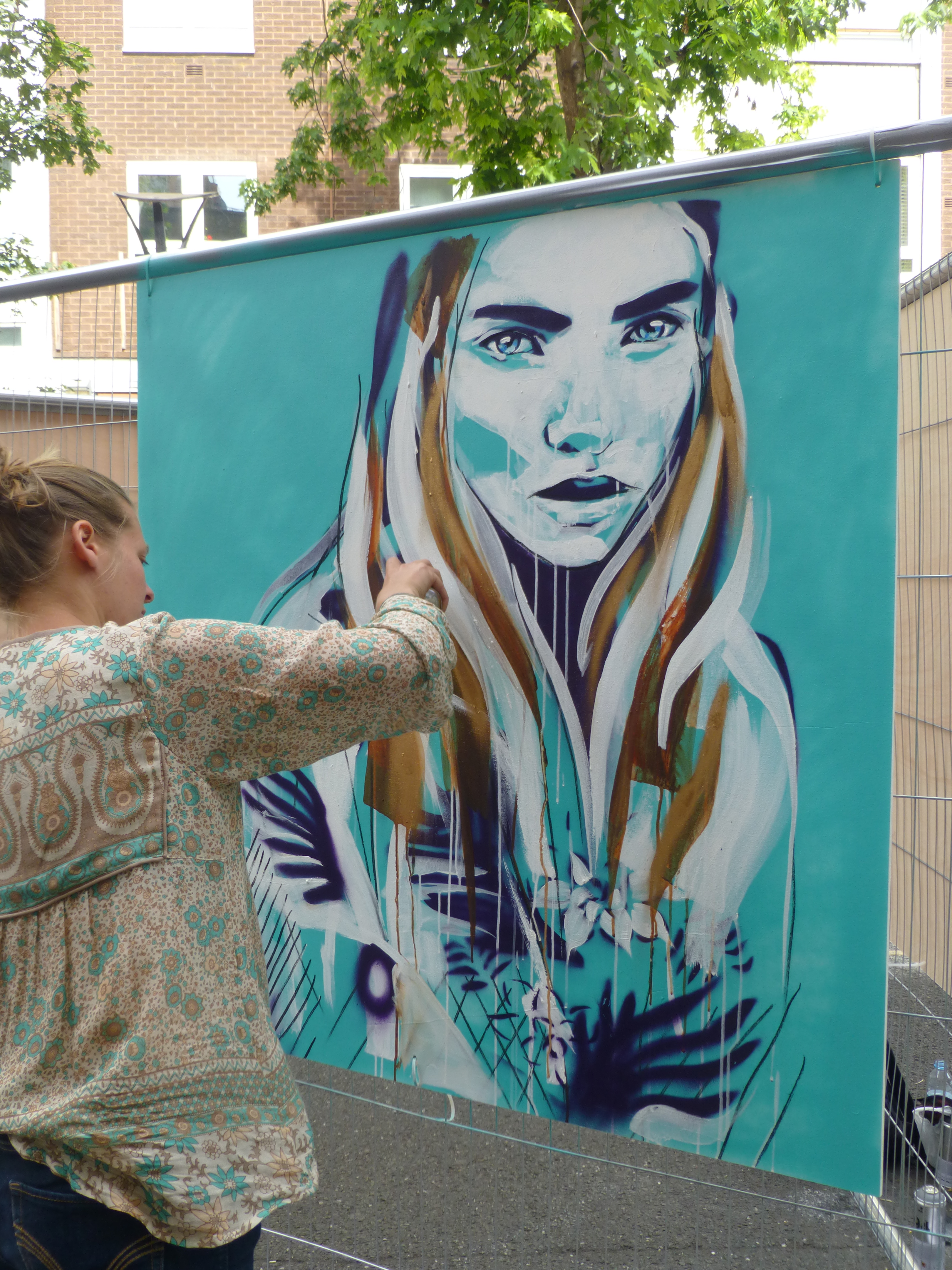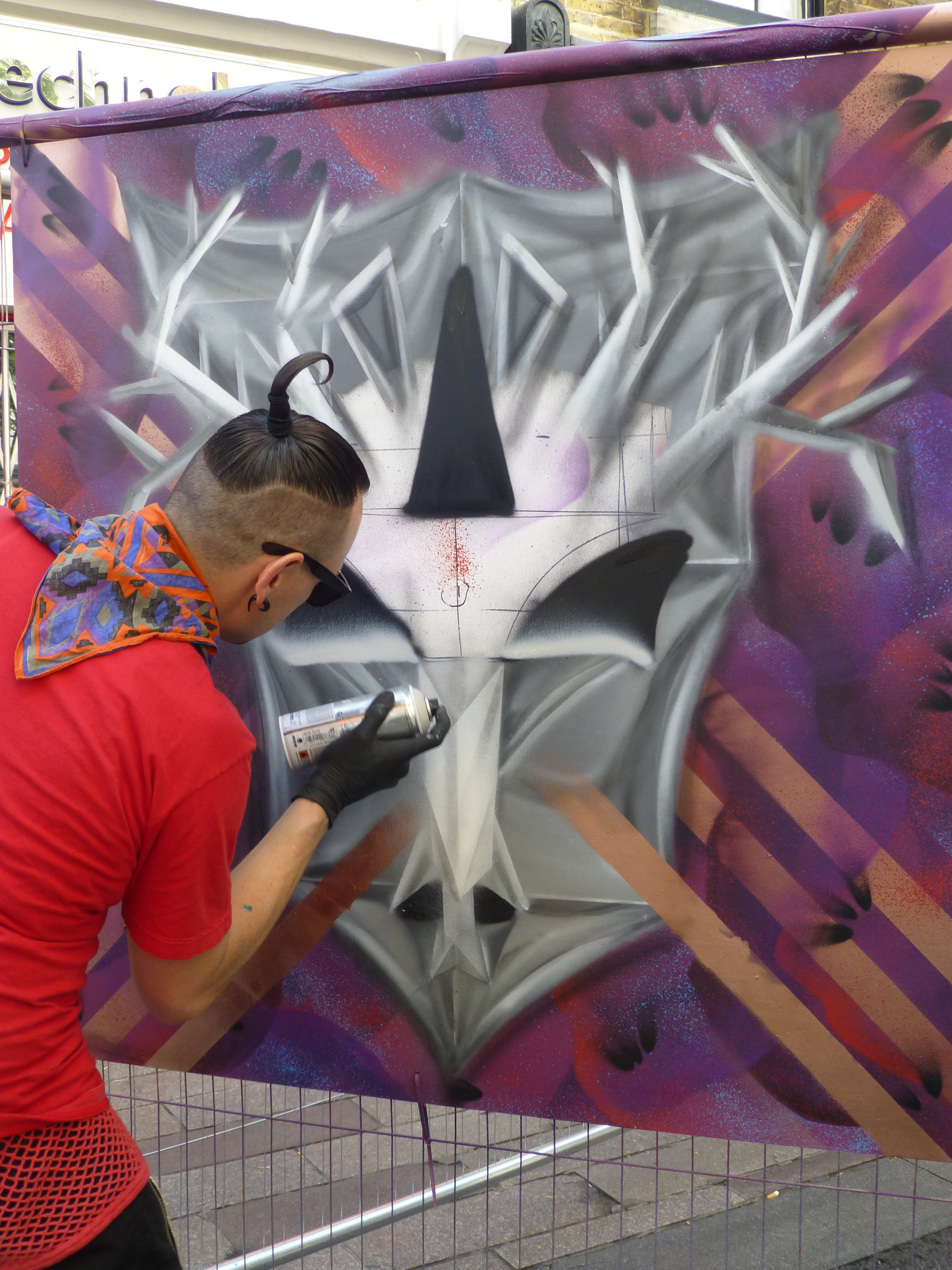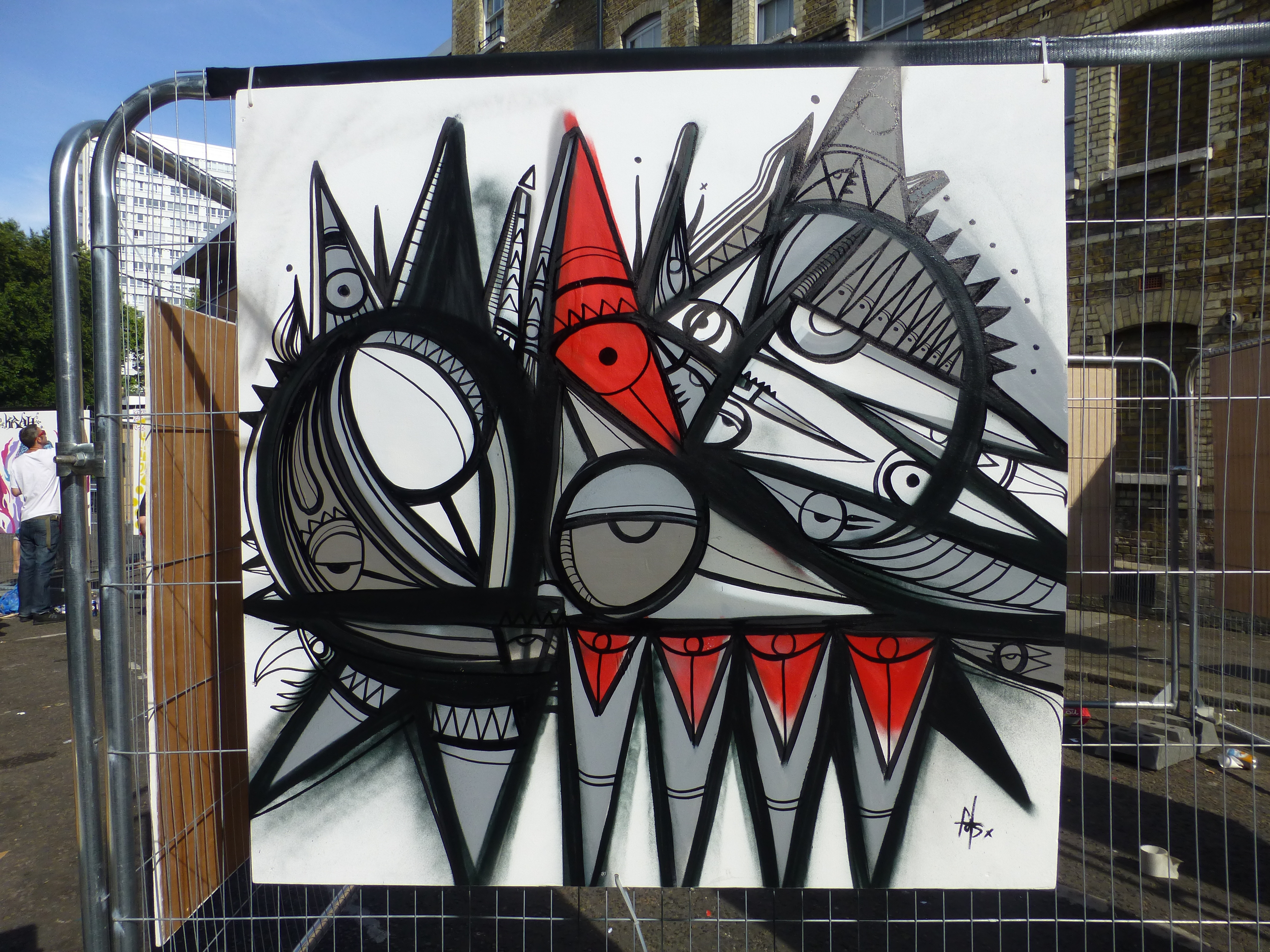 However our main focus was on the Live Painting, organised by Teddy Baden, that took place through the day, and there was a great range of art on offer from Street Artists and more studio based artists alike, affording us here the opportunity to witness works from a range of artists we are already very much familiar with and admire, as well as bringing a whole host of artists previously unknown to us.