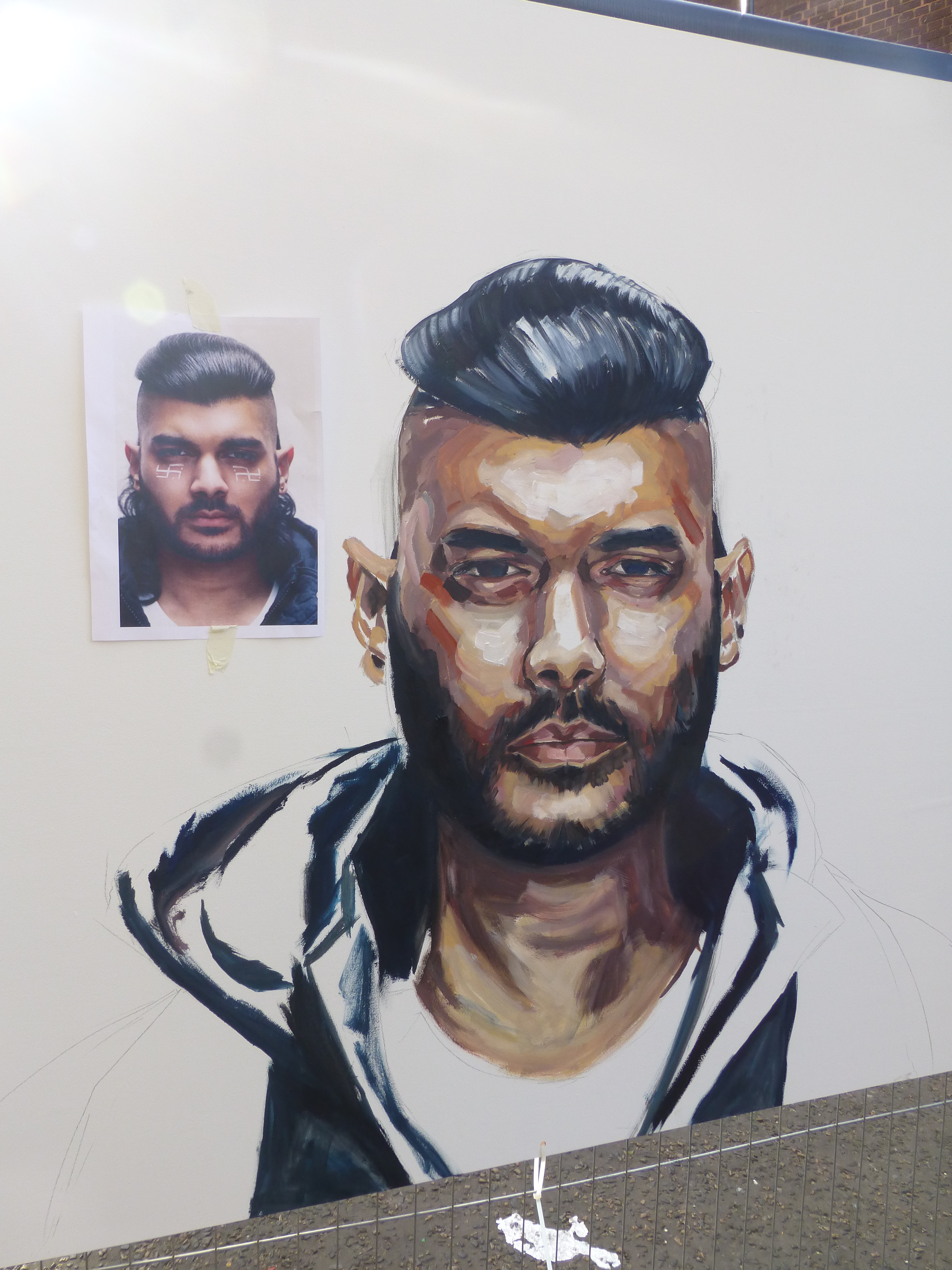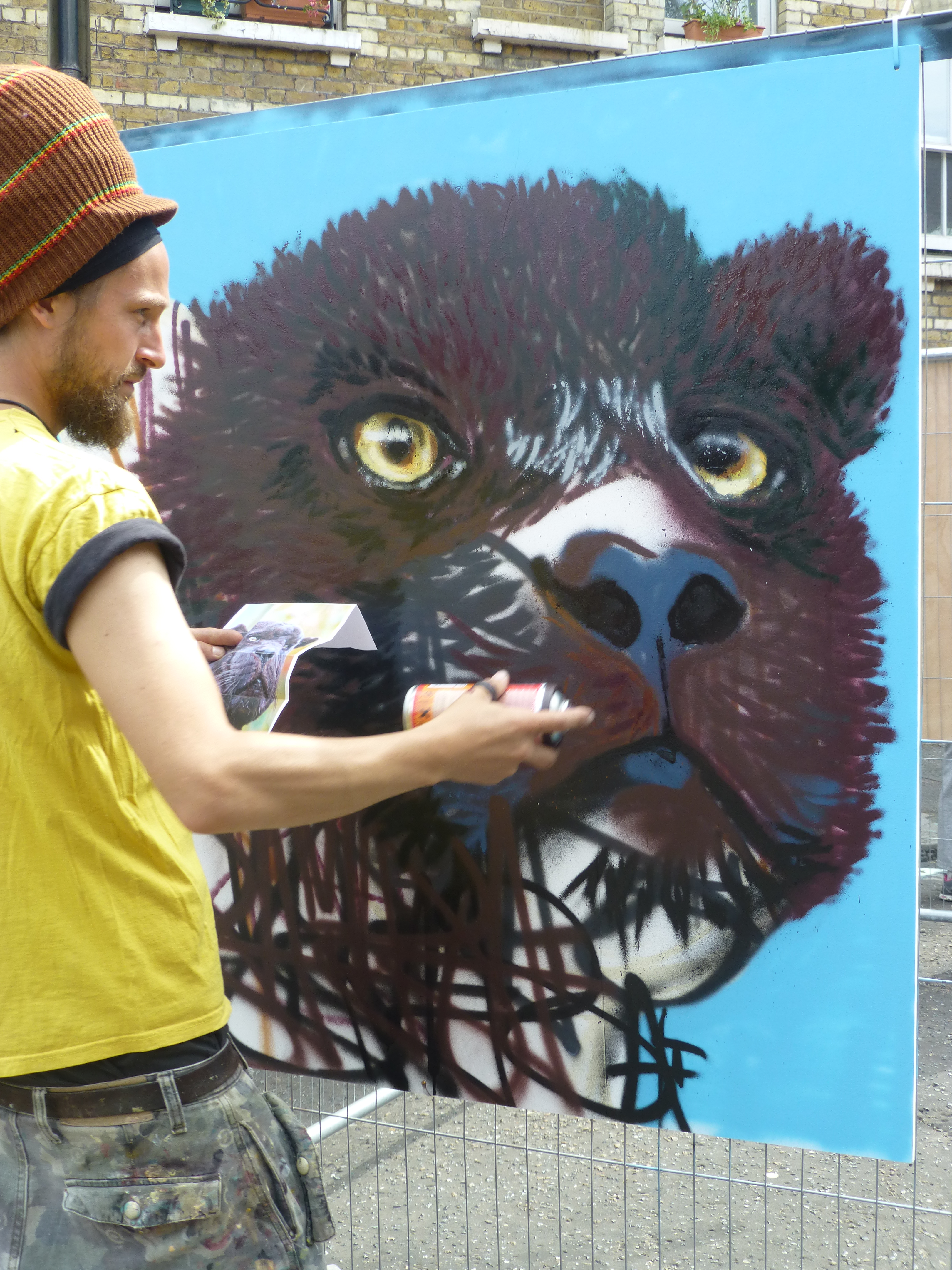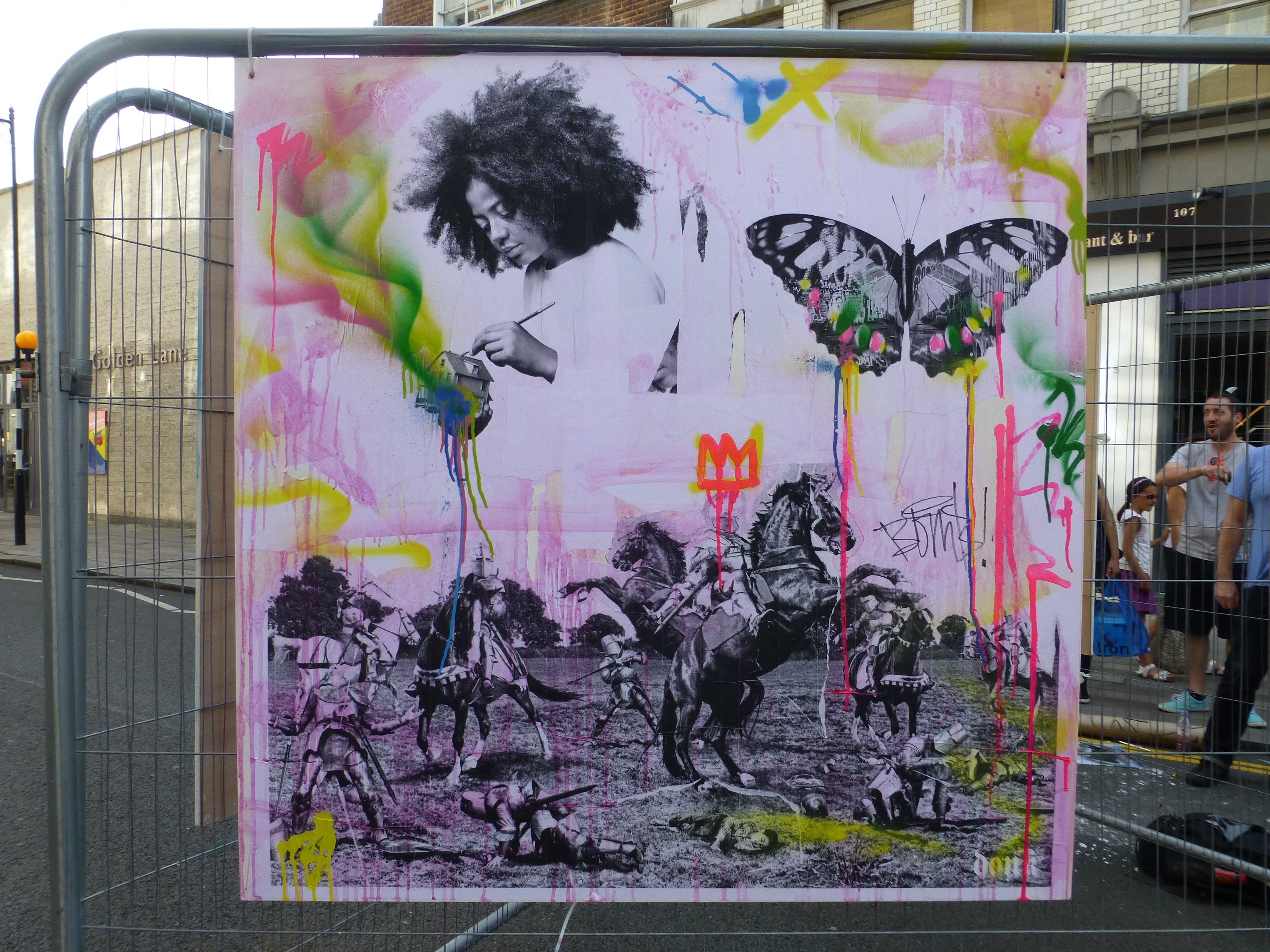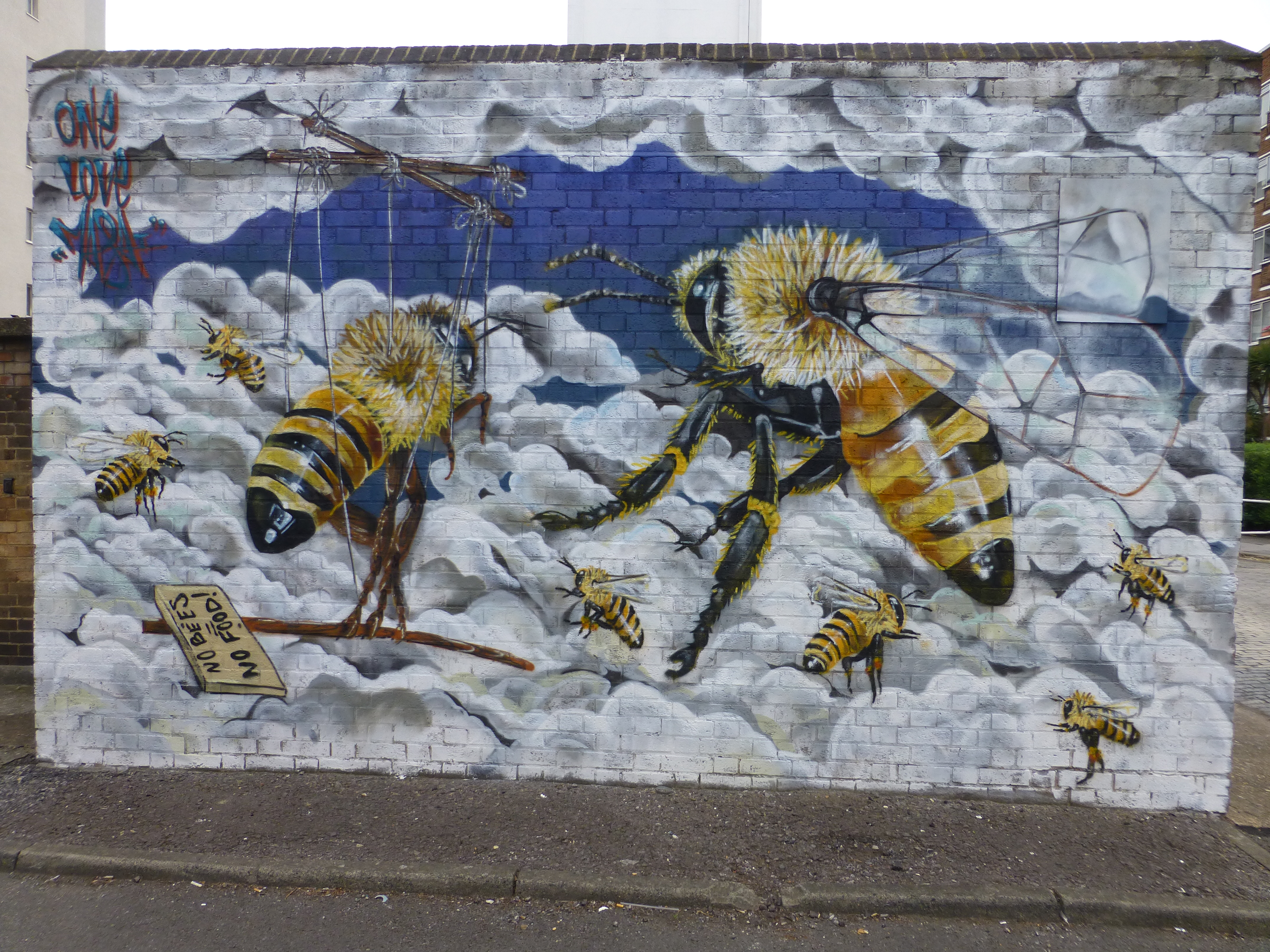 A superb work by Louis Masai placed up a couple of days before the event in the adjacent Peabody Estate, in his ‘Save The Bees’ series.