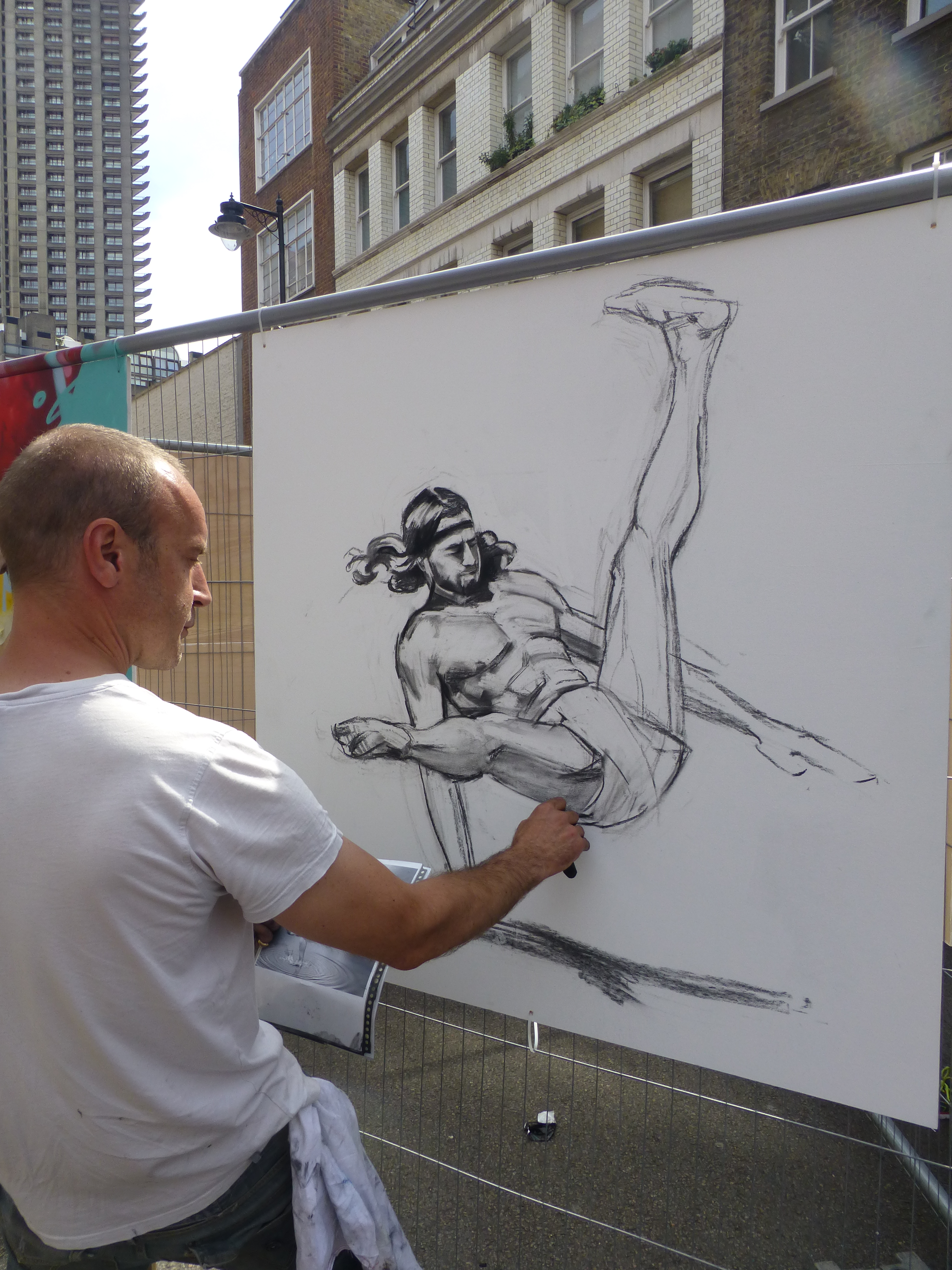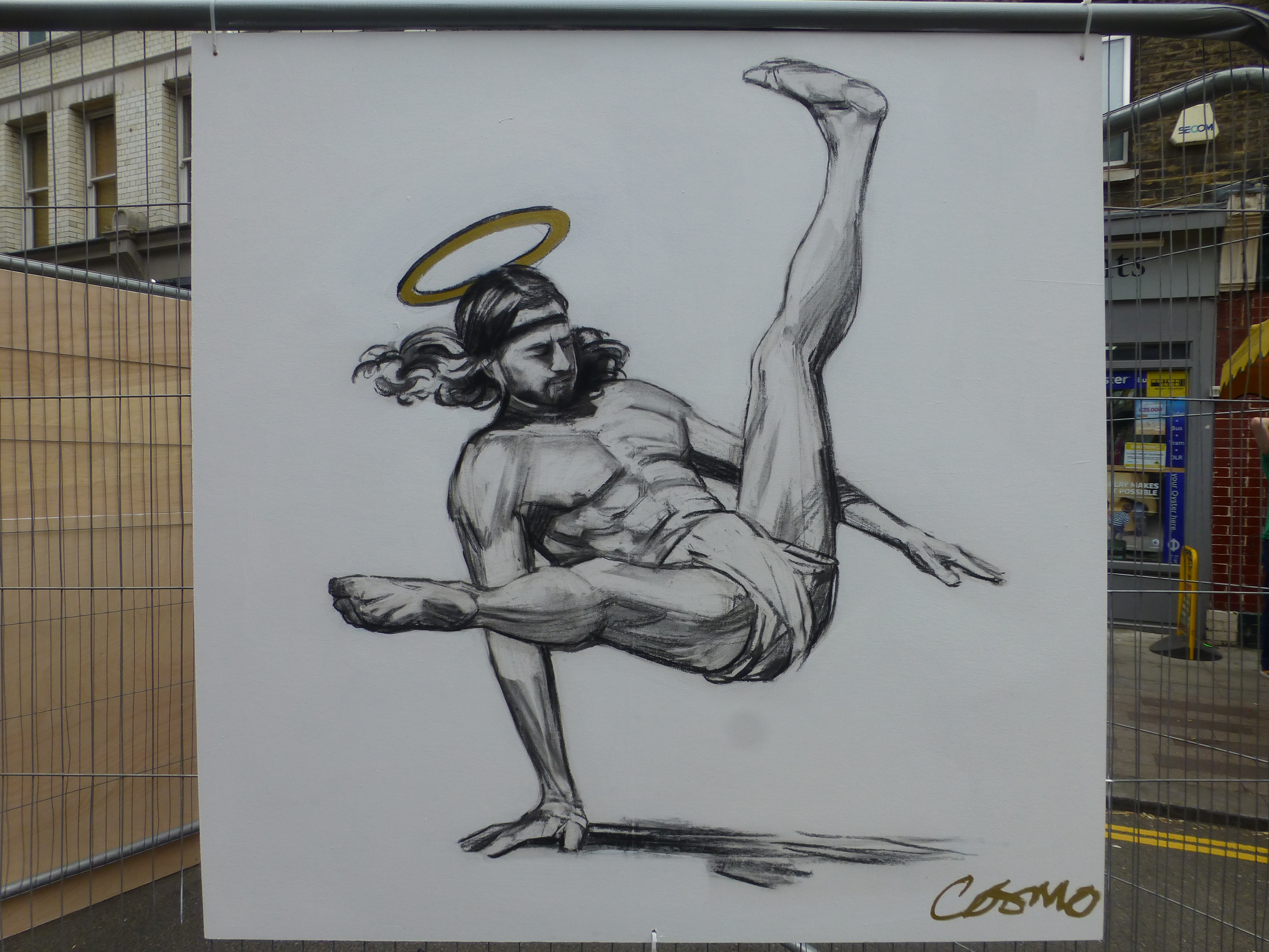 Cosmo Sarson at work on his trademark breakdancing Jesus.