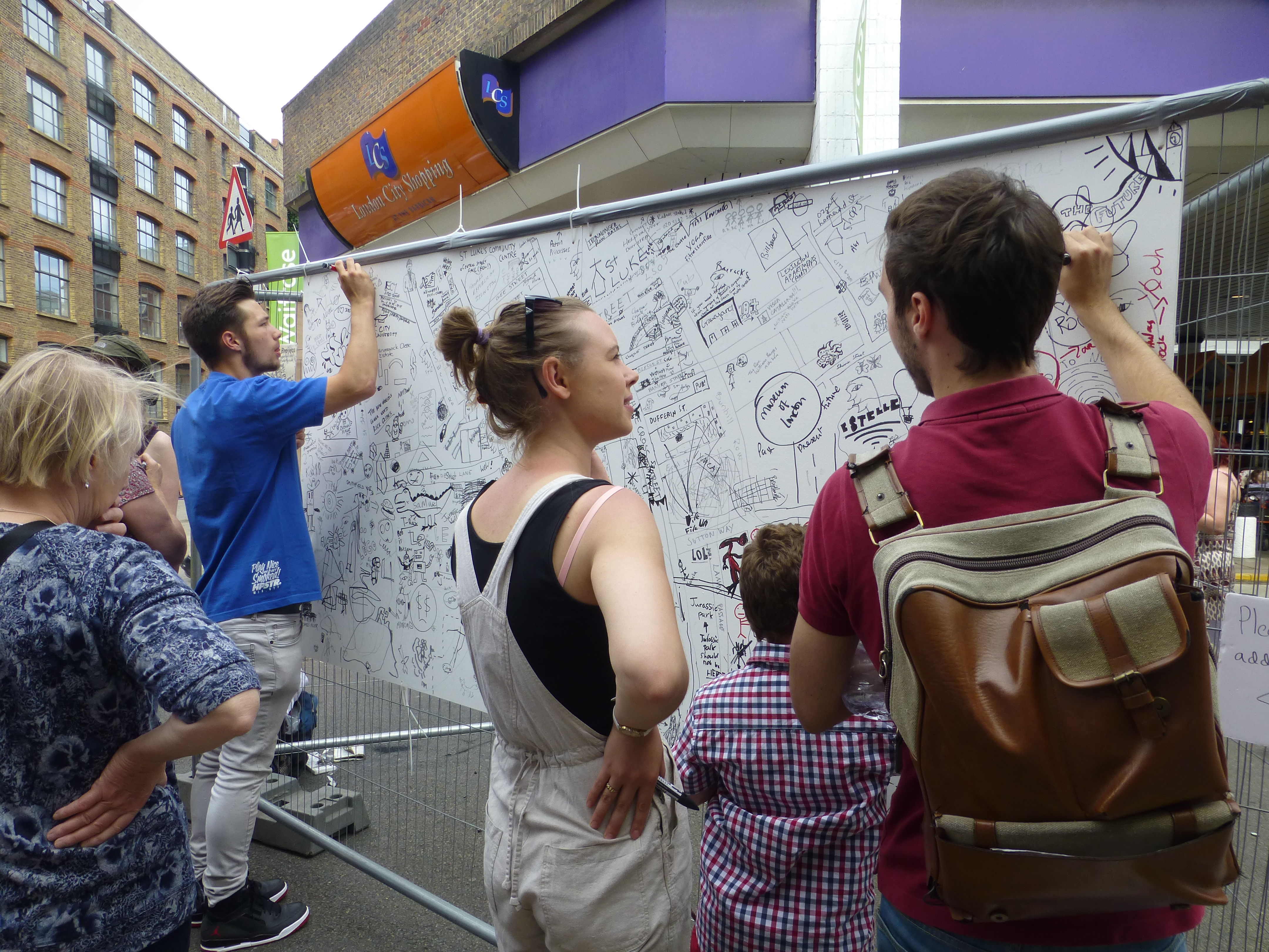 The works from the event will be on display in Whitecross Street for the next six weeks, so if you are in the area and didn’t attend the event yesterday, be sure to head along and check out the finished works while you can.